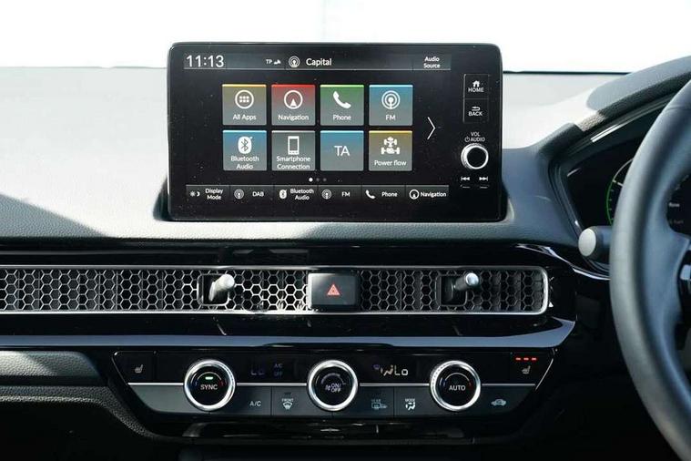 7" Multi information display screen, Adaptive cruise control, Adaptive motion for electric power steering, Adjustable speed limiter, Agile handling assist, BLIS (Blind Spot Information System) with Cross Traffic Monitor, Bluetooth hands free telephone connection, Driving modes, Economy mode, Electric power steering wheel with variable gear ratio steering, Emergency call service, Emergency stop signalling system, Forward collision warning, Front and rear parking sensors, Honda CONNECT with Navigation 9" touchscreen, AM/FM/DAB, Apple Carplay and Android Auto, live traffic info, Honda sensing, Idle stop, Intelligent speed limiter, Lane departure warning system, Lane keep assist, Low speed following, Power meter, Rear parking camera, Road departure mitigation, Smartphone wireless charging plate, Tailgate, Traffic jam assist, Traffic sign recognition, Wireless apple carplay, Vehicle stability assist, 'Shark fin' mobile antenna, 2x USB Front socket (1 data & 1 charge), 8 Speakers, Digital Audio Broadcast (DAB) Tuner, Front tweeters, Steering wheel mounted audio controls, Aspherical driver door mirrors, Auto dimming rear view mirror, Auto headlight adjuster, Auto headlights, Automatic coming/leaving home lighting function, Automatic rain sensing wipers, Black window frames, Body colour door handles, Electric adjustable heated door mirrors, Electric front and rear windows, Electrically folding door mirrors, Headlight extension black, High beam assist, High level LED brake light, LED daytime running lights, LED front fog lights, LED front turn type, LED Headlights, LED rear lights, Low gloss black window garnish, Material finish grille, Pop up hood, Privacy glass, Rear side wing doors, Rear wiper, Single hidden exhaust pipe, Variable front intermittent wipers, 3 seat bench in 2nd row, 60/40 split folding rear seat, Cargo accessory power socket, Cargo net hooks, Driver and front passenger seat armrests, Driver's electric lumbar adjustment, Driver's seat height adjustment, Dual climate control air conditioning system, Fabric/synthetic leather upholstery, Front accessory power socket, Front map lights, Front/rear courtesy lights, Glovebox light, Heated front seats, Hybrid emblem, Isofix points/i size, Leather steering wheel, Meter Illumination white, Passenger seat back pocket, Platinum chrome interior door handles, Rear air vents, Rear head restraints, Rear reading lights, Rear seat centre armrest, Single front passenger seat, Stainless steel sports pedals, Sunvisors with illuminated vanity mirrors, Tilt/telescopic adjustable steering wheel, Tonneau cover, Trunk light, USB Rear number 2 x charge, White ambient roof light, 3x3 point rear seatbelts, ABS+EBD+Brake assist, Airbags - driver and front passenger, Airbags - Knee (AS), Airbags - Knee (DR), Anti-whiplash front headrests, Brake hold function, Collision mitigation braking system, Collision mitigation throttle control, Deflation detection system, Driver SRS airbag (single stage inflation), Electronic parking brake with auto hold, Front and rear curtain airbags, Front and rear seat belts with emergency locking retractor (ELR), Front centre airbag, Front side airbags, Hill start assist, Low speed brake system, Manual child lock in rear doors, Passenger airbag deactivate switch, Rear airbags, Regenerative braking/deceleration paddle control, Immobiliser, Mirrors and windows key fob, Remote central locking with 2 jack knife keys, Security alarm, Selectable door unlock, Smart entry + Smart start, Superlocking, Tilt sensors, Ultrasonic security sensor, Tyre repair kit,