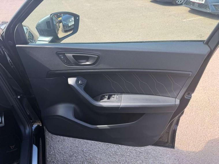 CUPRA drive profile -Normal, Sport, CUPRA and Individual modes, steering/throttle response, gearshift mode, sound actuator and dynamic chassis control, Digital cockpit, E-call, Electric tailgate with virtual pedal, Front and rear view camera, Outside temperature gauge, Progressive power assisted steering, Self parking functionality (includes front and rear parking sensors), Top view camera, Trip computer, Wireless full link smartphone integration, Wireless phone charger, CUPRA sport suspension, Steering wheel mounted audio/phone controls, Body colour bumpers with dark aluminium diffusor, Body coloured wheel arch surrounds, Dark tinted rear windows, Daytime running lights, Door mirrors with welcome CUPRA light silhouette, Dynamic headlight range control with self adjusting whilst driving, Electric adjustable/heated/folding door mirrors, Front and rear electric windows, Front grille frame in chrome, Full LED headlamps with lens and LED front fog lamps with cornering function, Gloss black door mirrors, Gloss black roof rails, Gloss black side mouldings, Gloss black side window trim, Illuminated aluminium front door sill, LED rear tail lights with dynamic indicators, Rear fog lights, Rear side wing doors, Rear spoiler, Rear wash/wipe, Specific CUPRA design front bumper, Third brake light, Visible twin black exhaust pipes in both sides with dark aluminium diffuser, 12V socket in front, 3 seat bench in 2nd row, 60/40 split folding rear seat, Aluminium pedals, Black roof lining, Cupra steering wheel emblem, Dual zone climate control, Electric driver seat with memory function, Front and rear head restraints, Front centre armrest, Front seat back storage pockets, Heated front seats, Heated steering wheel, Height adjustable driver and passenger seat with lumbar adjustment, ISOFIX points in outer rear seats with top tether anchorage points, Leather sport bucket seats, Leather steering wheel and gear knob, Multicoloured ambient lighting with LED interior illumination, Pedal cluster, Rear armrest and easy back seat release mechanism from boot, Single front passenger seat, Sports steering wheel, Steering wheel mounted gearshift paddles, Storage compartment in roof console for sunglass, Storage compartment under driver's seat, Convenience pack - Ateca, Interior lighting pack - Ateca, Navigation system plus pack with DAB - Ateca, Safe and driving pack with High beam control - Ateca, 3x3 point rear seatbelts, ABS, Traction control system (TCS), Electronic stability control (ESC) and Electronic differential lock system (XDS), Airbags - Driver and front passenger airbag with deactivation, front side, two curtain and driver's knee airbags, Black brake callipers with CUPRA logo, Electric parking brake with auto hold function, Front and rear seatbelt reminder, Front assist with autonomous emergency braking, Hill hold control, Manual rear child locks, Single tone horn, Tiredness recognition system, Tyre pressure monitoring system, Alarm, Keyless entry, Locking wheel bolts,