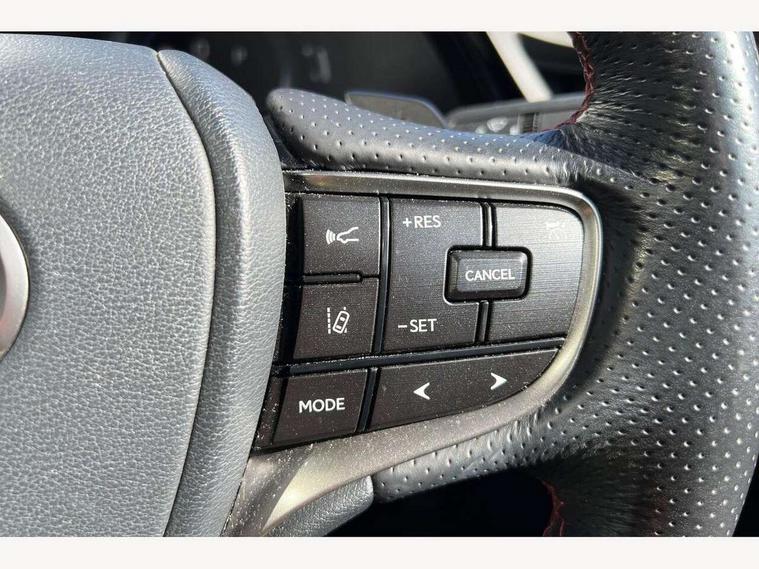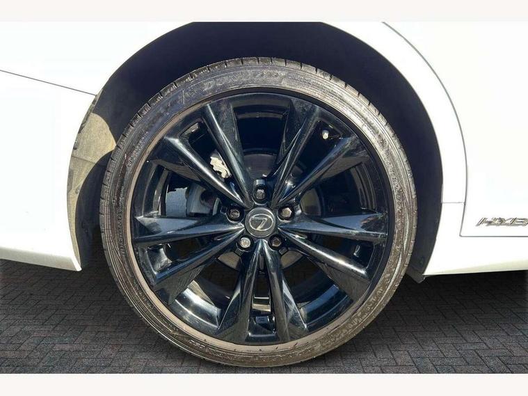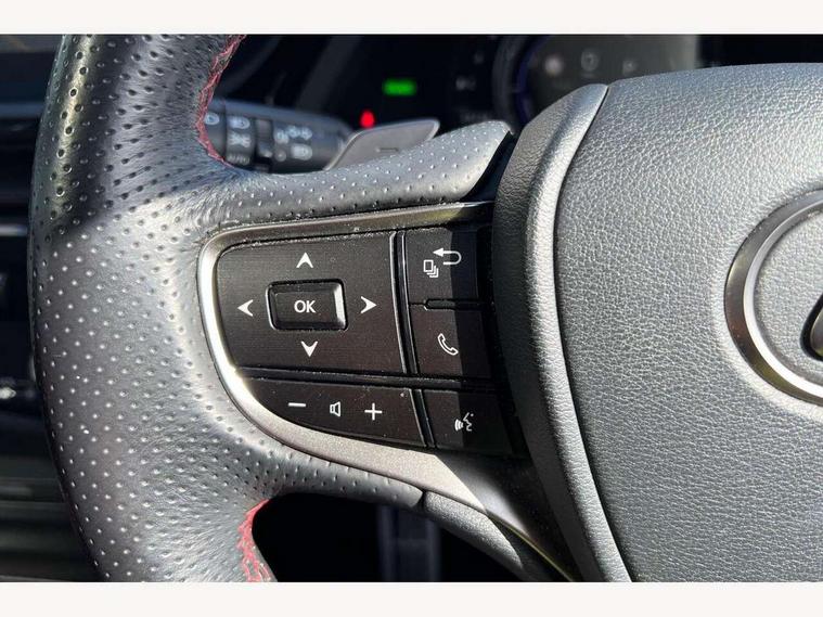5 Driving modes EV/Normal/Eco/Sport/Sport+, 8" TFT information screen with sliding speedometer, Analogue clock with LED illumination, Apple car play/Android Auto, Auto glide control Lexus first - AGC, Blind spot monitoring (BSM) with Rear cross traffic alert and auto brake (RCTAB), Drive mode select controller, Dynamic radar cruise control, E-call, EPS with speed sensitive steering, Intelligent parking sensors, Lane change flasher function, Lane tracking assist - LTA, Lexus link connected services, Lexus navigation with 8" multi-information screen, Pre-collision system (PCS), Push button start, Reversing camera, Road sign assist - RSA, Vehicle Stability Control - VSC and drive mode controls on Instrument brinicle, F SPORT - Adaptive variable suspension - AVS, Lateral damping system, Performance dampers, VDIM, 10 speaker pioneer audio with single CD, DAB, aux, shark fin antenna + Bluetooth system, Multimedia system with remote touch pad, 2 eye LED headlights with auto high beam, Acoustic front windscreen, Aluminium front scuff plates with Lexus logo, Aluminium rear scuff plates, Auto dimming interior rear view mirror, Auto fold, reverse tilt, auto dimming with memory wide angle door mirrors, Auto headlight levelling, Auto headlights, Cornering light, F Sport badging, F SPORT exterior styling, F Sport front and rear bumper, F SPORT logo on the front wing, Follow me home headlights, Front and rear one-touch automatic power windows equipped with a jam protection, Front grille, Front windscreen de-icer, Green UV glass with water repellent coating on front side windows, Headlight cleaners, LED daytime running lights, LED rear lights, Pop up hood, Privacy glass, Rain sensing windscreen wipers, Rear spoiler, Sunroof, Water repellent glass on front door windows, 12V socket in front and rear, 2 cup holders in the front and rear centre console, 2 USB ports for charging in rear of centre console, 2 USB ports in front centre console, 2 x fixed shopping bag hooks in boot, 2 zone climate control with climate concierge and nanoe ion generator, 3 spoke leather steering wheel with power adjust, 4 x tie down hooks in the boot, 8 way Electrically adjustable front seats including headrest with heater, Active sound control, Aluminium sport accelerator pedal, brake and foot rest, Card holder installed in driver and passengers sun visors, Driver seat memory function, Easy access system with seat slide + tilt + telescopic, F SPORT seats, F Sport steering wheel with F Sport perforated leather, Fixed rear seat with trunk through, Front and rear door pockets, Front and rear head restraints, Front centre armrest with storage, Heated, power adjust driver and passengers seats with 2 way lumbar support, Luggage storage tray under deck board to right side, Map pockets on front seats, Paddle shift controls, Perforated leather shift knob, Rear armrest with 2 cup holders and storage, Self charging hybrid, Tahara leather upholstery, Textile carpet mats, Through load facility, 10 airbags - front, side, knee, front and rear curtain airbag, 2 x Isofix child rear seat restraints, 3 point front seat belts, Active Traction Control (TRC), Adjustable seat belt anchor points, Anti-lock braking system (ABS), Electronic parking brake, ELR (Emergency locking retractor), Front and rear outer seat belt pre-tensioners, Front passenger's airbag cut off device, HAC (Hill start assist control) with brake hold, Seat belt force limiter, Sway warning system, Three 3 point rear seatbelts, Tyre pressure monitoring system, Alarm, Immobiliser, Locking wheel nuts, Smart entry + Smart start, Speed sensitive auto door locking, Two motion door lock with double lock, VIN Window etching, Alloy instrument panel and door inserts, Handori aluminium inlay, 18" Alloy wheels with F SPORT Design, Tyre repair kit,