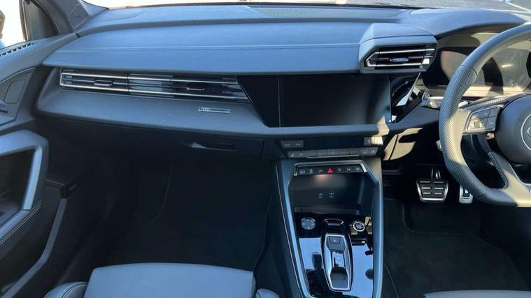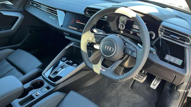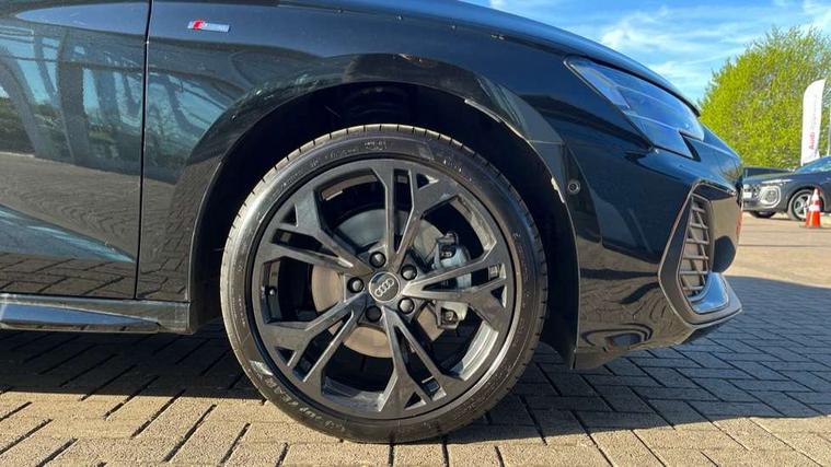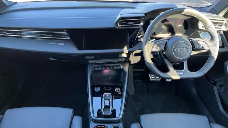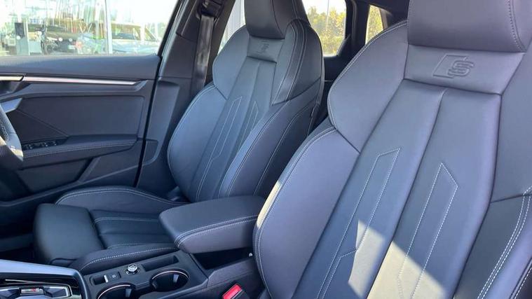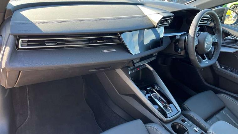 Adaptive cruise control (ACC), Adjustable speed limiter, Audi drive select (Auto, Comfort, Dynamic, Efficiency and Individual), Audi virtual cockpit plus - 12.3" full HD resolution dynamic digital instrument cluster, Automatic start/stop system with recuperation, Bluetooth interface, Camera based traffic sign recognition, Collision avoidance assistant, Driver attention and fatigue detection, e-Call (emergency call), Electromechanical power speed sensitive steering, Emergency assist, Intersection assist, Lane departure warning system, MMI Navigation Plus with high resolution 10.1" colour touch screen display, Park Assist with parking system Plus, Reversing camera, Service indicator, Smartphone interface with app store includes wireless Apple carplay, Android auto and Amazon alexa integration, Trip computer, Voice control system with natural language interaction, CCS socket for DC charging, Charging cable for public charging, mode 3 (type 2), 32 A, Standard suspension, Type 2 socket for AC charging, Audi Phonebox light with wireless charging, Audi sound system - 10 loudspeakers including centre loudspeaker and subwoofer, DAB Digital radio, USB ports with charging function in the rear, Acoustic glass windscreen, All weather light, Anthracite grey Audi rings (front and rear), Audi beam uses LEDs to project the Audi logo onto the ground as you exit your A3, Auto dimming frameless rear view mirror, Automatic dynamic range control, Black accents front and rear bumpers, Black accents in the area of the Audi single frame grille, Black accents window trims strips, Dipped beam, main beam, position light and turning light, Electrically adjustable/heated/folding/auto dimming door mirrors with integrated LED indications + kerb view function for passenger side, Exterior model badging, Front and rear side air inlets in grained matt black with dark liquid chrome frame, Front electric windows, Front radiator grill in high gloss dark chrome, Heat insulating glass windscreen, Illuminated door sills with aluminium inserts at the front with S logo, Intersection light, Invisible tailpipe, LED 3rd brake light, LED brake lights, LED daytime running x3, LED headlights with LED rear lights and dynamic rear indicators, LED rear number plate lights, LED reverse light, LED tail lights, Light and rain sensors, Manoeuvring light, Motorway light, Privacy glass - dark tinted rear window, rear door and side windows, Rear diffuser and grill in grained matt black with inlay in dark liquid chrome, Rear electric windows, Rear side wing doors, Rear wiper, S roof spoiler, Side sill trim in dark liquid chrome, Static cornering light, 12V socket and storage compartment in front centre console, 3 seat bench in 2nd row, 3 spoke flat bottomed leather multifunction sport steering wheel with gear shift paddles, 3-zone deluxe automatic air conditioning, 4 way electrically adjustable lumbar support for driver and front passenger, 40/20/40 split folding rear seat bench, Black cloth headlining, Black front and rear floor mats, Convenience auxiliary air conditioning, Front and rear centre armrest in artificial leather with contrasting stitching on armrests and instrument panel, Front and rear headrests, Heated front seats, Height and reach adjustable steering wheel, i-Size child seat mounting on the front passenger side and outer rear seats, i-Size and top tether on the outer rear seats, Manual boot compartment lid, Manually adjustable front seats, Rear centre armrest with cupholder, S badging on the steering wheel, Seat side bolsters, Single front passenger seat, Stainless steel pedals and front footrest in black, Twin leather upholstery with front sports seats S embossed logo, Aluminium interior elements pack - A3, 3x3 point rear seat belts, Acoustic vehicle alerting system, Driver and front passenger airbag with passenger airbag deactivation, Electronic Stabilisation Control (ESC) including ABS, ASR and EDL, First aid kit with warning triangle and 2 safety vests, Front side airbags with head airbags and interaction airbag, Hill hold assist, Pre-sense front with pedestrian and cyclist detection, Seatbelt monitoring, Tyre pressure loss indicator, Anti theft alarm, Anti-theft wheel bolts, Electronically operated child locks, Immobiliser, Black dashboard, 18" 5 Y twin spoke style alloy wheel in metallic black, Tyre repair kit,