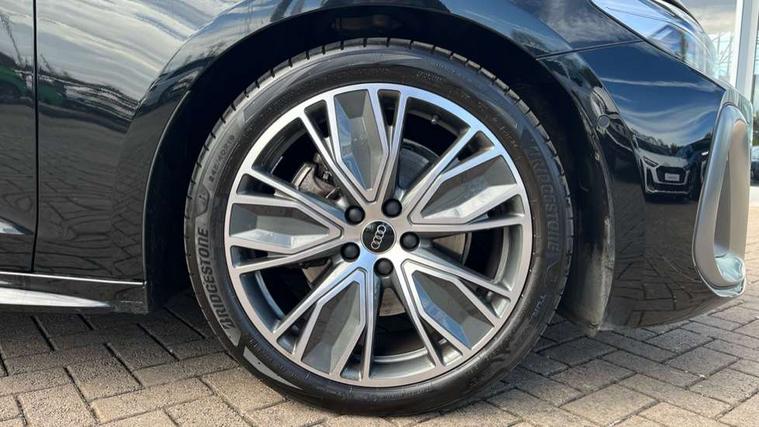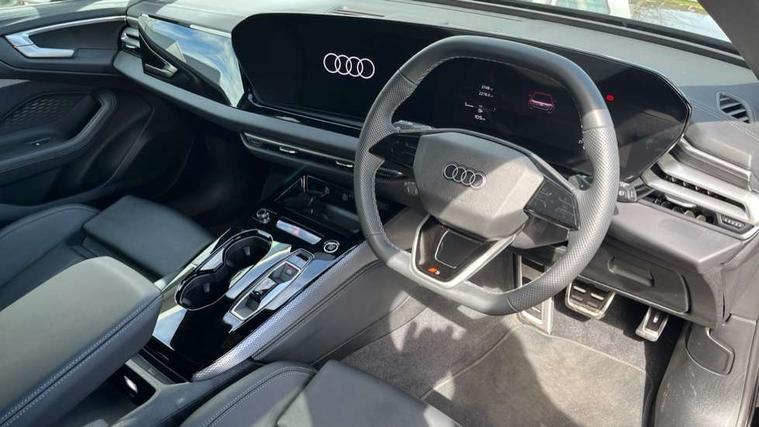 Adaptive cruise control, Advanced driver attention and fatigue montior, Audi application store, Audi assistant, Audi connect emergency call and service, Audi drive select, Audi virtual cockpit plus with 11.9" OLED colour display, Automatic start/stop system with coasting functionality, Camera based traffic sign recognition, Intersection assist, Lane departure warning, MMI navigation plus with high resolution 14.5" OLED touchscreen colour display, Park assist plus, Parking system plus with 360 display, Progressive steering with servotronic, Rear view camera, Smartphone interface, Swerve assist and turn assist, Traffic sign based speed limiter, Sports suspension lowered by 20mm, 2 USB-C ports in both the front and rear, Audi sound system impressive sound with 8 loudspeakers including centre speaker and subwoofer, 6-channel amplifier with a total output of 180 watts, DAB digital radio reception, Smartphone compartment with wireless charging, Aluminium roof rails, Aluminium window trims, Auto dimming rear view mirror, Body colour door mirrors, Door mirrors - electrically adjustable, heated, folding and auto dimming on both sides, Front and rear electric windows, Front door sill trims with aluminium inlays, illuminated with 'S' logo, High beam assist, LED headlights Plus incl. digital daytime running lights, turning light, all-weather light, motorway light, manouevring light and intersection light, LED rear lights pro incl. dynamic rear indicators and illuminated light strip with animated coming and leaving home function, LED third brake light, Privacy glass, Rear and side windows with heat insulating glass, Rear side wing doors, Rear wash/wipe, S Line badges on the front wings, S line bumpers, radiator grille and diffuser in phantom black and diffuser insert in matt anthracite, White rhombus logo projection light in exterior mirrors, Windscreen with acoustic glazing, 3 rear headrests, 3 seat rear bench, 3 spoke leather steering wheel with multi-function buttons with touch control, flattened on top and bottom, with S badging and contrast stitching, 3-zone automatic climate control, 40:20:40 split folding rear seat bench with centre armrest and cup holders, Comfort front centre armrest, Front and rear floor mats, Front seats with manual adjustment for position and 4-way electric lumbar support, Front sport seats with integrated headrest and S embossed logo, Headlining in black cloth, Heated front seats, i-Size child seat mounting on the front passenger side and outer rear seats, i-Size and top tether on the outer rear seats, Luggage compartment lid, electrically opening and closing, Manual steering column height and depth adjustment, Single front passenger seat, Stainless steel pedals and footrest, Steering wheel grips in perforated leather and shift paddles, Ambient lighting package plus - A5, 3x3 point rear seat belts, Driver airbag, Electric child safety locks, First aid kit with warning triangle and vests, Front emergency brake assist, Front passenger airbag, Front passenger airbag deactivation, Front side airbags with head airbag system and front interaction airbag, Hill hold assist, Seat belt monitoring with rear seat occupant reminder, Tyre pressure loss indicator, Anti theft alarm, Anti-theft wheel bolts, Keyless Go, Accent surfaces and control buttons in gloss black, Black dashboard with contrast stitching, Inlays in matt brushed aluminium with linear embossing, anthracite, Softwrap in leatherette with contrast stitching, Upper and lower interior elements in leatherette, Tyre repair kit,