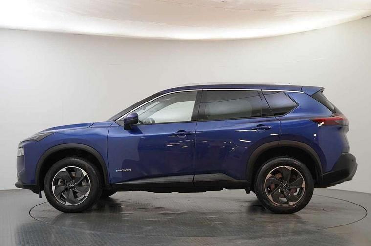 Android auto wireless, Blind spot warning, Drive assist custom mode, Drive modes (sport, normal, eco), Driver drowsiness and attention warning, e-Pedal step, Electric speed sensitive power steering, Emergency and breakdown call, Event data recorder, Front and rear parking sensors, Full Digital 12.3" TFT Digital Combimeter, Google maps services - search, weather, 3D maps and Google street view, Hands free power tailgate, Idle stop/start system, Intelligent around view monitor, Intelligent Cruise control (ICC), Intelligent driver alert system, Intelligent forward collision warning, Intelligent lane departure warning, Intelligent lane intervention, Intelligent lane keep assist, Maximum speed limiter, Moving object detection, Nissan connect 12.3 inch touchscreen infotainment system, Nissan connect nav with TomTom traffic, Propilot assist with Navi-Link, Push button starter, Rear cross traffic alert, Rear view camera, Remote control services - door locks, lights, horn and car locator, Reversing detection, Telematics - notifications and connectivity services, Traffic jam pilot, Traffic sign recognition with legal speed adjustment, Trip computer, Virtual personal assistant and firmware over the air capability, Wireless apple carplay, Wireless charging pad, 6 speakers, AM/FM audio system with DAB, Bluetooth audio streaming, Front USB connections (Type-A and Type-C), Rear USB charging only ports 2 Type-C, Auto dimming rear view mirror, Auto rear wiper when reversing, Body colour mirror caps, Body coloured door handles, Bodyside mouldings, Chrome side window finisher, e-POWER badging, Electric auto folding door mirrors, Electrically adjustable and heated door mirrors, Follow me home headlights, High beam assist, Intelligent auto headlights, LED 3rd brake light, LED daytime running lights, LED Headlights, LED rear lights, One touch front and rear electric windows with remote opening and closing, Partially body coloured bumpers, Rain sensing wipers, Rear reversing light (bulb lighting), Rear roof spoiler, Rear side wing doors, Rear styling plate, Shark fin antenna, Splash free wipers, Three blink turn signal, 12v power socket in dashboard and luggage, 3 bench rear seats in 2nd row, 3 rear headrests, 60/40 split folding rear seat bench, Butteryfly console, Chrome interior door handles, Cloth monoform upholstery, Driver and front passenger sunvisors with illuminated vanity mirrors, Driver seat back pocket, Dual zone automatic climate control with pollen filter, Front centre console and armrest, Front cupholders, Front door with bottle holders, Height adjustable driver's seat, Height adjustable front headrests, Height adjustable passenger seat, Leather shift knob, Leather steering wheel, Luggage board system, Luggage space lighting, Multifunction steering wheel, Passenger seat back pocket, Rear armrest with 2 cupholders, Rear door bottle holders, Single front passenger seat, Tilt/telescopic adjustable steering wheel, Two rear isofix child seat anchorage points with top tether, 3x3 point rear seatbelt pretensioners + load limiters, ABS with EBD and brake assist, Active brake limited slip, Auto hold function, Child locks on rear doors, Curtain and front side, far side airbags, Driver and passenger airbags, Driver, passenger and 2nd row rear seat belt reminder, Electronic parking brake, Front seatbelt pretensioners + load limiters, Height adjustable front seatbelts, Hill start assist, Intelligent blind spot intervention, Intelligent front emergency braking with pedestrian, cyclist recognition and junction assist, Intelligent rear automatic braking, Tyre pressure monitoring system, Vehicle dynamic control, Approach unlock and walk away lock, Engine immobiliser, Intelligent Key, Remote central door locking with deadlocking, Thatcham Cat.1 alarm, 18" Diamond cut alloy wheels, Tyre puncture repair kit,