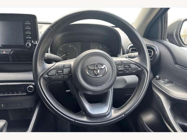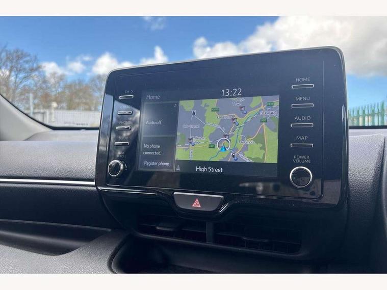4.2" coloured TFT multi information display with analogue speedometer, Adaptive cruise control, Adjustable speed limit with speed warning, Bluetooth connectivity, E-call, Electric power steering, Hybrid energy display, Multi information display switches on steering wheel, Reversing camera, Smartphone integration with Apple CarPlay and Android auto, Tailgate, Voice recognition, Vehicle Stability Control (VSC), 4 speakers, 7" Multimedia display touch screen, Toyota Touch 2 with DAB, USB connection, Acoustic windscreen glass, Auto windscreen wipers, Automatic headlights, Body coloured door mirrors, Bulb indicators, Chequered front grille, Daytime running lights, Electric adjustable heated door mirrors, Follow me home headlights, Front auto power windows with anti jam protection, Halogen projector headlights, LED High mounted stop lamp, Manual headlight levelling, Rain sensor, Rear side wing doors, Rear spoiler, Rear wiper, Shark fin antenna, Turning signal integrated indicators in door mirrors, Variable front intermittent wipers, 3 adjustable rear headrests, 3 seat bench in 2nd row, 3 spoke leather steering wheel, 60/40 split folding rear seat, Active headrests, Adjustable boot height, Auto air conditioning, Coat hooks in rear grab handles, Cup holders (2 front & door), Data Communication Module (DCM) connected services, Fabric upholstery, Front armrest, Glovebox, Grey roof lining, Height adjustable driver's seat, Isofix seat fixing, Leather gearshift, Pollen filter, Shopping bag hooks, Single front passenger seat, Tilt/telescopic steering column, 3 point seatbelts on all rear seats, ABS+EBD+Brake assist, Electronic parking brake, Emergency brake light system (EBS), Front passenger airbag on/off switch, Front seatbelt reminder, Hill start assist control (HAC), Rear child proof door locks, Rear seat belt reminder, Supplemental Restraint System (SRS) 8 airbags: Driver & passenger's airbags, dual side curtain airbags, side impact airbags, front centre airbag, Toyota Safety Sense 2, Precollison + Night time Pedestrian & Cyclist Detection, Lane Trace Assist, Auto High Beam, Intelligent ACC & Road Sign Assist, Tyre pressure warning system, 2x Master key, Alarm/immobiliser, Remote powered central double locking doors, Soft touch instrument panel, Space saver spare wheel,