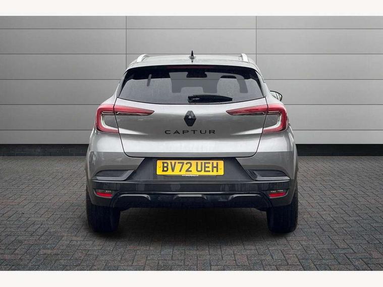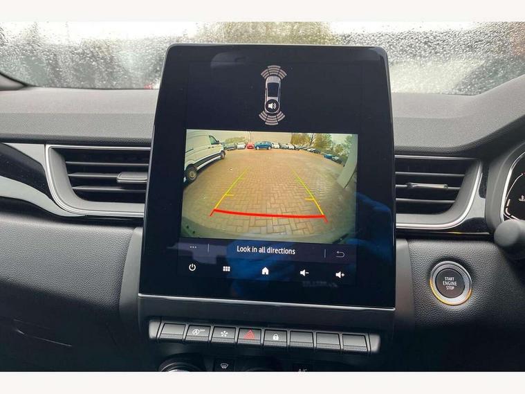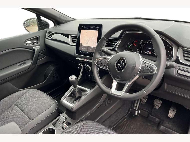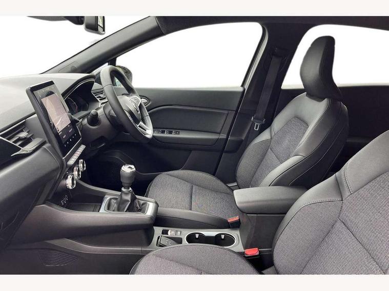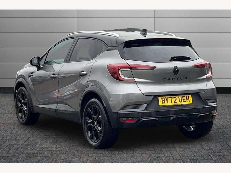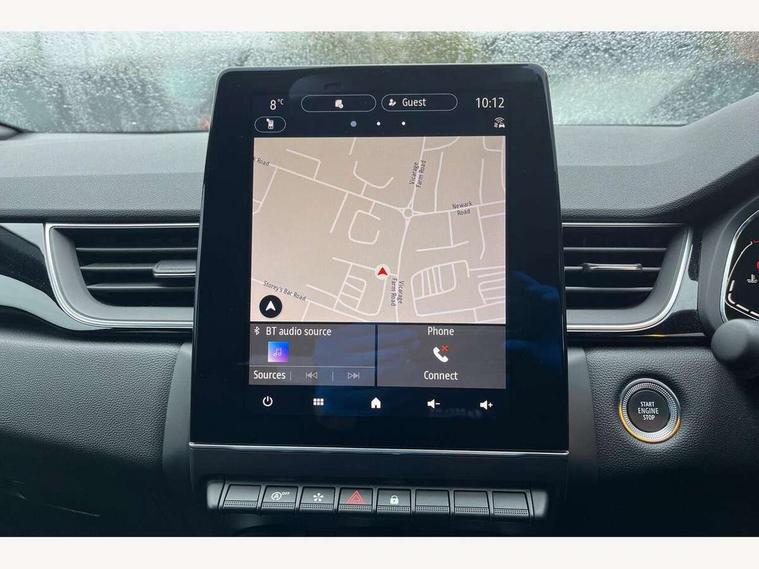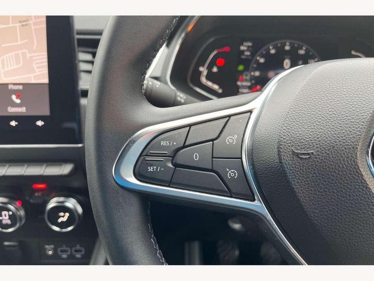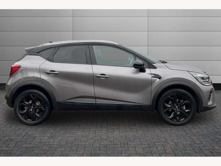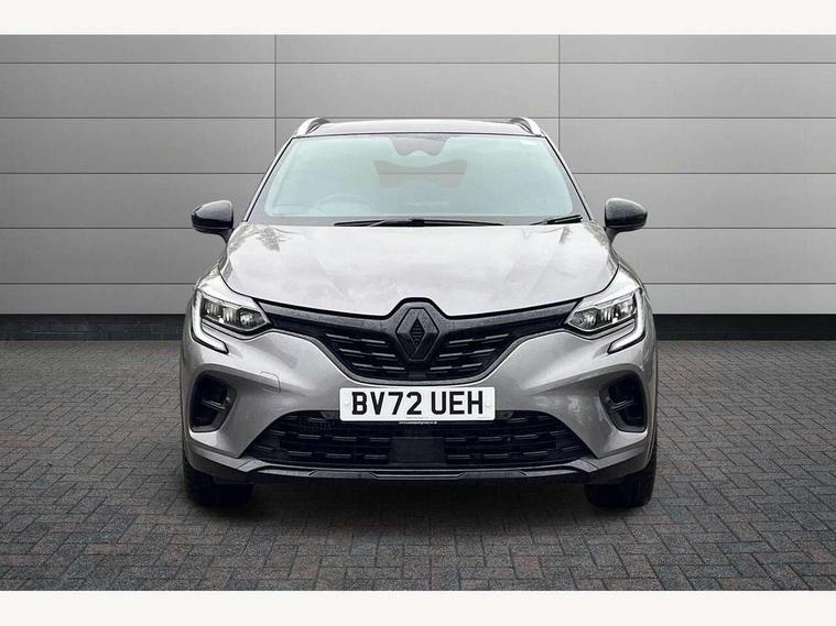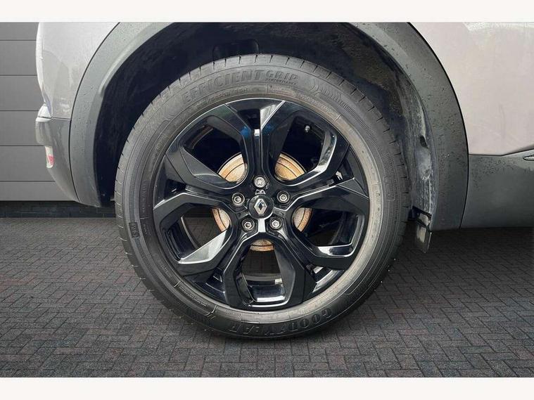 7" TFT Driver information display, Cruise control + speed limiter, EasyLink 9.3" portrait touchscreen with navigation, google search and traffic information, Eco mode, Front and rear parking sensors with rear view camera, Gear change indicator, Lane departure warning system, Lane keep assist, Multisense with 3 driving modes + 8 ambient lighting colours, Renault automatic emergency assist, Smartphone integration compatible with Apple CarPlay and Android Auto, Traffic sign recognition with over speed prevention, Trip computer, Variable assistance power steering, Wireless phone charger, DAB Radio with Bluetooth and USB, Auto dimming rear view mirror, Automatic front wipers with rain sensors, Automatic headlights, Automatic high/low beam, Black 'Renault' logo at the front and rear with black 'CAPTUR' naming on tailgate, Black door mirrors, Body colour door handles, Body coloured bumpers, C Shaped LED front and rear lighting signatures with 3D effect on the rear lights, Day time running light, Drivers one touch window with anti-pinch feature, Extra tinted glass in rear windows and tailgate, Front and rear electric windows, Full LED headlights, Gloss black front air intakes surrounds, Gloss black lower door protection, Glossy black side door protection, Grey front and rear skid plate, LED front fog lights, LED high level brake lights, LED rear fog light, Longitudinal roof bars, Rear side wing doors, Rear wiper, Shark fin antenna, 12V Accessory socket, 3 rear headrests, 60/40 split and fixed base rear seat bench, Automatic climate control with one touch demist function and air quality regulator, Centre console storage tray, Dark roof lining, Front head restraints, Glovebox, Heating system with pollen filter, Height adjustable driver's seat, Height adjustable passenger seat, Height/reach adjust steering wheel, ISOFIX child seat fixing points on rear outermost seats, LED front roof lights, Middle console with armrest and storage, Modular boot floor, Rear air vents, Red insert on air vent, Single front passenger seat, Sliding rear bench, Synthetic leather steering wheel, Synthetic leather/cloth upholstery, 3 rear seatbelts, ABS+EBA, AEBS, Distance warning alert, Driver and front passenger, side, head and curtain airbags, Driver height adjustable seat belt, Electric parking brake with auto hold function, Electronic stability control, Front and rear no seatbelt warning sound, Front dash warning indicator in case of heavy braking, Front driver and passenger side airbag deactivation, Hill start assist, Rear door and window child locking function for rear door, Tyre pressure warning light, Anti drill door locks and locking fuel cap, Central door locking, Deadlocking system, Hands free keycard with push button and start/stop function, RAID (Renault Anti-Intruder Device) automatic door locking, Black soft touch dashboard, Glossy black insert on dashboard, 18" Shiny black pasadena diamond cut alloy wheels,