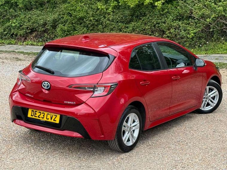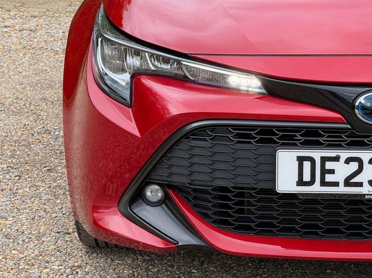 7" Multi information display screen, Bluetooth telephone connectivity, Connected car functionality upgrade, tracker, remote status and e-care, Dynamic radar cruise control (with RSA) including switch on steering wheel, E-call, Electrically assisted power steering, EV drive indicator, Lane Departure Alert (LDA) switch on steering wheel, Memory on adjustable speed limiter, Push button start, Reversing camera, Smartphone integration with Apple CarPlay and Android auto, Gasoline particulate filter, Vehicle Stability Control (VSC), 6 speakers, 8" Touchscreen with MM19 Multimedia system and voice recognition, AM/FM radio, DAB Digital radio, USB and Aux in connectors + 12V front outlet, Anti-jam protection on power windows, Auto up and down function on all power windows, Automatic headlights with high beam assist, Black metallic surround on lower front grille, Black toyota logo in front, Black window frames, Body colour rear spoiler, Body coloured bumpers, Body coloured door mirrors, Body coloured outside door handles, Follow me home headlights, LED daytime running lights, LED front fog lights, LED Headlights, LED High mounted stop light, Manual day/night rear view mirror, Power adjustable heated door mirrors, Power front windows, Power rear windows, Rain sensor, Rear side wing doors, Rear window defogger, Rear window wiper, Shark fin antenna, Time adjustment on intermittent wiper, Turning signal integrated indicators in door mirrors, Unique lower skirt, Unique side rocker with black insert, UV-filter on driver and passenger windows, 3 rear headrests, 3 seat bench in 2nd row, 3 spoke leather steering wheel + gear knob, 60/40 split folding rear seat, Adjustable speed limiter switch on steering wheel, Audio, multimedia and telephone switches on steering wheel, Boot light, Centre room light, Clean air filter, Driver and front passenger personal light, Driver and passenger assist grip, Driver and passenger sun visor with mirror and light, Dual zone automatic air conditioning with ECO mode switch, Fabric armrests, Front and rear cup and bottle holders, Front door pockets, Front head restraints, Front passenger seat, Heated driver and front passenger seats, Illuminated entry system in room lamp, ISOFIX seat fixing (2 fixings on rear outer seats), Leather gear shift with satin chrome on gear shift console, Manual height adjustable for driver and front passenger seat, Parcel shelf, Passenger seat back pocket, Pollen filter, Power adjustable lumbar support on driver seat, Power window switches with satin chrome inserts, Quilted fabric upholstery with grey stitches seats, Rear armrest with 2 cupholders, Rear passenger coat hooks (2), Satin chrome inside door handles, Shopping bag hooks in luggage compartment, Sliding armrest on centre console box, Slow opening glovebox with lights, Tilt/telescopic steering column, Voice recognition switch on steering wheel, Whiplash Injury Lessening (WIL) feature (active headrest) for seats, Toyota safety sense 2 pack - Corolla, 3x3 point rear seatbelts, Adjustable driver and front passenger seat belt extender to top anchor point, Anti lock braking system + Electronic brake force distribution, Brake assist function, Child locks on rear doors, Downhill Assist Control (DAC), Electronic parking brake, Emergency brake light signal (EBS), Front passenger airbag on/off switch, Front seatbelt reminder, HAC - Hill start assist control, Rear seat belt reminder, Seatbelt pretensioners and force limiters, Supplemental restraint system (SRS) 7 airbags - dual driver, dual side curtain, side impact and driver knee airbags, Traction control, Tyre pressure warning system, Acoustic vehicle alert system (AVAS), Alarm with motion sensor and immobilizer, Remote central locking + deadlocks, Satin chrome dash trim, Soft touch texture on upper dashboard, Unique wheel finish with red wheel cap,