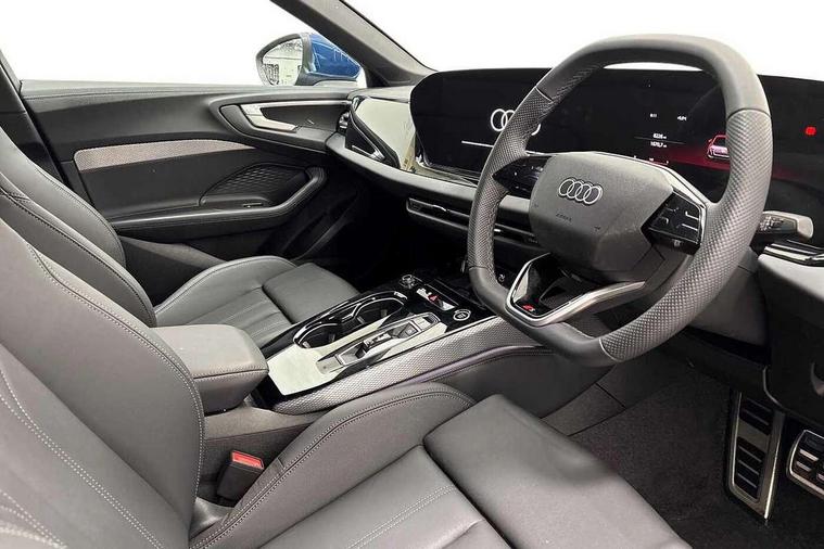 Adaptive cruise control, Advanced driver attention and fatigue montior, Audi application store, Audi assistant, Audi connect emergency call and service, Audi drive select, Audi virtual cockpit plus with 11.9" OLED colour display, Automatic start/stop system with coasting functionality, Camera based traffic sign recognition, Intersection assist, Lane departure warning, MMI navigation plus with high resolution 14.5" OLED touchscreen colour display, Park assist plus, Parking system plus with 360 display, Progressive steering with servotronic, Rear view camera, Smartphone interface, Swerve assist and turn assist, Traffic sign based speed limiter, Sports suspension lowered by 20mm, 2 USB-C ports in both the front and rear, Audi sound system impressive sound with 8 loudspeakers including centre speaker and subwoofer, 6-channel amplifier with a total output of 180 watts, DAB digital radio reception, Smartphone compartment with wireless charging, Aluminium window trims, Auto dimming rear view mirror, Body colour door mirrors, Door mirrors - electrically adjustable, heated, folding and auto dimming on both sides, Front and rear electric windows, Front door sill trims with aluminium inlays, illuminated with 'S' logo, High beam assist, LED headlights Plus incl. digital daytime running lights, turning light, all-weather light, motorway light, manouevring light and intersection light, LED rear lights pro incl. dynamic rear indicators and illuminated light strip with animated coming and leaving home function, LED third brake light, Privacy glass, Rear and side windows with heat insulating glass, Rear boot, Rear side wing doors, S Line badges on the front wings, S line bumpers, radiator grille and diffuser in phantom black and diffuser insert in matt anthracite, White rhombus logo projection light in exterior mirrors, Windscreen with acoustic glazing, 3 rear headrests, 3 seat rear bench, 3 spoke leather steering wheel with multi-function buttons with touch control, flattened on top and bottom, with S badging and contrast stitching, 3-zone automatic climate control, 40:20:40 split folding rear seat bench with centre armrest and cup holders, Comfort front centre armrest, Front and rear floor mats, Front seats with manual adjustment for position and 4-way electric lumbar support, Front sport seats with integrated headrest and S embossed logo, Headlining in black cloth, Heated front seats, i-Size child seat mounting on the front passenger side and outer rear seats, i-Size and top tether on the outer rear seats, Luggage compartment lid, electrically opening and closing, Manual steering column height and depth adjustment, Single front passenger seat, Stainless steel pedals and footrest, Steering wheel grips in perforated leather and shift paddles, Ambient lighting package plus - A5, 3x3 point rear seat belts, Driver airbag, Electric child safety locks, First aid kit with warning triangle and vests, Front emergency brake assist, Front passenger airbag, Front passenger airbag deactivation, Front side airbags with head airbag system and front interaction airbag, Hill hold assist, Seat belt monitoring with rear seat occupant reminder, Tyre pressure loss indicator, Anti theft alarm, Anti-theft wheel bolts, Keyless Go, Accent surfaces and control buttons in gloss black, Black dashboard with contrast stitching, Inlays in matt brushed aluminium with linear embossing, anthracite, Softwrap in leatherette with contrast stitching, Upper and lower interior elements in leatherette, Tyre repair kit,