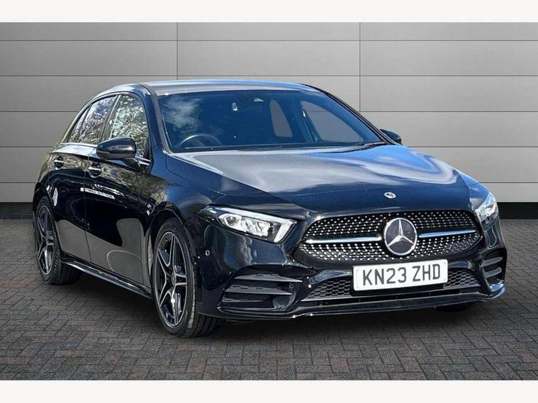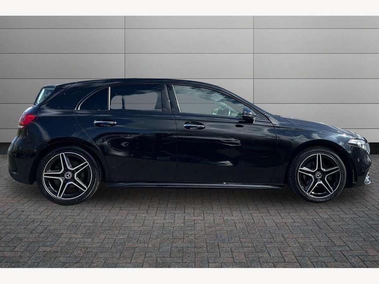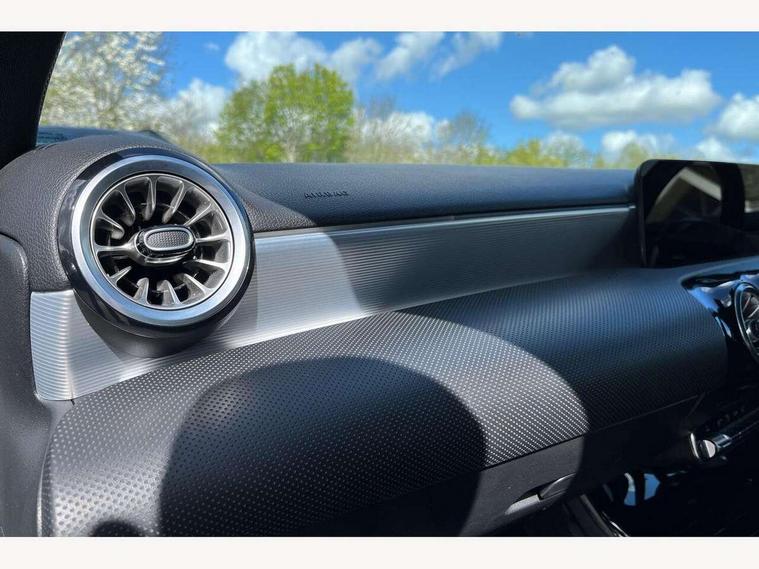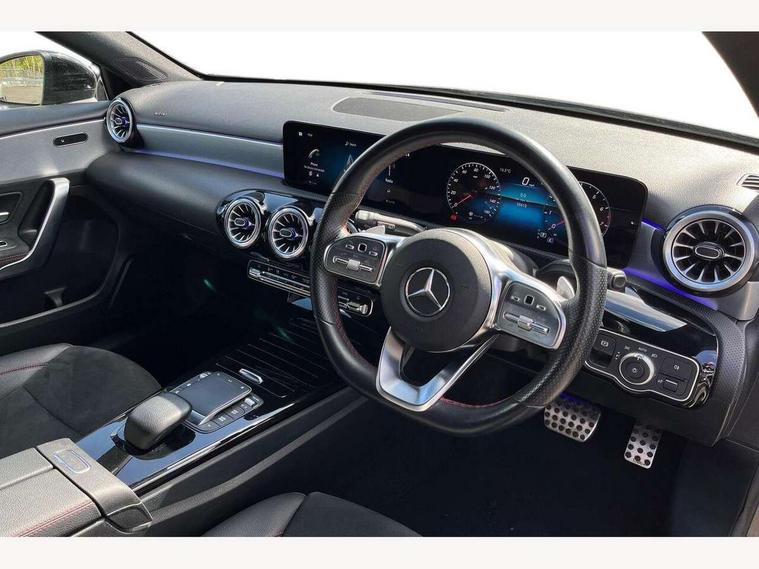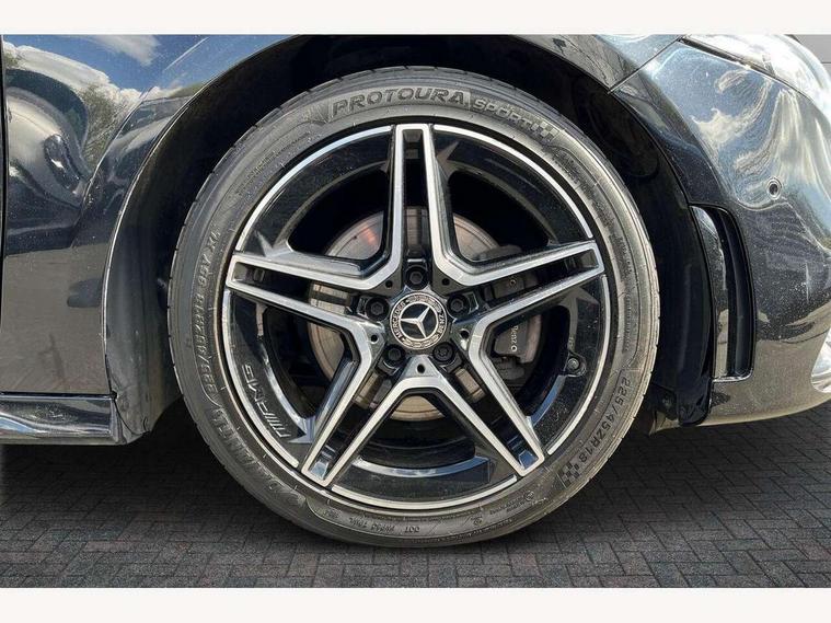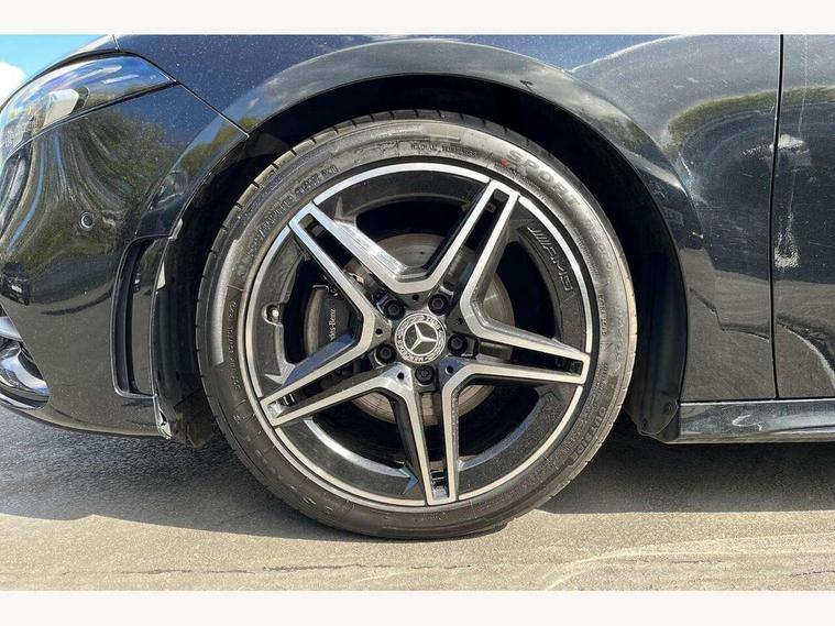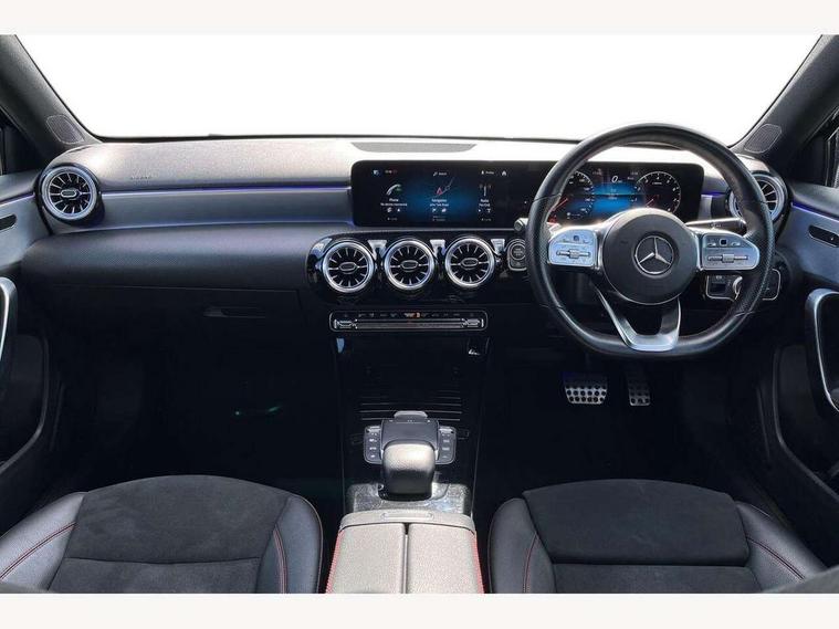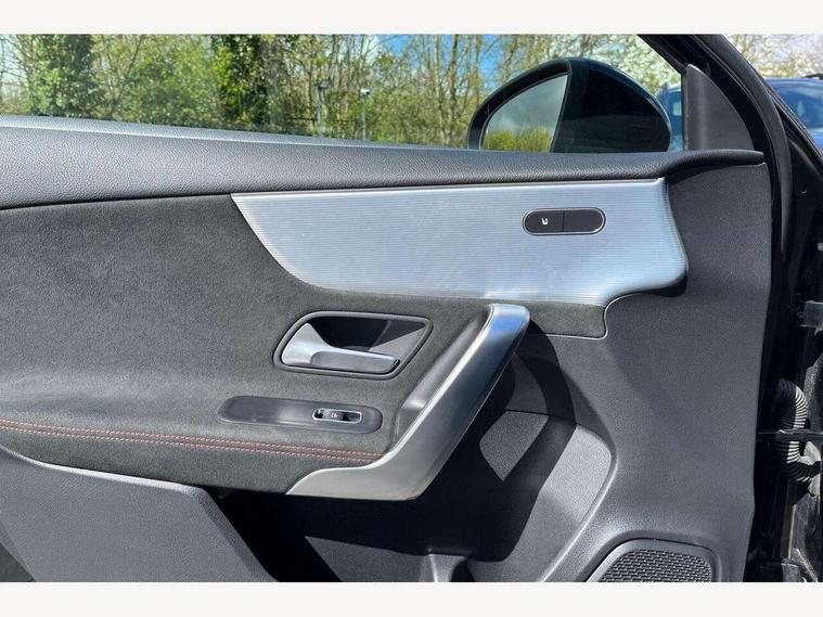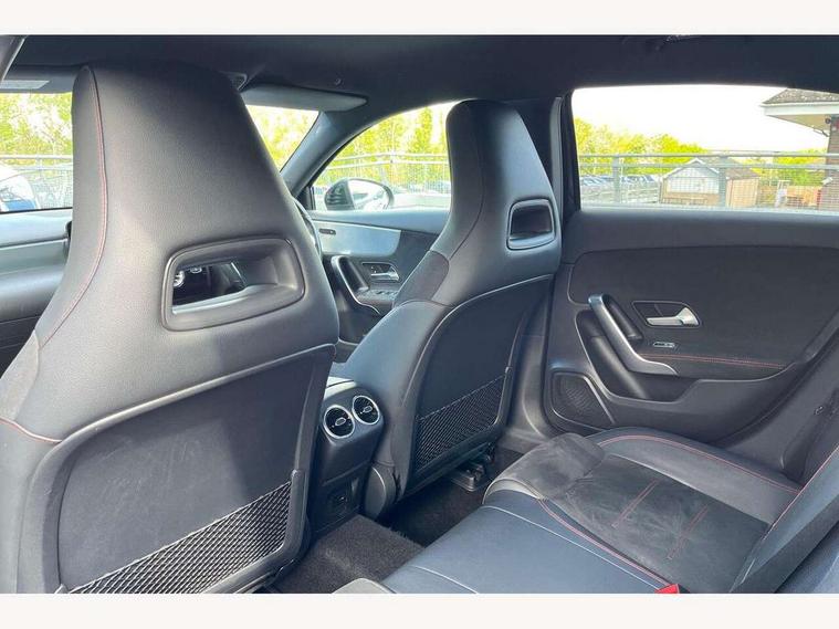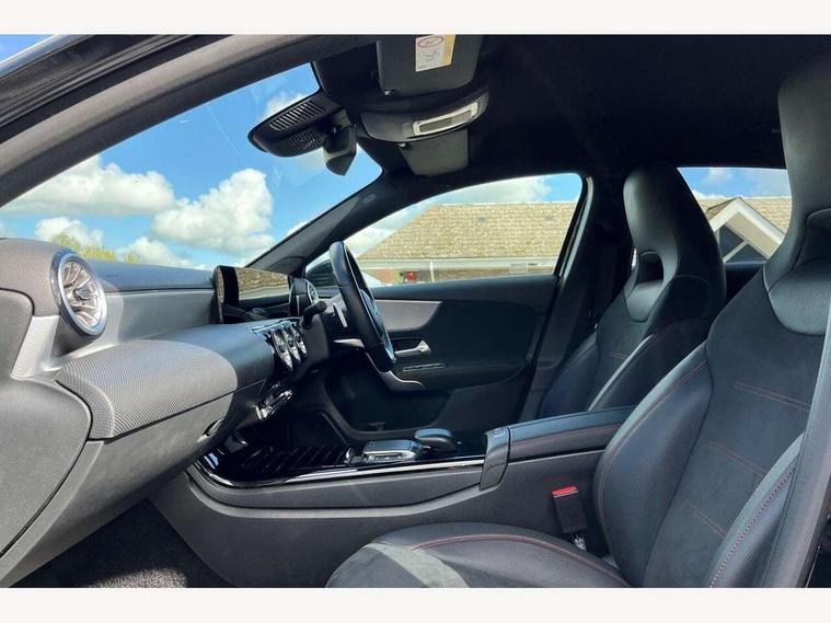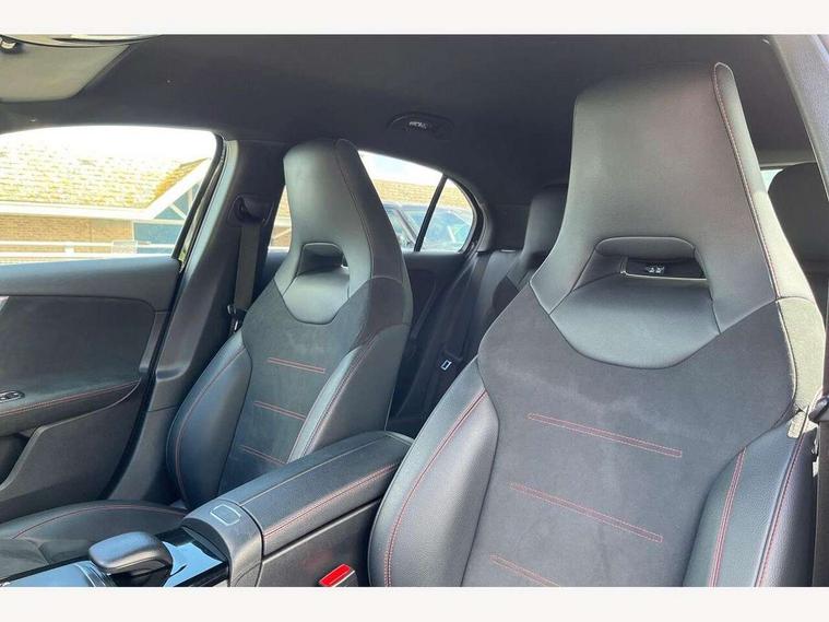 10.25" Digital instrument cluster display screen, 10.25" media display, 180 degree rear view camera with parking guidelines, Active parking assist with visual and audible warning of detected obstacles, Attention assist, Brake pad wear indicator warning light, Car wash mode, Cruise control + speed limiter, Direct steering, Dual bluetooth interfaces, DYNAMIC SELECT with a choice of driving modes (ECO, Comfort, Sport and Individual), ECO start/stop function, Fluid level warning indicator for fuel, oil, coolant and washer fluid, Hard-disk navigation, Hey Mercedes Voice activation, Lamp failure indicator, Lane keeping system, Mercedes me connect including emergency call system, accident recovery, breakdown and maintenance management, Mercedes me remote services, Outside temperature gauge, Owners manual in English, Pre-installation for private car sharing, Preinstallation for Mercedes Benz link, Service indicator (ASSYST), Smartphone integration with Apple CarPlay and Android auto, Speed limit assist, Speed sensitive power steering, Trip computer, Ultrasonic sensors positioned in the front and rear bumpers, Lowered comfort suspension, Rear axle torsion beam, 2 USB ports (type C) in rear stowage compartment and one in front of center console, 6 speakers, DAB Digital radio, MBUX multimedia system with DAB digital radio and touchpad including satellite navigation, Mercedes-Benz sound system - 100W, 4 Electric Front and Rear windows, Adaptive brake lights, AMG bodystyling - Front apron with splitter in chrome, rear apron with chrome trim and chrome visible trim elements in tailpipe, Automatic headlights, Black weather strip, Body colour bumpers, Body colour door handles with chrome inserts, Body colour side skirt, Electric adjustable and heated door mirrors with integrated LED side indicators, Exclusive diamond radiator grille, Exhaust system - Twin visible tailpipes in polished stainless steel, Headlamp assist automatic headlamp activation, Heated glass rear windscreen + timer control, LED High level third brake light, LED high performance headlamps with integrated LED daytime running lights, LED tail lamp, Privacy glass, Radio aerial, Rain sensing windscreen wipers with two sensitivity settings, Rear fog lights, Rear side wing doors, Rear wiper, 3 seat bench in 2nd row, 3 Spoke flat bottom leather multi function steering wheel with perforated leather in grip area, 40:20:40 split folding rear seats, Artico man-made leather/Microfibre Dinamica upholstery with red contrast stitching, Auto Mercedes-Benz child seat recognition sensor, Black air vents with surround in silver chrome, Black roof lining, Brushed stainless steel sports pedals with rubber studs, Controller on centre console with chrome surround, Floor mats with AMG lettering, Front centre armrest with storage compartment, Front seat backs luggage nets, Galvanished gear shift paddles on steering wheel, Heated front seats, Height/reach adjustable steering column, Illuminated Mercedes Benz lettering front door sills with changeable cover, Interior lighting - 64 colour Ambient lighting, Interior mirror with reading lamps in black and frameless, Manual height adjustable front seats, Rear armrest with 2 cupholders, Rear head restraints, Seat occupancy sensor for front passenger seat, Single front passenger seat, Sports seats with integrated headrests, Stowage compartment in centre console with retractable cover, Sunvisors with illuminated vanity mirrors, Touchpad on center console, Twin front cupholders, Two zone thermotronic luxury automatic climate control, Light and sight pack - A Class, Mirror package - A Class, Night pack - A Class Saloon/Hatchback, Seat comfort pack - A Class, 3 rear 3 point seatbelts, ABS with Brake Assist, Active bonnet, Active brake assist includes forward collision warning system with autonomous braking, Adaptive brake assist with hold function and hill start assist, Childproof locks manually operated for rear doors and electrically operated for rear power windows, Crash responsive emergency lighting, Driver and passenger head and side airbags, Drivers knee airbag, Dual stage driver/passenger airbags, Electronic parking brake, ESP curve dynamic assist, ESP with ASR, Front and rear seatbelt reminder, Front brake callipers with Mercedes Benz lettering, ISOFIX and top tether child seat fixing points in two outer rear seats, Tyre pressure monitoring system, Warning triangle and first aid kit, Window airbags, Alarm system/interior protection/immobiliser, Keyless entry lock/unlock, Keyless Go, Remote central locking and crash sensor with emergency opening function, Urban guard vehicle protection system with immobiliser and interior protection, Black seatbelts, Matrix look light longitudinal grain aluminium trim element, 18" AMG 5 twin spoke light alloy wheels aerodynamically optimised painted in black with highsheen finish, Summer tyres, Tirefit sealant kit,