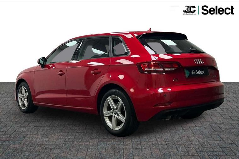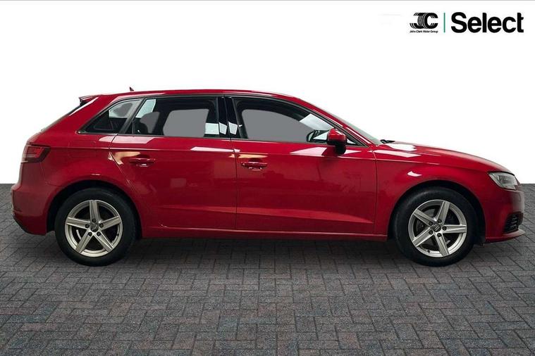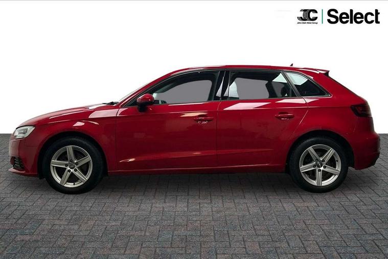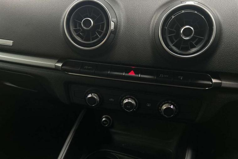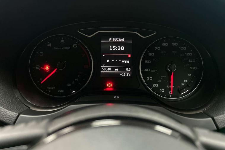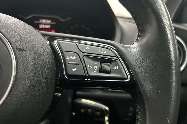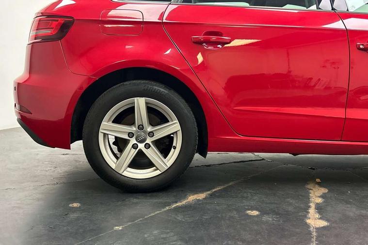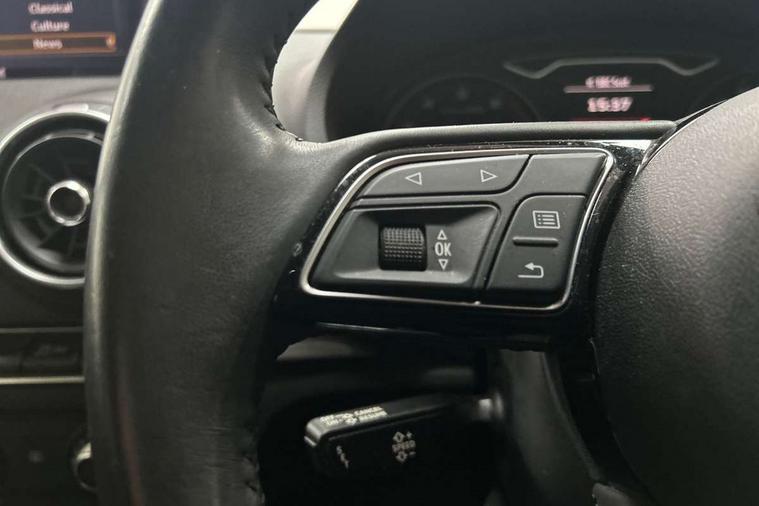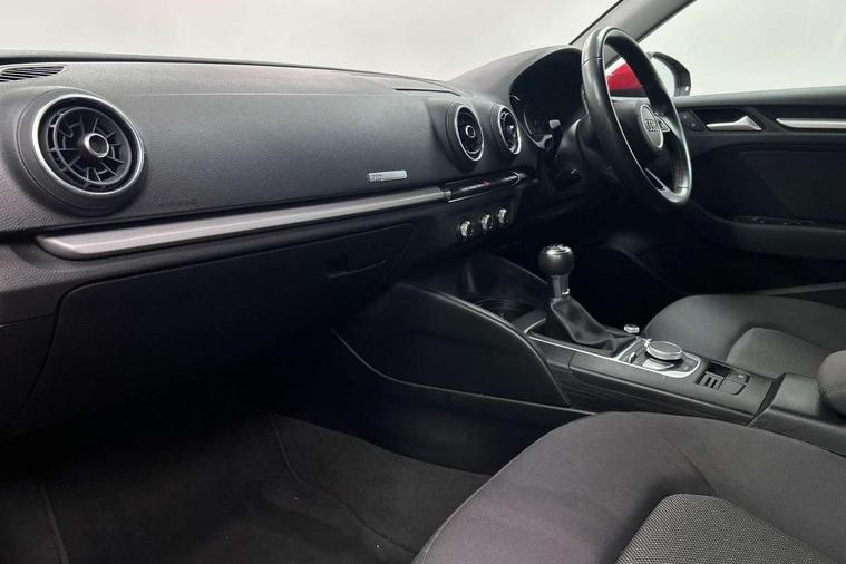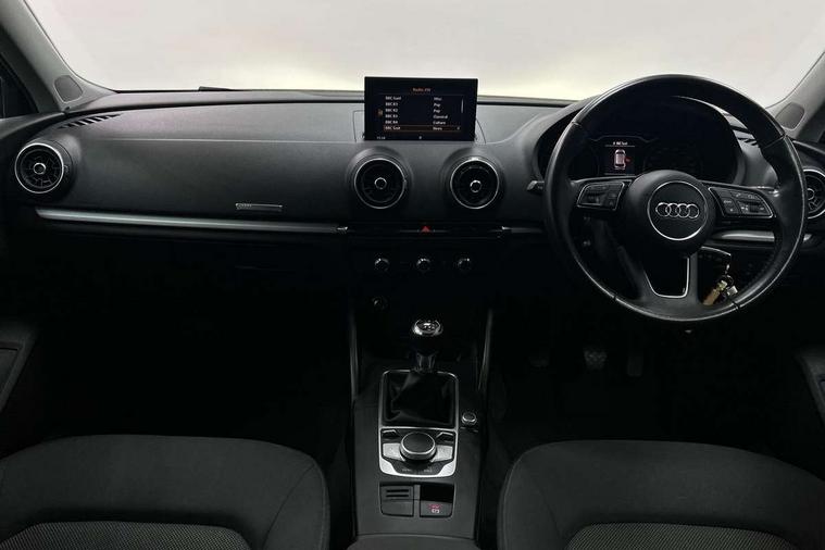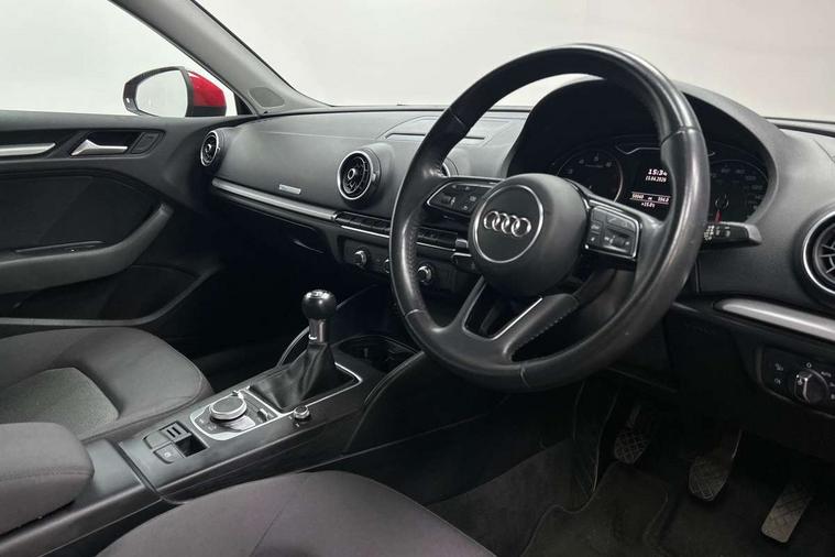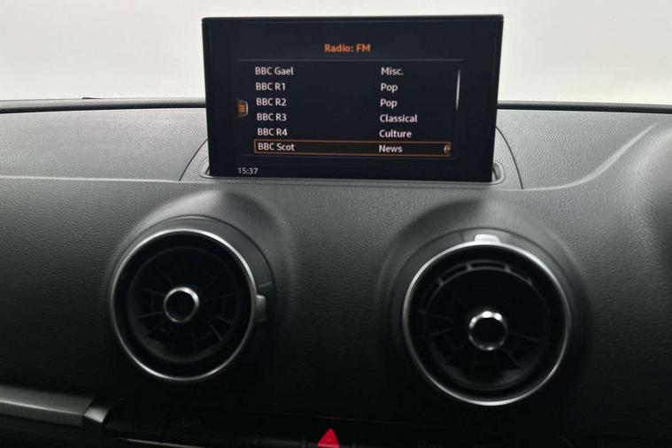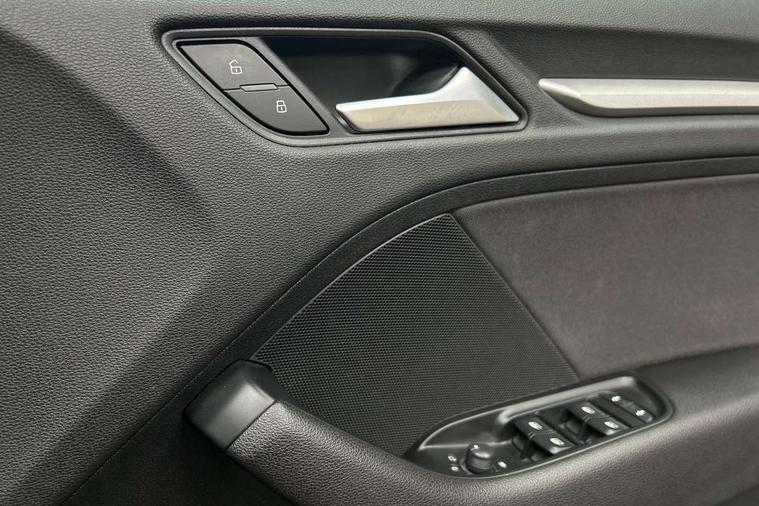 Audi smartphone interface, Colour driver's information system display, Electro-mechanical PAS, Mobile telephone preparation - bluetooth interface, Service interval indicator, Speed limit display, Voice control system, Dynamic suspension, 2 USB ports, Audi music interface, Auxiliary input socket, DAB Digital radio, Body colour bumpers, Body colour door mirrors with integral indicators, Body colour roof spoiler, Electric front windows, Electric operated/heated door mirrors, Electric rear windows, Heated windscreen washer jets, LED daytime running lights, Matt black radiator grille, Rear wiper, Twin exhaust tailpipe, 3 adjustable rear headrests, 3 spoke leather multifunction sports steering wheel, 4 lashing points to secure luggage, Adjustable front armrest, Front and rear interior lights with delay, Front passenger seat isofix location point, Front/rear floor mats, Height/depth adjustable steering column, Illuminated glovebox, ISOFIX child seat preparation+airbag deactivation, Jack and tool kit, Storage compartment in centre console, Storage compartment under front seats, Storage compartments in doors, Light and rain sensor pack - A3 Hatchback/Sportback, 3 point seatbelts on all seats, ABS/EBD, Active bonnet, Active front headrests, ASR, Curtain airbags, Driver and passenger side airbags, Driver/Front Passenger airbags, Drivers knee airbag, EDL, Electromechanical parking brake, ESC - Electronic Stability Control + traction control, Front passenger airbag deactivation, Manual rear child locks, Multi-Collision braking, Seatbelt warning, Tyre pressure monitor, Warning triangle and first aid kit, Anti theft alarm, Anti-theft wheel bolts, Remote control central locking, Thatcham category 1 alarm + immobiliser, Aluminium air vent surrounds, Space saver spare wheel,
