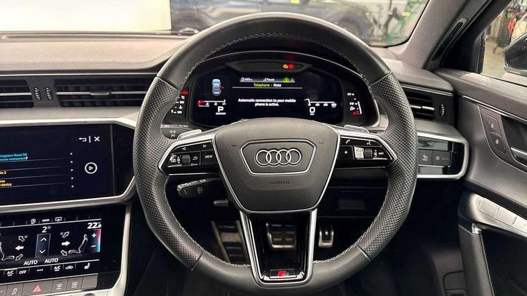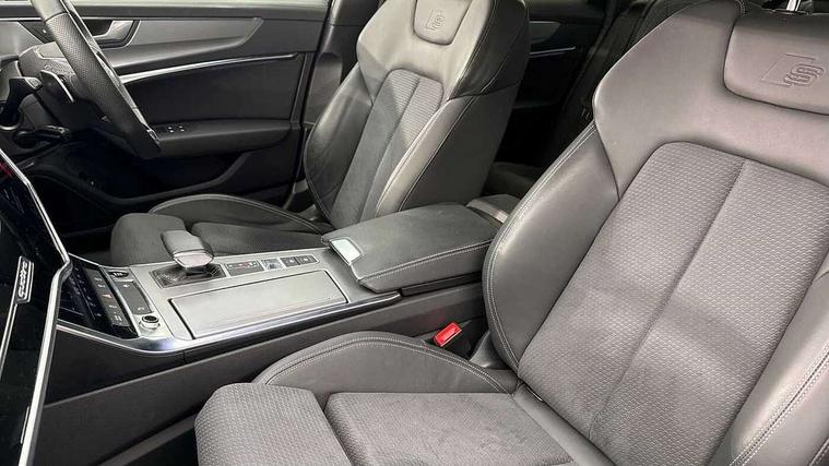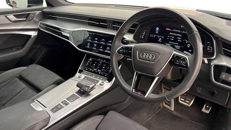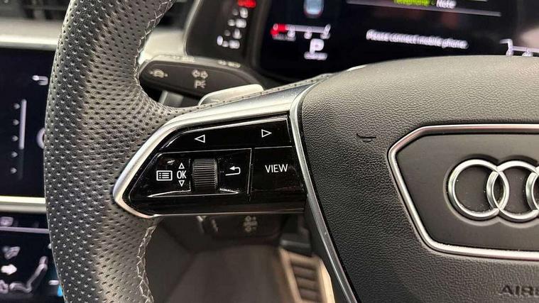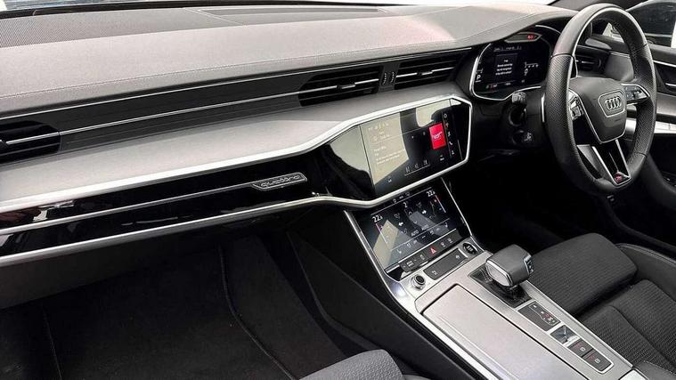 7" high resolution colour driver information display system, Audi connect safety and service (e-call), Audi connect with Amazon Alexa Integration, Audi drive select, Audi parking system plus - acoustic and visual park assist system for front and rear, Automatic start/stop system with coasting functionality, Bluetooth interface, Electric boot lid release, Lane departure warning system, Progressive steering, Rear view camera, Service interval indicator, Smartphone interface includes wireless Apple carplay/Android Auto, Voice control system, 12V Mild hybrid, 24 litre AdBlue tank, Diesel particulate filter, Quattro on demand, Sports suspension, Audi front music interface, Audi sound system, Auxiliary input socket, DAB Digital radio, USB connection, Body coloured door mirrors, Electric front/rear windows, Frameless auto dimming interior rear view mirror, Front intermittent wipers, Headlight washers, Heat insulating darkened glass in side and rear windows, Heat insulating glass in windshield, LED signature front daytime running light, LED third brake light, Matrix LED headlights, Matt black side air intake grille with inlay in matt aluminium, Privacy glass, Radiator grille in anthracite black matt, single frame in chrome and horizontal struts in matt aluminium silver, Rain and light sensors, Rear boot, Rear side wing doors, S line air inlet design with inlay in matt aluminium, S Line badge on front fender, S Line front and rear bumpers, S line rear diffuser and grille in matt black with matt aluminium tailpipes, S Line side skirts, Signature rear LED light design, 2 zone deluxe electronic climate control, 4 way electric lumbar support for driver and front passenger, 40/20/40 split folding 3 rear seat bench in 3 parts with rear centre armrest, Black cloth headlining, Black steering wheel insert, Electrically adjustable front seats with driver memory, Front centre armrest, Front head restraints, Heated front seats, Height/reach adjust steering wheel, Illuminated door sill trims with S logo, Illuminated sun visors with vanity mirrors, ISOFIX child seat mounting and Top Tether with front passenger airbag deactivation, Leather gear knob, Perforated leather steering wheel with contrast stitching, Rear headrests, S line front and rear black carpet floor mats with contrast stitching, Single front passenger seat, Stainless steel pedals and foot rest, LED Interior Ambient Lighting Pack - A6, Non smoking pack - A6, Technology pack - A6, 3 point seatbelts on all seats, Airbags - Front side, front and rear including head, Audi pre-sense front, EBD - Electronic brakeforce distribution, Electromechanical parking brake, Electronic Stability Control (ESC) including ABS, ASR and EDL, Extended pedestrian protection measures, Manual child proof rear door locks, Seatbelt monitoring, Tyre pressure warning light, Warning triangle and first aid kit, Anti theft alarm with tow away protection, Anti-theft wheel bolts and wheel loosening detection, Immobiliser, Keyless Go, Remote central locking, Black seatbelts, Matt brushed aluminium dark inlays,