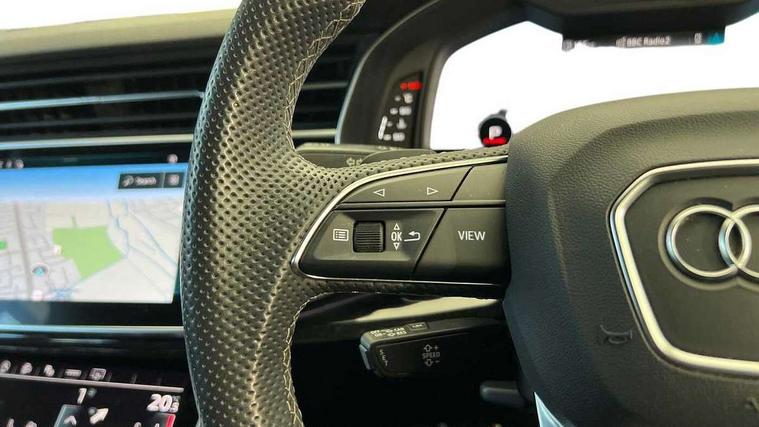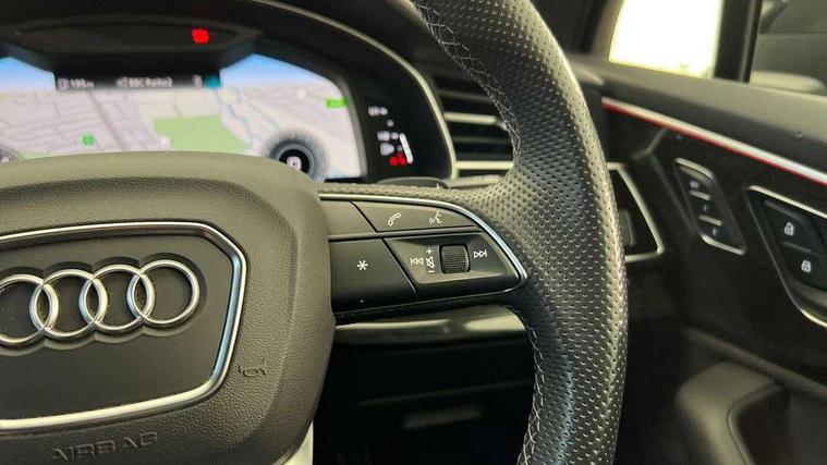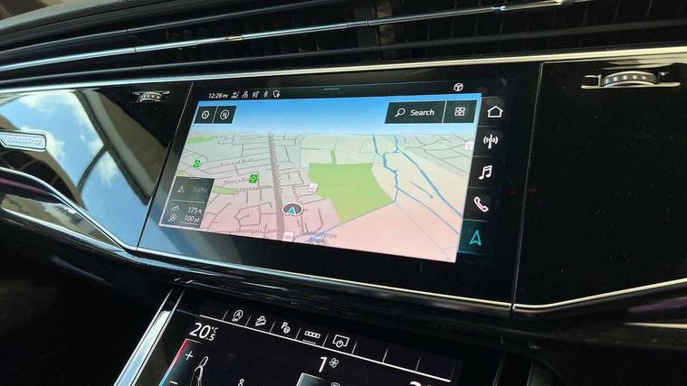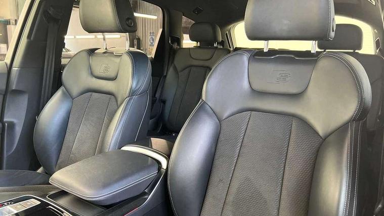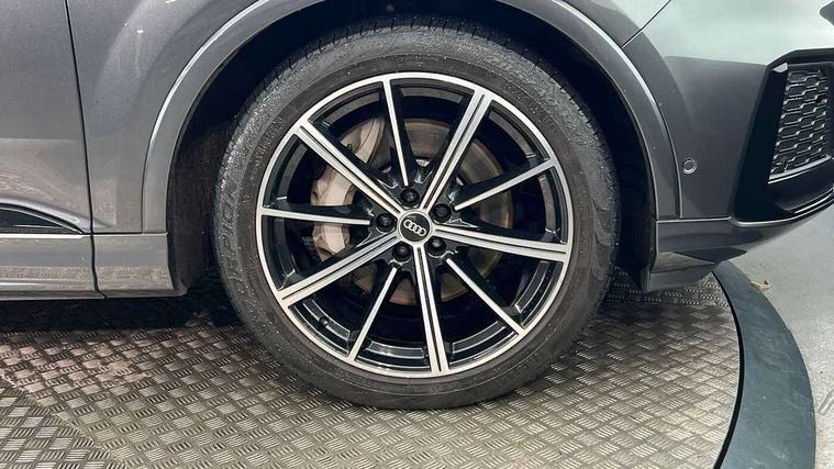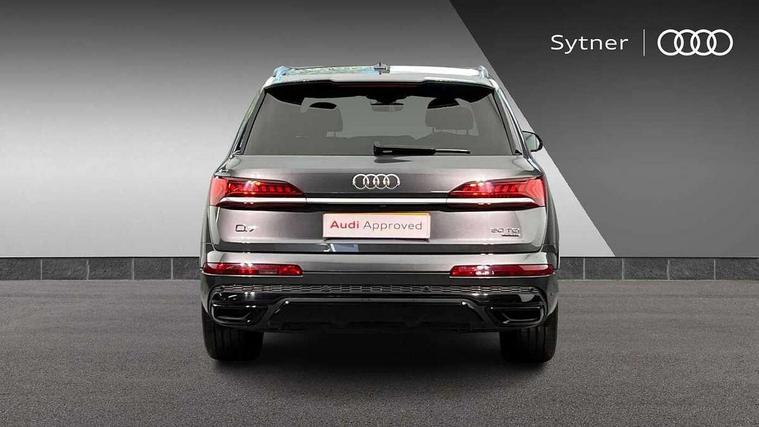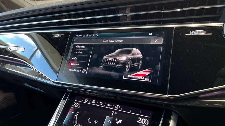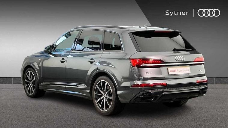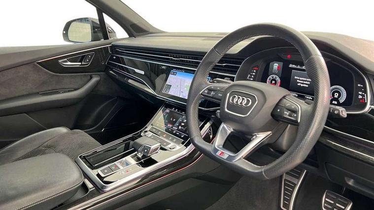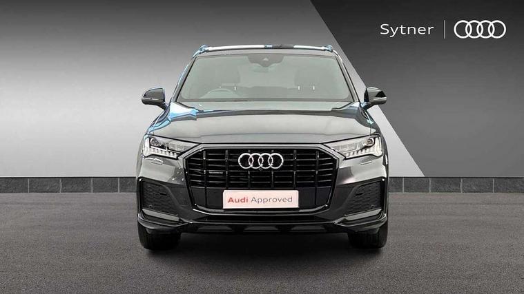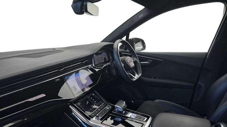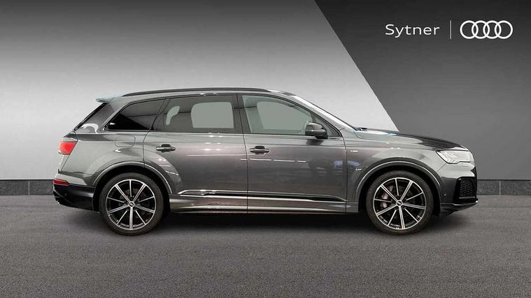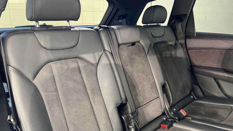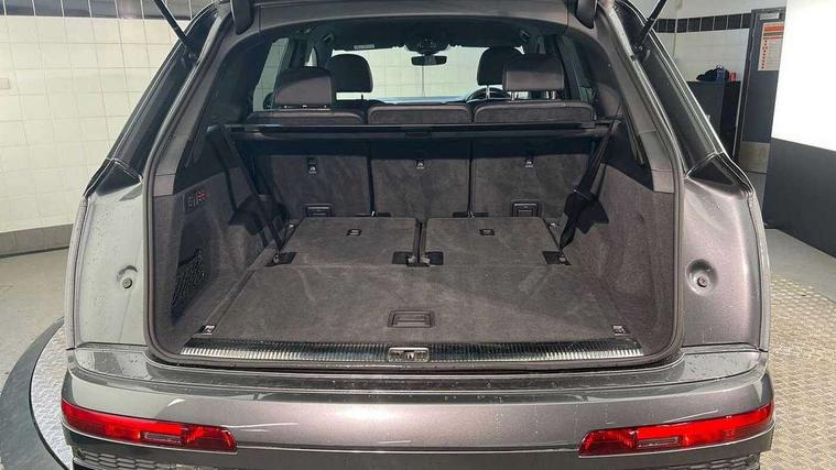 Audi connect safety and service (e-call), Audi drive select (Auto, Comfort, Dynamic, Efficiency, Individual, Off-road and All road), Audi phone box with wireless charging, Camera based traffic sign recognition, Electromechanical steering, MMI navigation plus with MMI touch screens includes 10.1" and 8.6" screens with haptic feedback, Natural voice recognition, Parking system plus - front + rear sensors, Power operated tailgate, Rear view camera, Smartphone interface includes wireless Apple carplay/Android Auto, Start/stop system, 48V Mild hybrid technology, Adaptive air sports suspension, Quattro all wheel drive with self locking centre differential, Audi music interface - front 2 USB-C ports with charger and data functions, Audi sound system with 6 channel amplifier, 180 watt amplifying capacity and 10 loudspeakers including subwoofer, DAB digital radio module, Audi matrix LED headlights with dynamic front and rear indicators, Auto dimming frameless rear view mirror, Black roof rails, Bumpers in contrast paint scandium grey finish includes door trim and wheel arch trim strips, inlays in door strip contain quattro embossing, Electrically adj heated/folding + automatically dimming exterior mirrors with memory + automatic kerb side function for passenger side exterior mirror, Heat insulating glass in windshield, Integrated LED indications in door mirrors, LED daytime running lights, LED rear tail lights, Privacy glass - dark tinted rear and rear side windows from B-pillar backwards, 4 zone deluxe automatic climate control, 7 seat layout with ISOFIX points for the front passenger seat and rear passenger seat, Black cloth headlining, Comfort front centre armrest, Folding rear seats, Front head restraints, Front/rear floor mats, Heated front seats, LED interior ambient lighting, Luggage compartment cover, Luggage compartment sill protection in stainless steel, Rear head restraints, Stainless steel pedals, Sunvisors with illuminated vanity mirrors, Titanium black styling pack - Q7/SQ7, 3 point seatbelts on all rear seats, Audi pre sense front, Driver and front passenger, front side and curtain airbags, Electromechanical parking brake, Electronic Stabilisation Control (ESC) including ABS, ASR and EDL, Extended pedestrian protection measures, Hill hold assist, Seatbelt monitoring, Tyre pressure loss indicator, Warning triangle and first aid kit, Anti theft alarm, Anti-theft wheel bolts and wheel loosening detection, Keyless go with remote central locking, Polished oak trim with grey finish inlay, Tool kit, Tyre repair kit,