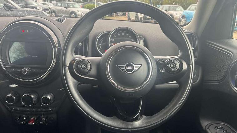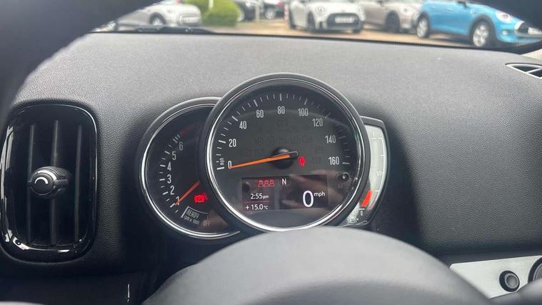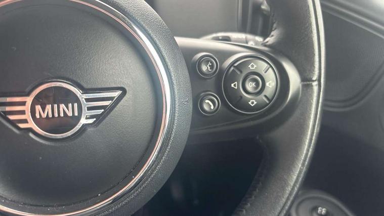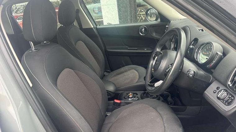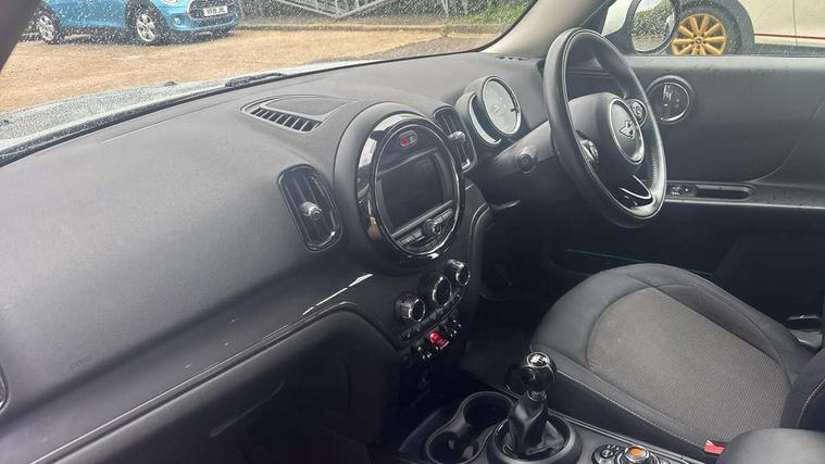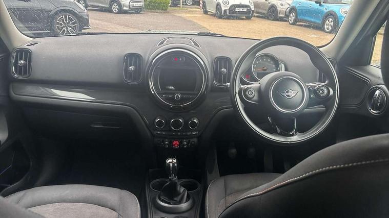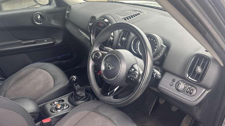 Excitement pack - Countryman, Navigation pack - Countryman, Alarm system with tilt sensor, monitoring doors, bonnet interior and tailgate, Auto drive away locking, Deadlocking function, Electronic vehicle immobiliser, Locking wheel bolts, Start/stop toggle with keyless go, FM tuner and DAB digital radio, 2 tone horn, 3 point seatbelts on all seats, 6 Airbags - front, side, head and seat belt tensioners, Anti-lock braking system (ABS), DSC - Dynamic Stability Control, Electronic handbrake, Front and rear disc brakes, Hill start assist, Tyre pressure monitoring system, Body colour fuel filler cap, Day time driving lights, Door sill strips, Dynamic brake lights, Electric windows, Heated rear window, Heated windscreen washer jets, Left exhaust tailpipe with chrome finisher, Model logo, Model logo on Tailgate, Radiator grille, Rain sensor with auto headlights, Rear fog lights, Rear window wiper, Side scuttle panel with integrated indicator, Split rear doors, Sun/heat protection glass, White indicator lenses, 12V Accessory socket in centre console, 360L luggage compartment capacity, 4 lashing eyes in luggage compartment, 40:20:40 split folding rear seats, Chrome interior highlights, Colour line - Carbon black, Cupholders, English handbook, Glove compartment, Headliner with grab handles and clothes hooks, Height and length steering column adjustment, Isofix rear child seat preparation, Leather gearshift lever and handbrake gaiters, LED reading lights, vanity mirror lights, front foot well light and spotlight on front seats, Manual air conditioning, Mechanical seat adjustment, driver seat height adjust, forward/back and front seats backrest, Multifunction steering wheel, Passenger seat height adjuster, Storage compartments in doors, Sunvisors with vanity mirrors, Tool kit, Active Guard incl speed limiting and lane departure functions with auto steering, and front collision warning with brake intervention, Automatic start/stop function with brake energy recuperation, Electro-mechanical speed dependant steering assistance, Instrument cluster, Mini E-call, MINI TeleServices, On board computer, Rear parking distance control, Double Vanos system, Fully variable valve control, High precision injection,