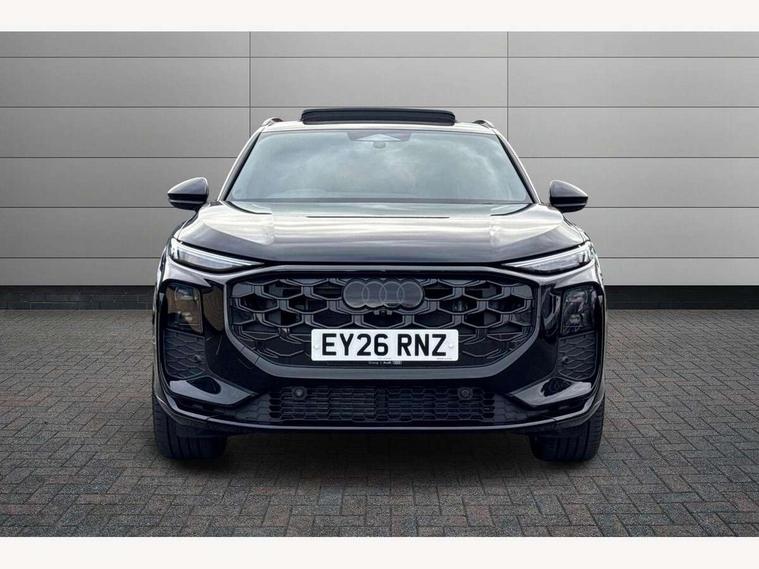 Adaptive cruise control, Audi connect emergency call and service, Audi connect remote and controls, Audi drive select (Balanced/Individual, effeciency, comfort and dynamic), Audi virtual cockpit plus - 11.9" display, Bluetooth interface, Camera based traffic sign recognition, Driver attention and fatigue monitor with driver monitoring, Emergency assist, Front cross traffic assist, Panoramic curved display with 12.8" MMI navigation plus and MMI touch, Park assist plus with parking system and 360 display, Phonebox light with wireless charging, Projection of a black ice warning, Reversing camera, Smartphone interface includes wireless Apple carplay/Android Auto, Start/stop system, Swerve assist and turn assist, Traffic sign based speed limiter, Voice control system with natural language interaction, Petrol Particulate Filter, 2 USB-C ports with charge and data functions, Audi sound system with 10 loudspeakers, subwoofer, 8 channel amplifier with 260 watts, DAB digital radio module, Acoustic glass for front door windows, Acoustic windscreen, Advanced dynamic light scenario of the coming home/leaving home function, All weather light, Aluminium window trim, Audi Q3 lettering on the B-pillars, Auto dimming door mirrors, Auto dimming rear view mirror, Automatic dynamic headlight range control, Contrasting finish in volcano grey, Cornering light, Digital daytime running lights with a choice of 4 digital light signatures, Digital matrix LED headlights, Dipped beam, Dynamic indicators, Electrically folding, adjustable and heated door mirrors with integrated LED side indicators and kerb view function for passenger side, Full paint finish, High resolution main beam, Illuminated door sills with aluminium inserts at the front with S logo, Intersection light, Lane light with side assist and direction indicator, LED third brake light, Loading sill protector in stainless steel, Manoeuvring light, Motorway light, Orientation light with lane departure warning, Position light, Privacy glass - dark tinted rear window, rear door and side windows, Projection light in the exterior mirrors - Projects a graphic element onto the ground, Q3 badging on the rear, Rain and light sensors, Rear side wing doors, Rear window, rear door windows and rear side windows in clear glass, Rear wiper, Sports bumpers, Turning light, 3 seat bench in 2nd row, 3 spoke heated flat top and bottomed leather multi function sport steering wheel with gear shift paddles and "S" badging, 3-zone deluxe automatic air conditioning, 4 way lumbar support for the front seats - electric with horizontal and vertical adjustment in four directions, Black cloth headlining, Front and rear floor mats, Front and rear headrests, Front centre armrest, Heated front seats, Height and reach adjustable steering wheel, Interior storage compartment, Luggage compartment lid, electrically opening and closing, Manual front seats with height adjustment, Rear seat bench plus with split folded 40:20:40, Single front passenger seat, Stainless steel pedals, Steering wheel operating unit, gloss black, Storage compartment in front centre console, Ambient lighting package pro - Q3, Black styling pack with black door mirrors - Q3, Driver assist pack - Q3, Dynamic pack - Q3, 3x3 point rear seatbelts, Convenience key with safelock, Driver and front passenger airbag with passenger airbag deactivation, Electromechanical parking brake, Electronic stabilisation control including ABS, ASR and EDL, First aid kit with warning triangle and high visibility vests, Front emergency brake assist, Hill hold assist, i - Size child seat mounting on the front passenger side and i - Size and top tether on the outer rear seats, Power operated child locks, Seatbelt monitoring, Tyre pressure loss indicator, Anti theft wheel bolts, Remote central locking, Thatcham approved category 1 anti theft alarm, Anthracite american whitewood natural inlay, Interior elements in dinamica microfibre, Interior trims in aluminium look, Tool kit and Jack,