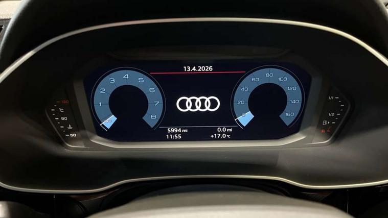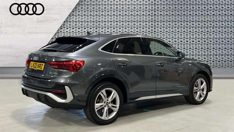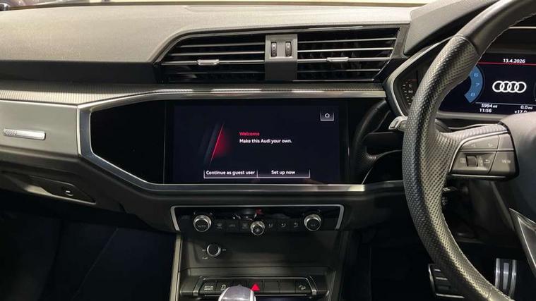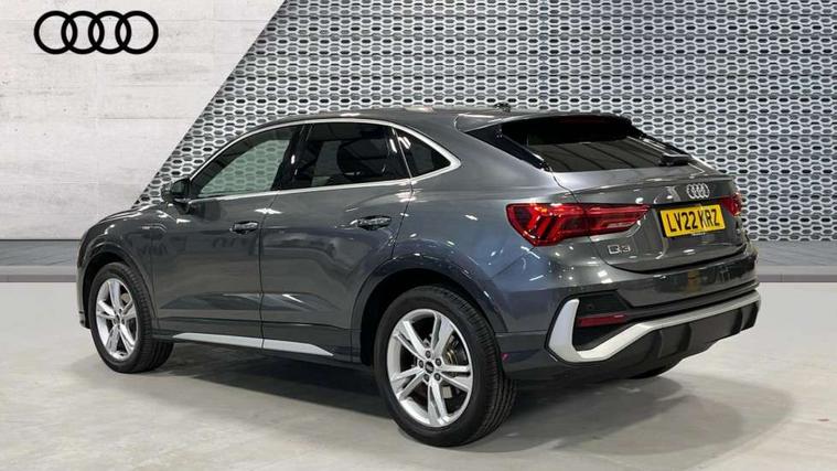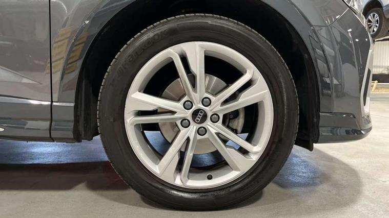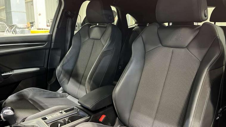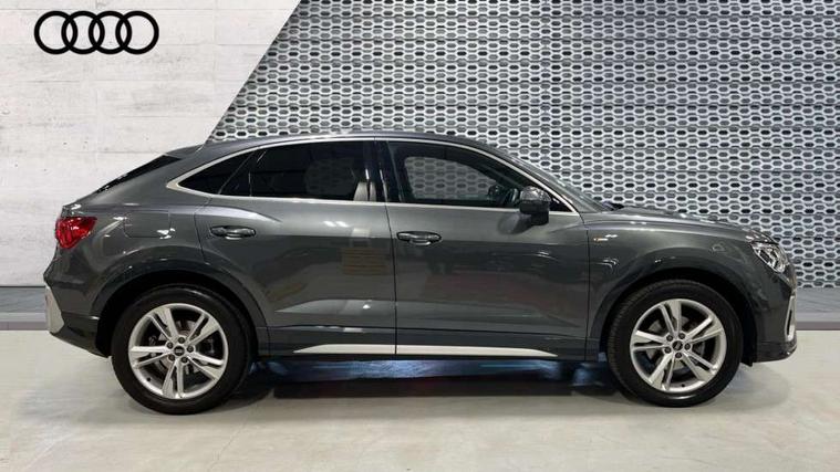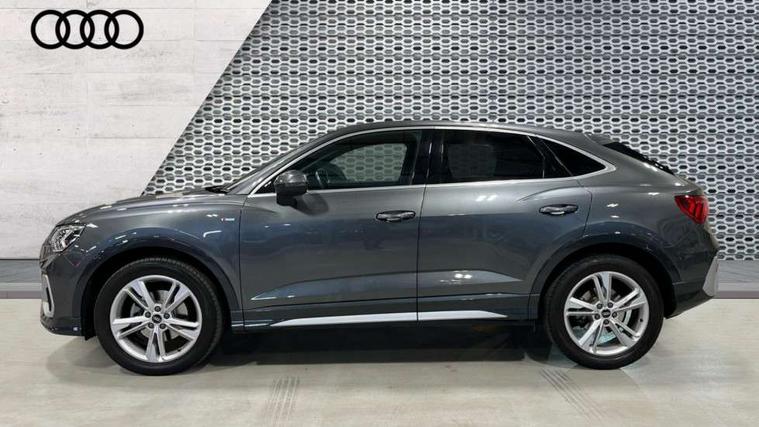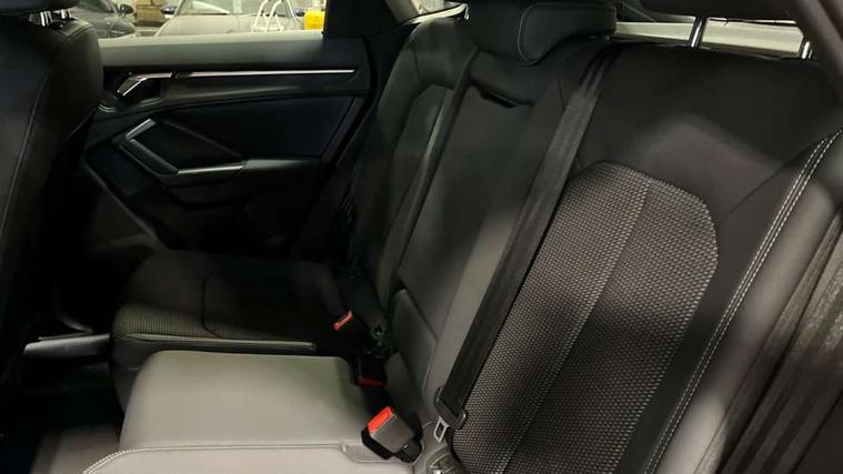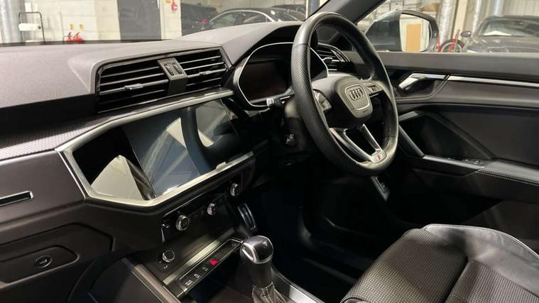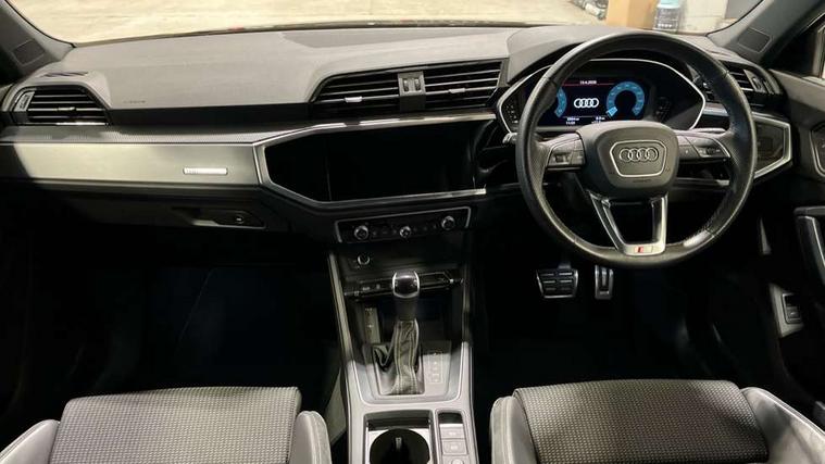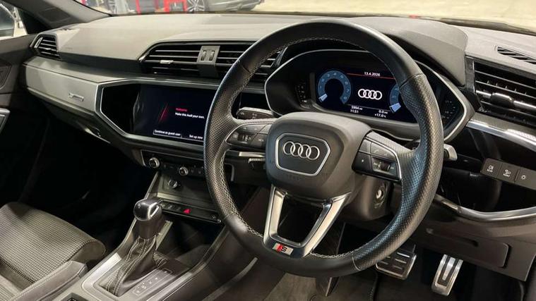Audi connect safety and service (e-call), Audi drive select, Audi lane departure warning, Audi Virtual Cockpit - 10.25" display, Bluetooth interface, Camera based traffic sign recognition, MMI Navigation Plus with high resolution 10.1 inch touchscreen colour display, Power operated tailgate, Progressive steering, Service interval indicator, Smartphone interface includes wireless Apple carplay/Android Auto, Start stop system with recuperation, Voice control system with natural language interaction, 48V Mild hybrid technology, Sports suspension, 2 USB-C ports with charge and data functions, 6 passive loudspeakers, DAB digital radio module, Acoustic windscreen, Aluminium window trim, Auto dimming frameless rear view mirror, Diffuser grille in grained matt black, Diffuser trim in selenite silver, Electrically folding, adjustable and heated door mirrors with integrated LED side indicators and kerb view function for passenger side, Front and rear electric windows, Front fog lights, Front side air inlets in selenite silver, Front underbody protection in manhattan grey paint finish, Grille surround in aluminium silver matt, High gloss black finish B and C pillars, LED headlights with LED daytime running lights, LED rear lights, LED third brake light, Privacy glass dark tinted rear and rear-side windows (from B-pillar backwards), Radiator grille in titanium black with inlay in matt aluminium silver, Rain and light sensors, Rear side wing doors, Rear underbody protection in matt black, Rear wiper, S line badges on front wings, Side skirt insert in matt Platinium grey, Variable front intermittent wipers, 12V socket in rear centre console, 3 seat bench in 2nd row, 40:20:40 folding with manual adjustment for 60:40 forwards/backwards position and backrest angle, Adjustable rear seat bench/backrest with centre armrest and cupholder, Black cloth headlining, Dual zone electronic climate control, Front and rear black floor mats with contrast stitching, Front and rear headrests, Front and rear roof module including reading lights, Front centre armrest, Glove compartment lighting, Height and reach adjustable steering wheel, Illuminated door sill trims with S logo, ISOFIX child seat mounting for front passenger with airbag deactivation and outer rear seat including top tether attachment point for outer rear seats, Luggage compartment light right in white, Luggage compartment sill protection in stainless steel, Manual front seats with height adjustment, Perforated leather gearknob, Single front passenger seat, Stainless steel pedals, Non smoking pack - Q3, 3x3 point rear seatbelts, 6 airbags - Driver, front passenger, curtain and side windows, Audi pre-sense front with pedestrain and cyclist recognition, Electromechanical parking brake, Electronic stabilisation control including ABS, ASR and EDL, Front seatbelt reminder, Hill descent control, Hill hold assist, Manual child lock in rear doors, Pre sense basic, Seatbelt monitoring, Tyre pressure warning, Warning triangle and first aid kit, Anti theft alarm, Anti theft wheel bolts, Immobiliser, Remote central locking, Black dashboard, Dark matt brushed aluminium inlay, Detail dashboard around MMI touch colour display in glass look, black with surround in aluminium look, Leatherette door armrest, Tool kit, Tyre repair kit,