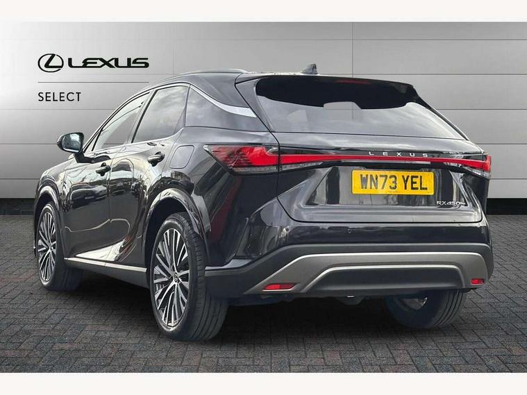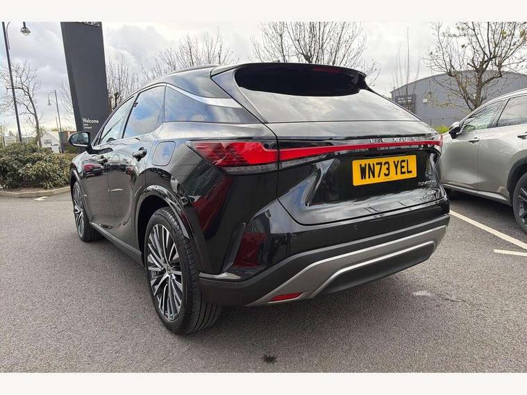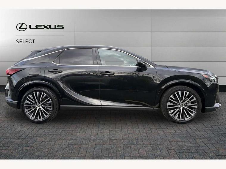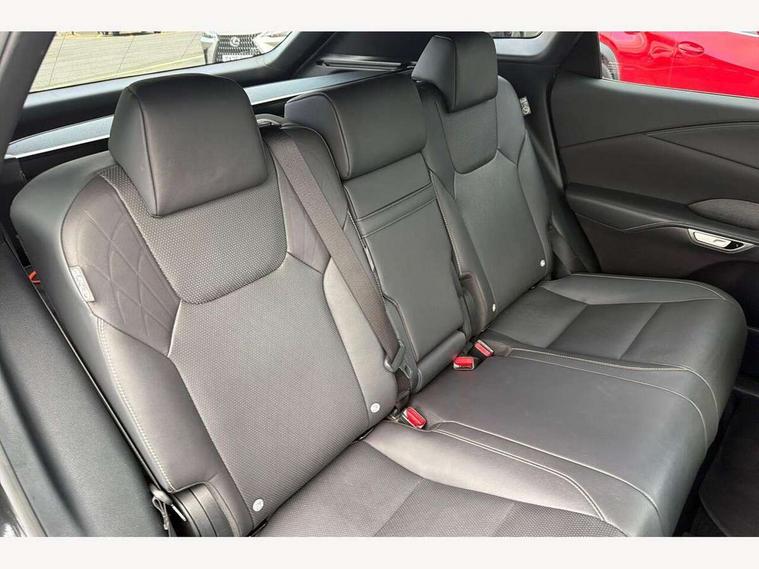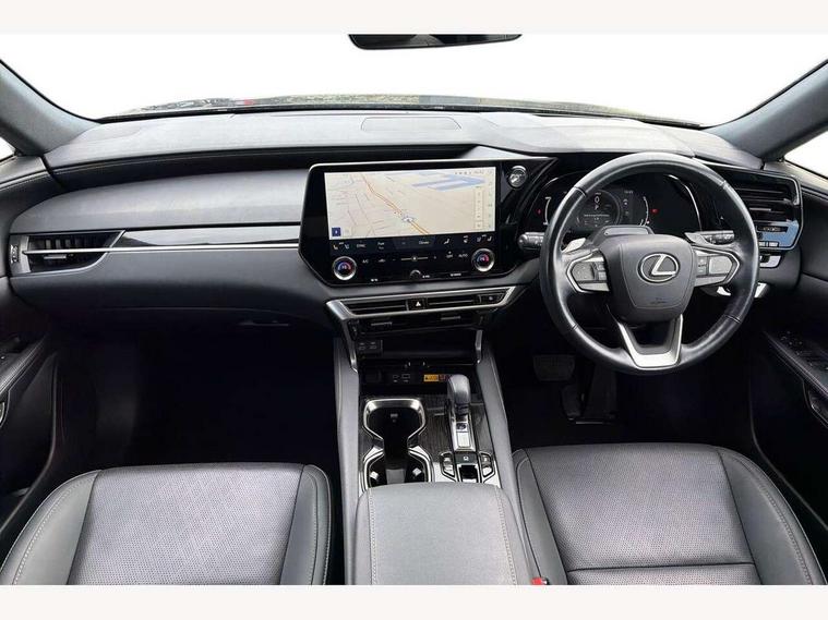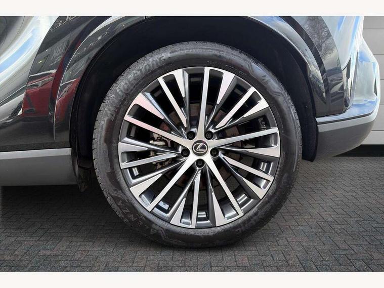 360 degree panoramic view monitor, Bluetooth mobile phone connectivity, BSM - Blind spot monitoring, Drive mode selector, Driver monitoring system, E-call, Head up Display, Intelligent clearance sonar, Lexus link connected services including over the air updates, MM21 Lexus link pro - 14" HD touchscreen with embedded and cloud based navigation, voice assistant, connected services, over the air and always online, Push button starter, Rear cross traffic alert, Speed sensitive electric power assisted steering, Ultrasonic parking sensors, Wireless Apple CarPlay and wired Android Auto, Wireless Smartphone charger, 3 pin to Type 2 10A charging cable, 6.6 kW onboard charger, E-Four Automatic transmission, Type 2 AC charging, Type 2 mode 3 32A charging cable, Vehicle Stability Control (VSC), 12 speakers audio, 5 USB ports (3 front USB C and 2 rear USB C), DAB Digital radio, 3 projector bi-beam LED headlight with auto high beam, Auto dimming rear view mirror, Auto headlights, Front and rear one touch power windows with voice command, Front and rear silver window frame mouldings, Glove and towel set, Headlight washers, Heated, auto-folding door mirrors, auto dimming with rerverse tilt, turn indicators and panoramic view sensors, L-shaped rear light bar, LED brake lights and rear lights with emergency brake signal, LED cornering headlights, LED daytime running lights, LED front and rear fog lights, LED Indicators, Power back door with kick sensor, Privacy UV glass, rear doors and tailgate, Rain sensor windscreen wipers, Rear side wing doors, Rear wash/wipe, Roof rails, Variable front intermittent wipers, 12V accessory port centre console and luggage compartment, 2 cup holders in centre console, 2 way electric lumbar support for driver and front passenger, 2 x Sunvisors with vanity mirror and lamp, 3 rear headrests, 3 seat bench in 2nd row, 40:20:40 split folding rear seats, 64 colour LED ambient interior illumination with 14 pre-set themed colour tones, 8 way electrically adjustable front seats, Charge cable bag, Driver seat memory function, Easy access driver seat, Easy access steering wheel, Front aluminium scuff plates, Front headrests, Front tray in front of centre console, Glovebox, Heated and ventilated front seats, Heated steering wheel, Leather steering wheel, Lever type shft control, Manually adjustable rear seats, Power adjustable steering wheel, Rear resin scuff plates, Single front passenger seat, Smooth leather upholstery, Textile carpet mats, Three zone climate control air conditioning system, Two way opening centre armrest with storage, 2 x Isofix child rear seat restraints, 3 point ELR front and rear seatbelts with pretensioners, ABS, Curtain shield airbags (front and rear), Driver and front passenger 2 stage airbag, Driver/front passenger side airbags, Drivers knee airbag, E-Latch with safe exit assist, EBD + Brake Assist, Electronic parking brake, Electronically controlled braking, Extended lexus safety system+ 3 - lane change assist, front cross traffic assist, Front and rear left/right force limiters and tension reducers, Front and rear left/right seatbelt reminders, Front centre airbag, Hill assist control, Lexus safety system+ 3 - dynamic radar cruise control, pre collision system day and night, lane tracing assist, road sign, Manual child lock in rear doors, Passenger airbag cut-off device, Traction control, Tyre pressure warning, 2 x remote key fobs, Customisable auto door lock, Locking wheel nuts, Motion sensor key, Smart keyless entry, Thatcham category 1 alarm + immobiliser, VIN etching, Black Inlay, 21" Alloy wheels,