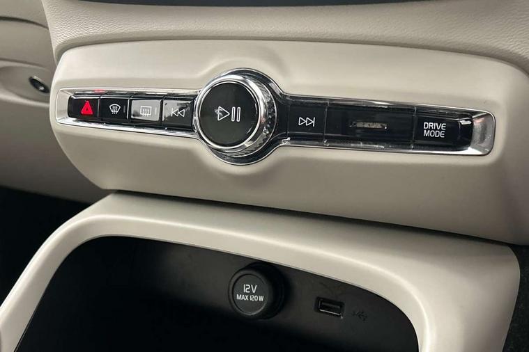 12.3" Active TFT crystal driver's instrument display, 9" centre console portrait touch screen, Adjustable steering wheel force, Bluetooth hands free telephone kit, Drive mode selector, Lane keep assist with driver alert control, Oncoming Lane Mitigation, Sensus navigation with European mapping and traffic information, Speed limiter, Speed sensitive steering, Voice activated control for key functions, Volvo on call, Dynamic chassis, DAB Digital radio, Steering wheel mounted remote controls, Adaptive brake lights with high level LED brake lights, Auto dimming interior mirror, Automatic headlamp levelling, Chrome window surround, Colour coordinated auto folding and heated power door mirrors, Dual exhaust pipes, Front aluminium tread plates, Front and rear electric windows, High gloss black front grille with chrome inserts, High gloss black sensus surround deco, High Gloss silver front and rear skid plate, Home safe and approach lighting, LED front fog lights, LED Headlights + Active high beam incorporating daytime running lights, Rain sensor with automatic windscreen wiper activation, Rear side wing doors, Rear wiper, Roof antenna, Roof spoiler, Silver roof rails, Visible VIN plate, 12V socket in front tunnel console and luggage compartment, 2 zone electronic climate control and rear air vent, 3 seat bench in 2nd row, 3 spoke leather steering wheel with chrome trim, 60/40 split folding rear seat, Ambient front door and instrumental panel lighting, Bright metal luggage threshold, Centre console cupholders and storage, Driver's side lower dashboard credit card storage compartment, Front door pocket and front cupholder illumination, Front footwell illumination, Front headrests, Front reading light and theatre lighting, Glovebox bag hook, Height/reach adjustable steering column, Illuminated glovebox, Illuminated luggage compartment, Illuminated tailgate, Illuminated vanity mirrors, Isofix attachments on outer rear seats, Key integrated remote, Leather faced upholstery, Leather gearknob, Load protection net, Luxury floor mats, Multi directional lumbar support, Multicolour theatre lights, Rear armrest / integral cup holders / storage tray, Rear coat hook, Rear reading and courtesy lights, Single front passenger seat, Underfloor cargo storage, 3x3 point rear seatbelts, City safety includes pedestrian, cyclist and large animal detection and front collision warning with full auto brake, Drivers knee airbag, Dual stage driver/passenger airbags, Electronic parking brake with auto hold, First aid kit, Front and outer rear seatbelt reminder and pretensioners, Front seats SIPS airbags, Hill descent control, Hill start assist, Inflatable curtain, Passenger airbag cut-off device, Road sign information display, Run off Road Mitigation, Run off Road Protection, SIPS (Side Impact Protection System), Slippery road and hazard light alert, Stability and Traction Control with Spin control, Engine Drag Control and Corner Traction Control, Tyre pressure monitoring system, Vehicle deceleration control with Anti-lock Brake System, Electronic Brake Distribution and Emergency Brake Assist, Warning triangle, WHIPS whiplash protection system - front, Anti-theft alarm including immobiliser/volume sensor + level sensor, Care key with user defined top speed, Key integrated remote control central locking + fuel flap with deadlocking system and auto open/close power windows, Locking wheel nuts, Private locking for tailgate, Driftwood inlays,