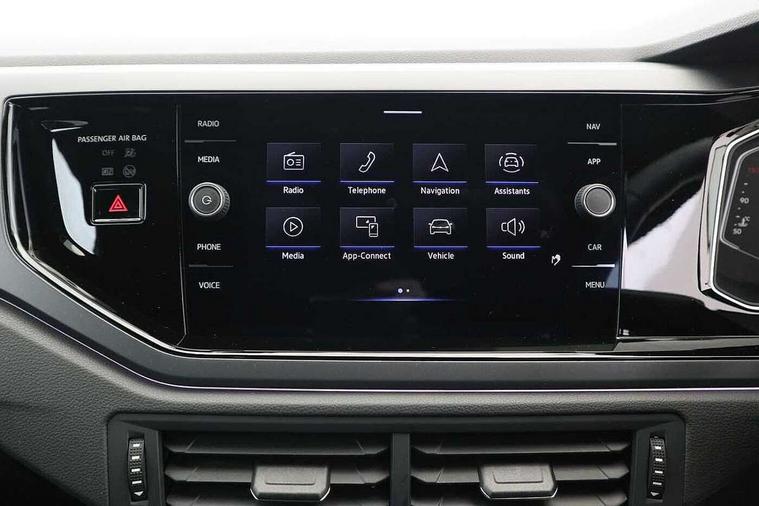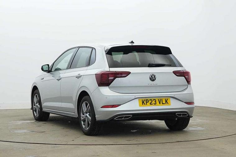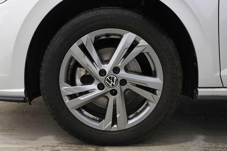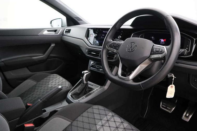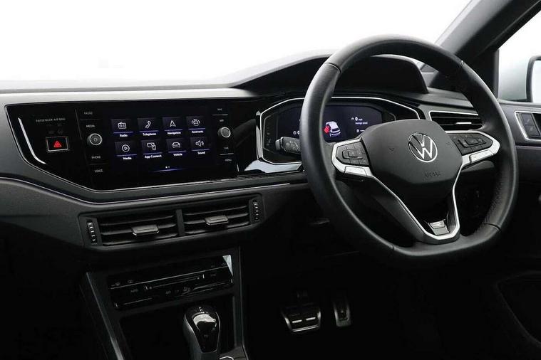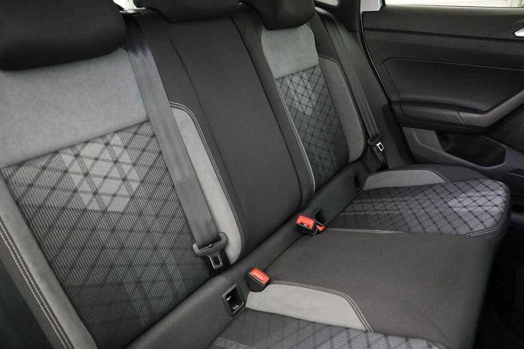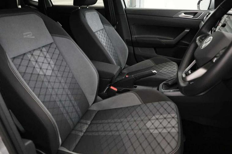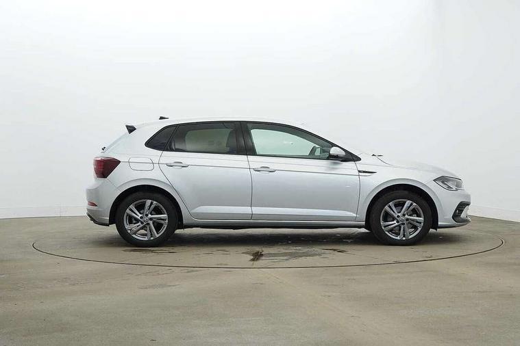 Adaptive cruise control with follow-to-stop and speed limiter, Bluetooth mobile phone interface, Digital Cockpit Pro with 10.25" Display, Driver alert system, Dynamic road sign display, Emergency call service, Power assisted speed sensitive steering, Preparation for We connect and We connect plus, Speedo and rev counter, electronic odometer, trip, service interval display and fuel gauge, Standard rear axle, Travel Assist - Lane keeping system and traffic jam assist, Travel assist including emergency assist, Trip computer, Warning signal and warning light for front and rear seatbelts not fastened, Washer fluid level indicator, Wireless app connect, Front wheel drive, Rear shock absorpion, Start-stop system with battery regeneration (recuperation - energy recovery during braking), DAB Digital radio, Diversity antenna for FM reception, Front and rear 6 speakers, Body colour bumpers, Body colour door handles, Electric front windows, Front scuff plates with R-Line logo, Heat insulating darkened glass in side and rear windows, Heat insulating glass windscreen, Power folding adjustable/heated exterior mirrors and front passenger exterior mirror lowering function, Rear electric windows, Rear fog light, Rear side wing doors, Rear windscreen washer and wiper with interval delay, Third brake light, 12V power socket in centre console, 2 USB-C ports in the front, 2 USB-C charging sockets on the center console in the rear, 3 rear head restraints, 60/40 split folding rear seat and rear seat bench not split, Air care climatronic air conditoning system with active combination filter and 2-zone temperature control, Black roof lining, Chrome plated radiator grille inserts, air vent surrounds and light switch surrounds, Door and side trim panel, Driver and front passenger seat height adjustment, Driver/passenger sunvisors with illuminated vanity mirrors, Front + rear carpet mats in recycled material, Front centre armrest, Front footwell illumination, Front seat backrest storage pockets, Front sports comfort seats, Handbrake lever handle in leather, Headliner in recycled material, Isofix child seat preparation easy-fit (for two outer rear seats, and front passenger seat) compatible with I-size, Karoso artvelours cloth upholstery, Leather trimmed gear knob, LED interior light with switch off delay and dimmer, 2 reading lights front and rear, Luggage compartment cover, Luggage compartment floor, Luggage compartment lighting, Lumbar adjustment for front seats, Single front passenger seat, Stainless steel pedals, Standard pedal cluster, Three spoke leather wrapped multifunction steering wheel with shifting paddles, Light and sight pack - Polo R-Line/Black Edition, 3 point height adj front seatbelts + pretensioners, 3x3 point rear seatbelts, ABS, Driver and front passenger airbag with front passenger airbag deactivation, Drivers and front passengers safety optimised head restraints, ESC (Electronic stability control) + EDL (Electronic Differntial lock) and ASR (Traction control), Extended and predictive pedestrian/ cyclist protection, Front curtain and side airbags with center airbag, Front/rear disc brakes, Hill hold control, Manual child lock in rear doors, Single tone horn, Tyre pressure loss indicator, Alarm with interior protection, Anti-theft alarm system with interior monitoring, backup horn, and towing protection, Anti-theft wheel bolts, Electronic engine immobiliser, Chrome applications on rotary light, mirror adjustment, window regulator switches, outlet with frame in black, Dark grey anodised matt decorative inserts in dash and front door panels, Low rolling resistance tyres,