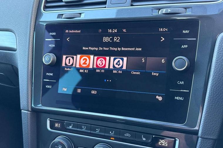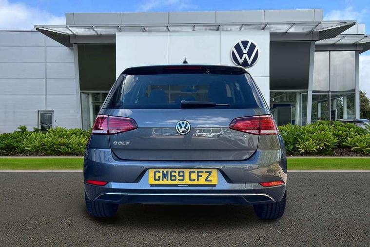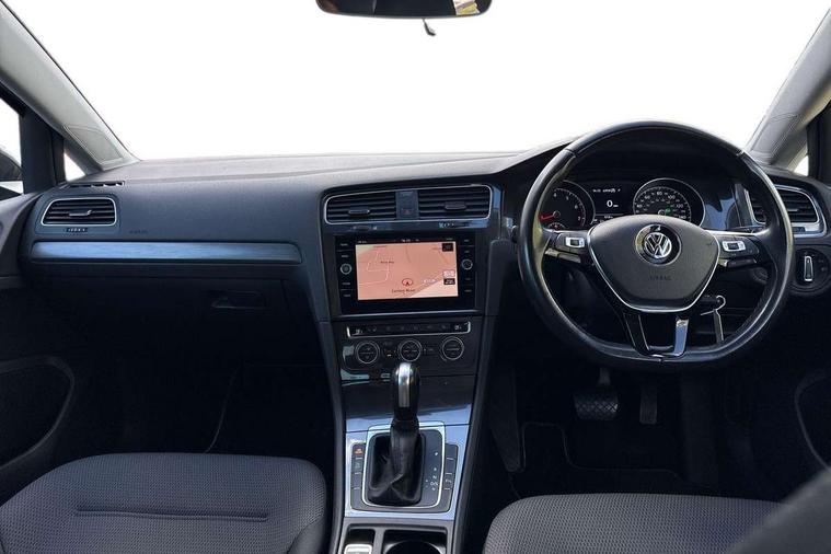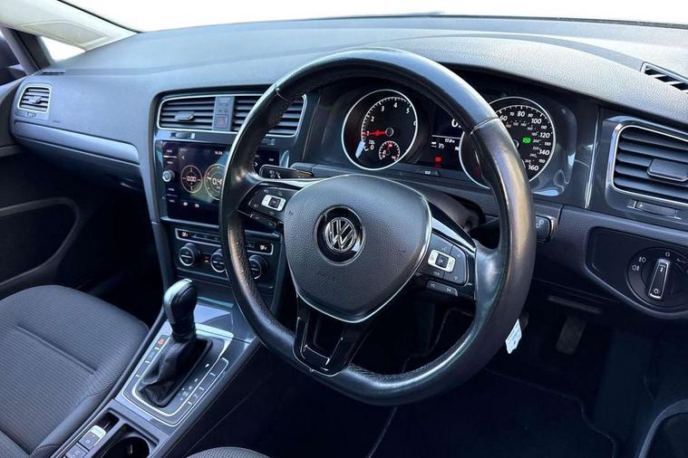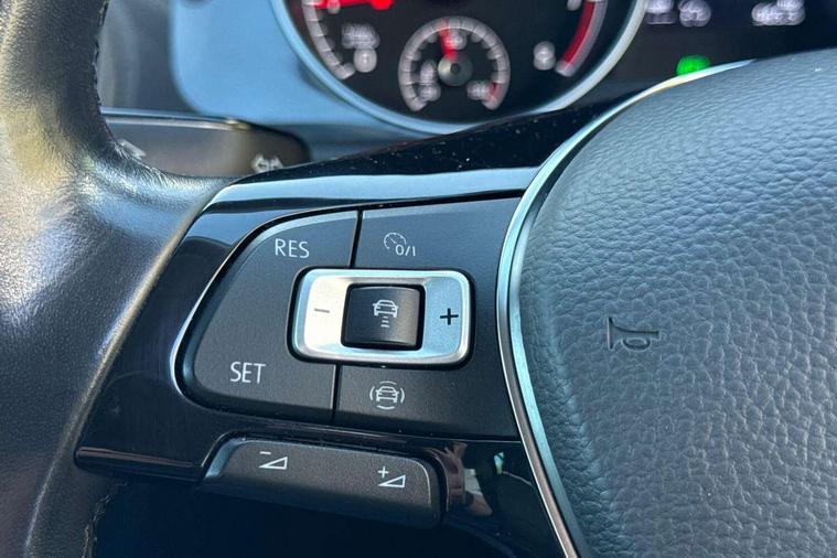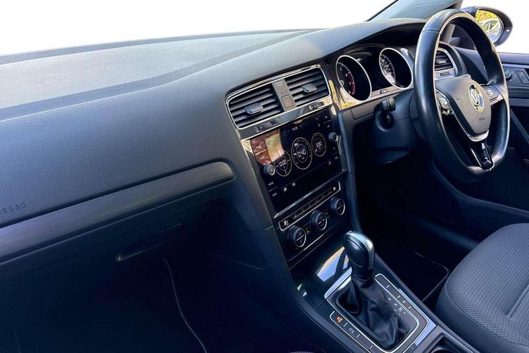 'Lights On' Reminder warning buzzer, ACC - Adaptive cruise control with front assist, forward collision warning, distance monitoring, city emergency brake and speed limiter, Bluetooth telephone and audio connection for compatible devices, Brake pad wear indicator warning light, Driver alert system, Driving Mode Selection with four preset modes - Eco, normal, sport or individual modes, Multifunction computer with visual gear change recommendation for fuel consumption, Power assisted speed sensitive electro-mechanical steering, Push tank flap, Speed limit display, Speedo, rev counter, electronic odometer, trip, service interval display, exterior temperature and fuel gauge, Stop/start system, Think blue trainer driver tips and journey analysis, Warning buzzer and light for front seatbelts unfastened, Battery regeneration during braking, XDS electronic differential lock, Composition media system, DAB Digital radio receiver, Driver Personalisation profile selection, MP3/WMA compatability, Multi device interface (MDI) via USB connection, Premium USB cable in choice of either Apple or Android smartphone compatibility, SMS Functionality, Title and cover art display, USB and SD card connectivity, Volkswagen media control, Black front air intake and radiator grille with chrome insert, Black rear diffuser, Body colour bumpers, Body colour door handles, Body colour door mirrors with integrated indicators, Dusk sensor + automatic driving lights, Electric front windows, Electric rear windows, Electrically adjustable and heated door mirrors, Fully galvanised body, Heated rear windscreen, High level 3rd brake light incorporating LED Technology, LED front fog lights with static cornering light function, Range adjustable headlights via infotainment system with LED daytime running lights, Rear fog lamp, Rear number plate lights incorporating LED technology, Rear tinted glass 65% light absorbing from B pillar backwards, Rear window aerial, Rear window wash/wipe with intermittent wipe, Reflectors in all doors, Tailgate with integrated rear roof spoiler, Windscreen wipers/ intermittent wipe + 4 position delay, 12V socket in luggage compartment, 3 rear headrests, 4 load lashing points in luggage compartment, 60/40 split folding rear seat backrest, Bag hook in luggage compartment x 2, Climate control - 2 zone electronic air conditioning with automatic air recirculation and allergy filter, Cooled glovebox, Cover for storage compartment in centre, Dust/pollen filter, Front and rear reading lights X 2, Front centre armrest with storage compartment and two rear air vents, Front seat back storage pockets, Grab handles front x 2, rear x 2 with integrated coat hooks, Height and reach adjustable steering wheel, Illuminated vanity mirrors, Instrument lighting white adjustable panel illumination, Interior light delay, Isofix preparation for 2 rear child seats, Load through provision with rear centre armrest and cupholders x2, Luggage compartment lighting, Overhead storage box, Pearl grey headlining, Storage box in luggage compartment, Storage compartment in roof console with cover, Storage compartments in centre console, Storage compartments in front doors, Storage compartments in rear doors, Stowable luggage compartment cover, Sun visors, Variable boot floor, height adjustable and removable, Convenience Pack - Golf, Mirror pack - Golf, Winter pack - Golf, 3 rear three point seatbelts, Airbags - Driver's and front passenger's, curtain airbag, Driver's knee, front side impact and passenger's airbag deactivation switch, Anti-lock Braking System (ABS) with Hydraulic Brake Assist (HBA), Automatic post collision braking system, Child locks on rear doors, Driver/Passenger optimised head restraints, Electronic parking brake with auto hold, Electronic stability control (ESC) including Electronic differential lock (EDL) and ASR (Traction control) with deactivation via infotainment system, Front ventilated disc brakes and rear disc brakes, Pre crash preventive occupant protection, Three point height adjustable front seatbelts with tensioners, Tyre pressure loss indicator, Alarm with interior protection and deactivation via infotainment system, Electronic engine immobiliser, Brushed dark silver decorative inserts in dash and door panels, Chrome plated air vent surround, Chrome-plated light switch surround, Polar night black decorative inserts in centre console, Steel space saver spare wheel,