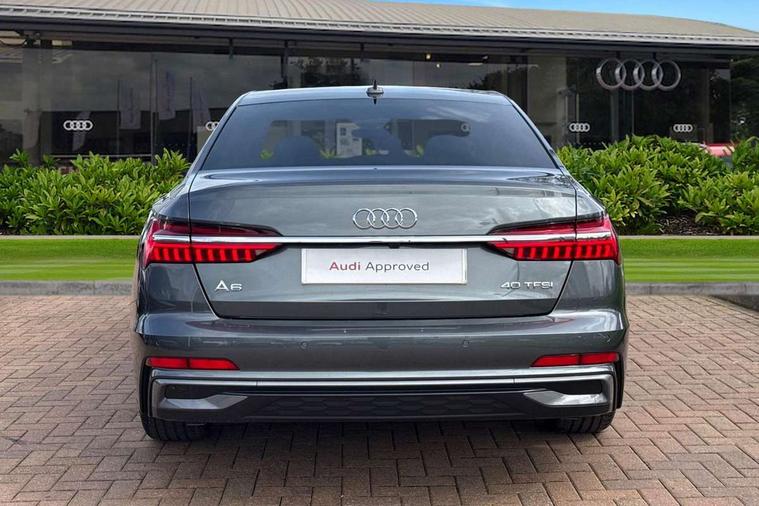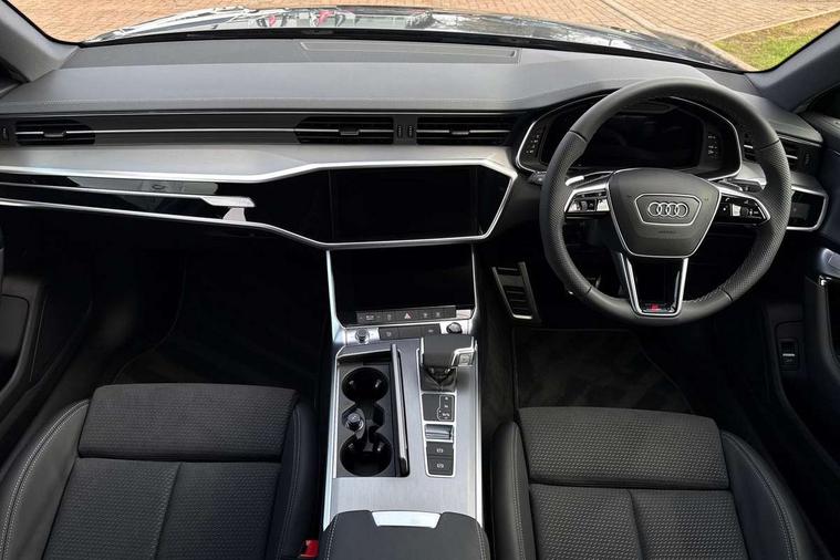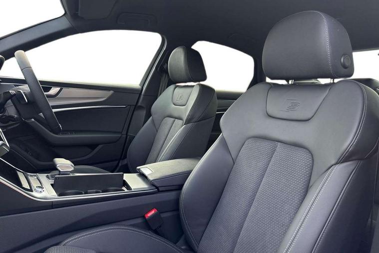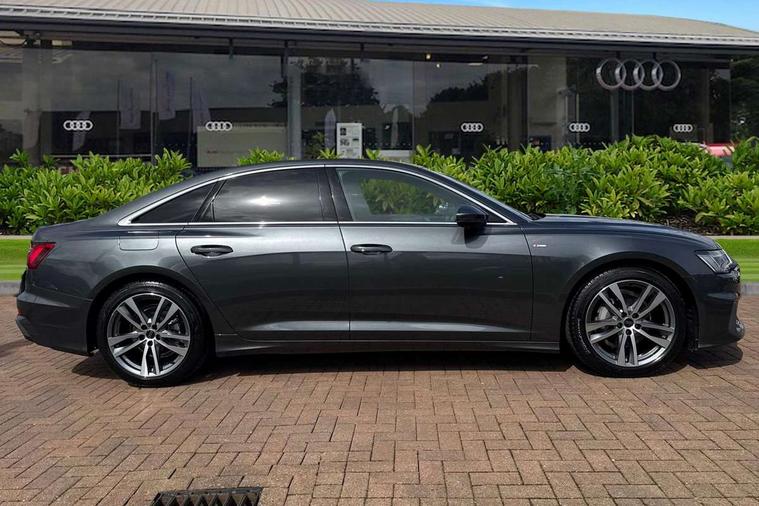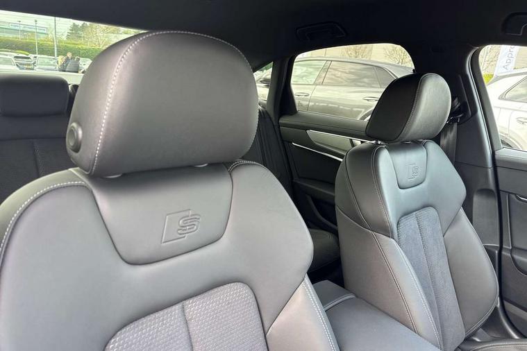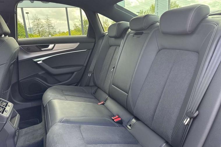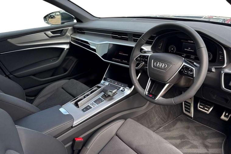 Audi connect safety and service (e-call), Audi connect with Amazon Alexa Integration, Audi drive select, Audi parking system plus - acoustic and visual park assist system for front and rear, Audi virtual cockpit, Automatic start/stop system with coasting functionality, Bluetooth interface, Camera based traffic sign recognition, Electric boot lid release, Lane departure warning system, MMI navigation plus with 10.1" and 8.6" touch screens, Progressive steering, Rear view camera, Service interval indicator, Smartphone interface includes wireless Apple carplay/Android Auto, Voice control system, Sports suspension, Audi front music interface, Audi sound system, Auxiliary input socket, DAB Digital radio, USB connection, Body coloured door mirrors, Electric front/rear windows, Electrically adjustable heated and folding + automatically dimming exterior mirrors with memory function, Frameless auto dimming interior rear view mirror, Front intermittent wipers, Heat insulating darkened glass in side and rear windows, Heat insulating glass in windshield, LED rear lights with dynamic indicators, LED signature front daytime running light, LED third brake light, Matrix LED headlights, Matt black rear diffuser with diffuser strip and tailpipes in chrome, Matt black side air intake grille with inlay in matt aluminium, Privacy glass, Radiator grille in anthracite black matt, single frame in chrome and horizontal struts in matt aluminium silver, Rain and light sensors, Rear boot, Rear side wing doors, 2 zone deluxe electronic climate control, 3 spoke high multi-function perforated leather steering wheel with contrast stitching and shift paddles, 40/20/40 split folding 3 rear seat bench in 3 parts with rear centre armrest, Audi phone box light, Black cloth headlining, Electrically adjustable front seats including seat height, fore/aft position, backrest angle and 4-way lumbar with memory for driver's seat, Front and rear floor mats, Front centre armrest, Front head restraints, Heated front seats, Height/reach adjust steering wheel, Illuminated door sill trims with S logo, Illuminated sun visors with vanity mirrors, Leather gear knob, Rear headrests, Single front passenger seat, Stainless steel pedals and foot rest, Tool kit and car jack, LED Interior Ambient Lighting Pack - A6, Non smoking pack - A6, S line exterior style pack - A6, 3 point seatbelts on all seats, Airbags - Front side, front and rear including head, Audi pre-sense front, EBD - Electronic brakeforce distribution, Electromechanical parking brake, Electronic Stability Control (ESC) including ABS, ASR and EDL, Extended pedestrian protection measures, ISOFIX child seat mounting for front passenger seat and ISOFIX child seat mounting with Top Tether for outer rear seats, Manual child proof rear door locks, Seatbelt monitoring, Tyre pressure warning light, Warning triangle and first aid kit, Anti theft alarm with tow away protection, Anti-theft wheel bolts and wheel loosening detection, Immobiliser, Keyless Go, Remote central locking, Matt brushed aluminium inlays,