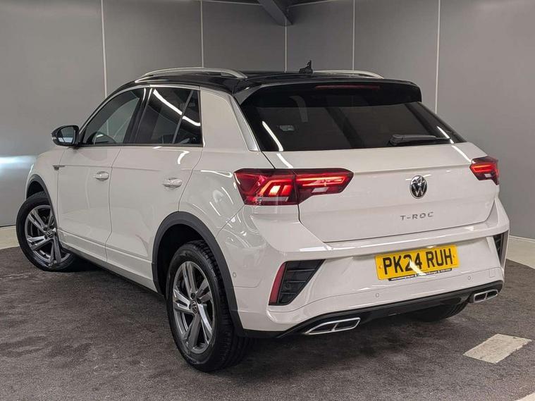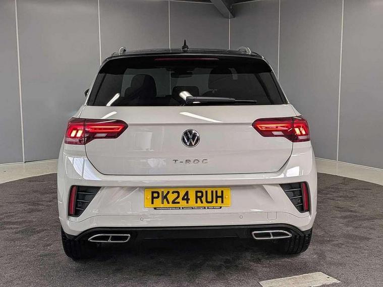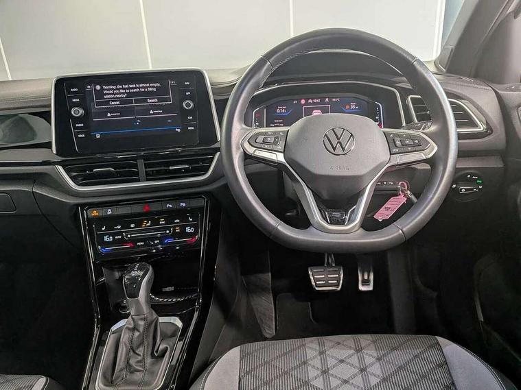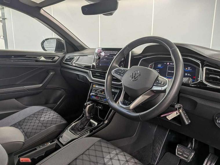 10.25" Digital cockpit pro, Advanced driver attention and drowsiness monitor, Bluetooth mobile phone interface, Emergency call service, Lane keeping system Lane Assist, Modified key software - reduce switch off time for key status change to Long no motion, Online services, Park assist including front and rear parking sensors, Service interval indicator, Tailgate/trunk lid release from outside, Think blue trainer driver tips and journey analysis, Warning sound and light for front seatbelts unfastened, Wireless app connect, Battery regeneration during braking, Start/stop function with battery regeneration, Diversity antenna for FM reception, Music playback - MP3, WMA and AAC files, Premium USB cable in choice of either Apple or Android smartphone compatibility, SD card slot, Simultaneous pairing of 2 compatible mobile devices, Title and cover art display, We Connect and We Connect Plus functionality, 3rd brake light, Auto dimming interior rear view mirror, Automatic hazard lights activation under emergency braking, Automatic headlight control with LED separate daytime running lights with coming/leaving home function, Electrically adjustable and heated door mirrors, Extended roof spoiler, Exterior mirrors aspherical on driver side, convex on front passenger side, External USB type C socket and charging sockets, Front windscreen wiper with intermittent wipe and 4 position delay, Heated rear window, LED rear combination lamps, LED rear number plate lights, Power windows with comfort operation and circuit breaker, R-Line design body coloured bumpers, Rain sensor, Rear exhaust tailpipe, Rear fog light on one side and reversing lights on both sides, Rear side wing doors, Rear wash/wipe with intermittent wipe setting, Remote electrically foldable door mirrors, puddle lights and reverse activated passenger's door mirror, 12V power socket in centre console, 3 rear head restraints, 3 seat bench in 2nd row, 4 load lashing points in luggage compartment, Air care climatronic air conditoning system with active combination filter and 2-zone temperature control, Black roof lining, Chrome plated radiator grille inserts, air vent surrounds and light switch surrounds, Door and side trim panel with leatherette insert, Front + rear carpet mats, Front centre armrest, Front cupholders x 2, Front footwell illumination, Front reading light, Front scuff plates with R Line logo, Front seat back storage pockets, Glove compartment door with light, Instrument lighting, white adjustable panel illumination, Interior ambient lighting and surround lighting, Interior light delay, Isofix child seat preparation, Leather gearshift handle, Load-through provision with cup holder when folded down ('Unsplit rear seat bench, split folding backrest, with centre armrest), Luggage compartment lighting, Single front passenger seat, Stainless steel pedals, Storage compartment in left and right luggage area, Storage compartment in rear doors, Storage compartments in driver and front passenger doors, Sunvisors with illuminated vanity mirrors, Variable boot floor, height adjustable and removable, Driver assistance pack without proactive passenger protection - T-Roc, 3 point height adj front seatbelts + pretensioners, 3 point seatbelts in outer rear with ECE label, ABS, Child locks on rear doors, City emergency braking and pedestrian monitoring, Driver and front passenger airbag with front passenger airbag deactivation, Driver and front passenger safety-optimised head restraints, Drivers seatbelt reminder, Electronic parking brake, Electronic Stability Control (ESC) inc EDL (Electronic Differential Lock) and ASR (Traction Control), Front and rear passengers curtain airbag system including front side airbags, Hill start assist, Predictive pedestrian protection, Rear disc brakes, Two tone horn, Tyre pressure loss indicator, Volkswagen roadside assistance, Anti-theft alarm system with interior monitoring, backup horn, and towing protection, Remote central locking with SAFELOCK, radio remote control with 2 remote control folding keys, Trims for alloy wheels,