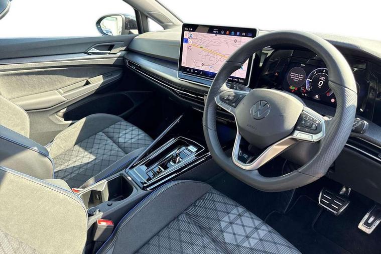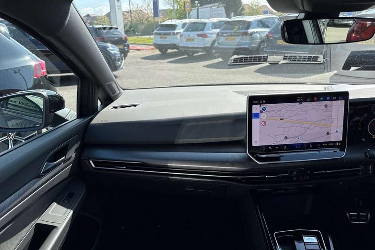 Activated carbon canister, Adaptive cruise control (ACC), Advanced driver attention and drowsiness monitor, Dynamic road sign display, Dynamic steering, E-Sim card for online connectivity, eCall emergency call system, Multi-color Digital cockpit pro, selection of different info profile possible, Multifunction front facing camera for distance control, Navigation system, Oncoming vehicle braking when turning including swerve support, Speed limiter, Speedo, rev counter, electronic odometer, trip, service interval display, exterior temperature and fuel gauge, Traffic jam assist, Voice enhancer and voice control, Warning signal and warning light for front and rear seatbelts not fastened, We connect plus preparation, We connect preparation, Wireless app connect, Diesel particulate filter, Start-stop system with battery regeneration (recuperation - energy recovery during braking), XDS electronic differential lock for improved traction and handling, 2 USB C ports in front, 2 USB charging sockets on the centre console in the rear charging capacity upto 45W, Digital radio reception (DAB), Diversity antenna for FM reception, Gaming platform via car app, Infotainment system with 12.9" display, Mobile phone interface with inductive charging feature, 3rd brake light, Auto dimming rear view mirror, Automatic headlamp activation with Coming home and Leaving home feature, Body colored bumpers in R-Line style, Body colour door handles, Exterior ambient lighting, Exterior mirrors convex on the left and aspherical on the right, Front and rear electric windows, Heat insulating windshield made of laminated glass, LED separate daytime running light, Rain sensor, Rear exhaust tailpipe, Rear fog light on one side and reversing lights on both sides, Rear side wing doors, Rear windscreen washer and wiper with interval delay, Remote electrically foldable door mirrors, puddle lights and reverse activated passenger's door mirror, Volkswagen logo in front, illuminated lighting animation with wake up/goodbye scenario and illuminated door handles, Welcome light with surround lighting, 12V socket in front centre console, 12V socket in luggage compartment, 3 rear head restraints, 3 seat bench in 2nd row, Ambient lighting with 30 colour including LED light unit in front footwell with selectable light colour, Black roof lining, Brushed stainless steel pedals, Chrome plated radiator grille inserts, air vent surrounds and light switch surrounds, Front + rear black carpet mats, Front centre armrest, Integrated front head restraints, ISOFIX anchors for child seats on outer rear bench seats and on front passanger seat compatible for i-Size, Luggage compartment lighting, Plastic gear knob, Premium sports seats in front, Rear cupholder and loadthough, Single front passenger seat, Split folding backrest with centre armrest and unsplit rear seat bench, Sun visors with illuminated vanity mirrors, Titanium black instrument panel, Black exterior Styling package with Matrix LED headlights - Golf, 3 point height adj front seatbelts + pretensioners, 3 rear three point seatbelts, ABS, Autonomous emergency braking front assist with pedestrian and cyclist monitoring, Child locks on rear doors, Driver and front passenger airbag with front passenger airbag deactivation, Electronic parking brake with auto hold, ESC (Electronic Stability Control), Extended pedestrian protection measures, Hill start assist, Rear disc brakes, Two tone horn, Tyre pressure loss indicator, Volkswagen roadside assistance, Anti theft wheel bolts, Preparation for alcohol interlock, Decorative inserts carbon grey for dashboard and front door trim panels, 18" Leeds alloy wheels,