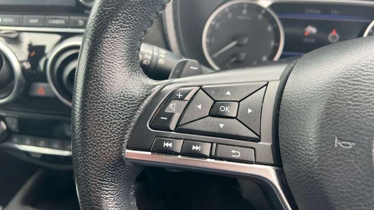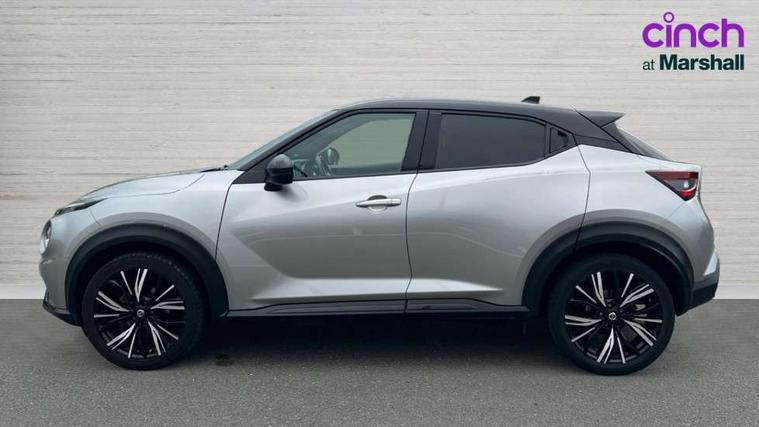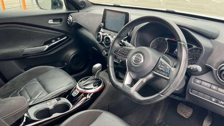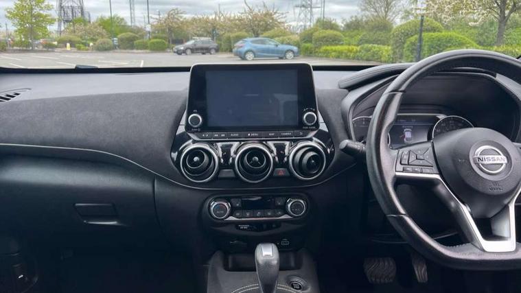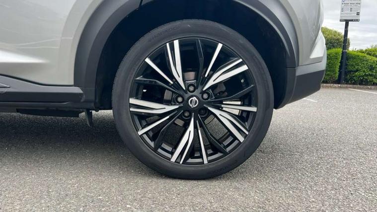 7" full colour TFT screen combimeter, 8" infotainment colour display with touch screen, Apple CarPlay and Google Android auto, Drive modes select (Eco, normal and sport), Emergency and breakdown call, Front parking sensor, Idle start/stop system, Intelligent lane intervention, Lane departure warning system, Nissan connect nav with TomTom traffic, Nissan connect services and Wifi connection, Outside temperature sensor, Power Steering, Rear parking sensor, Traffic sign recognition, Trip computer, Gasoline particulate filter, Bluetooth system, USB, Aux-in and 12V socket, Bose personal plus audio system with 8 speakers(4 speakers and 2 headrest speaker for driver and passenger seats), Bose personal sound stage control, DAB Digital radio, Front lower bumper painted in silver finisher, Rear console USB port, Auto dimming interior rear view mirror, Automatic hazard signal with emergency stop signal, Body colour bumpers, Body colour door handles, Electrically adjustable door mirrors with integrated indicators, Follow me home headlights, Front and rear electric window with one touch driver and passenger window, Heated and auto folding door mirrors, High beam assist, LED daytime running lights, LED front fog lights, LED headlamps, LED rear fog lamp, LED rear lamps, Rain sensor windscreen wipers, Rear privacy glass, Rear spoiler, Rear wiper, Thermaclear heated windscreen, Three blink turn signal, 3 height adjustable rear headrests, 60/40 split folding rear seat, Automatic climate control, Card holder on driver sunvisor, Door ambient lighting, Driver and passenger sliding and reclining seats, Driver seat back pocket, Driver side rear coat hanger, Driver/passenger sunvisors and illuminated vanity mirrors, Front and rear cabin lights, Front armrest, Front door pockets with bottle holders, Front head restraints, Front passenger isofix child seat anchorage point, Front/rear passenger grab handles, Gear console ambient circle lighting, Grey synthetic leather kneepad, Heated front seats, Height adjustable driver's seat, Height adjustable passenger seat, Internal chrome door handles, Leather gearshift knob, Leather steering wheel, Luggage board, Luggage space lighting, Monoform sporty seats, Multifunction steering wheel, Passenger seat back pocket, Rear door bottle holders, Steering wheel mounted gearshift paddles, Telescopic steering wheel adjustment, Two cupholders in front centre console, Two rear isofix child seat anchorage points with top tether, Voice recognition switch on steering wheel, Welcome light and console tray ambient lighting, ProPilot pack - Juke, ABS with EBD and brake assist, Active ride control, Active Trace Control, Driver and passenger airbags, Driver and passenger side airbags, Electric handbrake with auto hold function, Electronic Stability Programme (ESP), Front and rear curtain airbags, Height adjustable seatbelts, Hill start assist, Intelligent emergency braking with pedestrian and cyclist recognition, Seatbelt reminder for driver/front passenger and rear seats, Single tone horn, Three 3 point rear seatbelts, Traction control, Tyre pressure monitoring system, VDC Dynamic Vehicle Control, Ventilated rear brake discs, Alarm, Immobiliser, Intelligent Key with push button starter, Remote central locking, 19" Akari alloy wheels,