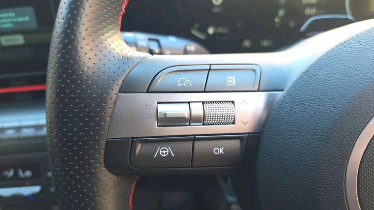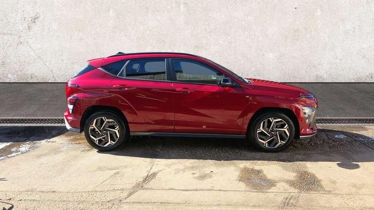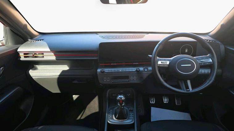 12.3" touchscreen centre console display satellite navigation with bluelink, live services and mapcare, Bluetooth connectivity with voice recognition, Cruise control, Driver status monitor (DSM), Driver supervision instrument cluster with 12.3" LCD display, eCall emergency call system, Feature on demand - Enabled, Forward collision avoidance assist (FCA 1.5) - Car, pededstrian, cycle and junction turning, Front parking sensor, Height adjustable power tailgate, Intelligent speed limit assist, Lane follow assist, Lane keep assist, Leading vehicle departure alert (LVDA), Parking system with rear camera and guidance system, PAS, Rear parking sensor, Roadside assistance, Wireless phone charging pad, Wireless Smartphone Integration includes Apple CarPlay and Android auto, 2 front USB C and 2 rear USB C charging points, DAB Digital radio, Speakers - Front, rear and tweeters, Steering wheel audio, phone and cruise controls, Auto dimming rear view mirror, Automatic headlights with dusk sensor, Automatic windscreen wipers with rain sensor, Body colour exterior door handles, Body coloured wheel arch inserts, Door mirror LED indicator lights, Electric front windows with anti-trap mechanism and one touch control, Electric rear windows, Electrically adjustable and heated door mirrors, Full LED MFR headlights, Gloss black door mirrors, LED daytime running lights, LED upper and lower rear lights, Power folding door mirrors, Privacy glass - Rear windows and tailgate, Rear roof spoiler with integrated LED brake light, Rear side wing doors, Rear wiper, Roof rails, Solar glass with front door glass and windscreen, Tinted glass in front and rear doors, Windscreen auto defog function, 12V power outlet in front console, 2 zone climate control, 3 seat bench in 2nd row, 40/20/40 split folding rear seat, Adjustable head restraints, Aluminium pedals, Ambient lighting, Driver and passenger front seat pockets, Driver's seat lumbar support, Driver/passenger manual seat height adjustment, Driver/passenger sunvisors and illuminated vanity mirrors, Floor mats, Heated front seats, Heated rear seats, Heated steering wheel, Height/reach adjustable steering column, Leather wrapped steering wheel and gear knob, LED centre interior light, LED front interior light, Luggage compartment LED lighting, Luggage shelf, Metal paint effect interior door handles, N Line cloth upholstery, Rear centre armrest with cupholders, Single front passenger seat, Vertical adjustment rear head restraints, N Line exterior design pack - Kona, Trailer wiring package - Kona, Airbag - front, front side, curtain and centre front airbag, Anti-lock brake system (ABS), Childproof rear door locks, Downhill brake control, Electric parking brake, Electronic stability control, Fixed 3 point for second row centre passenger seatbelt, Hill start assist control (HAC), Rear seat alert, Tyre pressure monitoring system, Alarm/immobiliser, Rear occupant alert, Remote central locking, Smart key with keyless entry and start/stop button, Five year annual vehicle health checks, Temporary mobility kit (TMK),