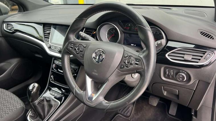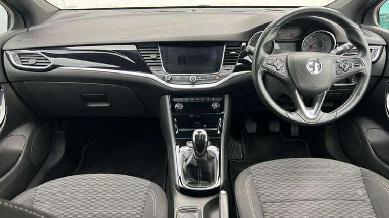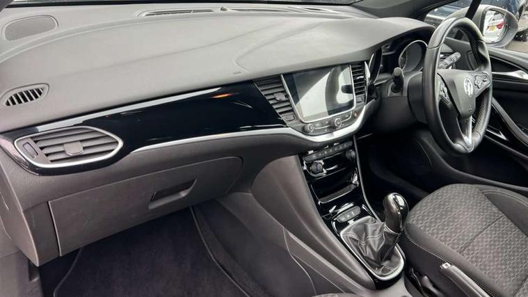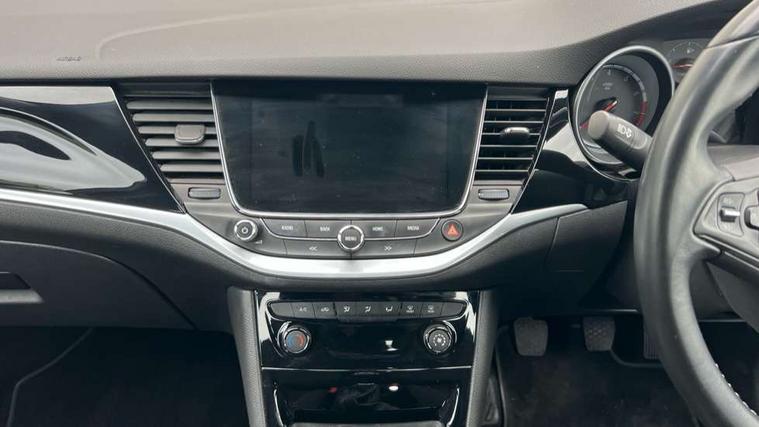 Apple car play/Android Auto, Cruise control + speed limiter, Electric speed sensitive power steering, External temperature gauge, Intellilink Nav 900 European sat nav with 8" touch screen, Low fuel level warning light, Mobile App interface, Multi function trip computer, Rev counter, Service indicator, Sports switch, Vauxhall OnStar emergency assistance, Voice control system, 6 speakers, Bluetooth connectivity including audio streaming, DAB Digital radio, Steering wheel mounted audio controls, USB port, Adaptive brake lights, Body colour door handles, Body colour rear roof spoiler, Body coloured door mirrors, Chrome effect upper window trim, Chrome front grille, Chrome headlight surround, Door to door illumination, Electrically adjustable and heated door mirrors, Front fog lamps, Gloss black finish B pillar, Gloss black finish C pillar, Hazard warning lamps, Heated rear window, Intermittent rear wash/wipe, LED daytime running lights, One touch electric front/rear windows, Shark fin roof aerial, Solar glass windscreen, Tinted windscreen, Trailer Stability Programme, 12V power point front, 3 spoke leather covered steering wheel, 4 Lashing eyes in boot, 60/40 split rear seats, Adjustable front armrest, Centre console with covered storage and cupholders, Chrome interior door handles, Driver's storage box, Driver/passenger sunvisors, Formula cloth upholstery, Front and rear door pockets, Front reading lights, Front red LED ambient lighting, Front seat back storage pockets, Front/rear courtesy lights, Glovebox, Height adjustable front/rear head restraints, Illuminated load area, Illuminated vanity mirrors, Isofix system on outer rear seats, Leather steering wheel, Luggage compartment cover, Reach + rake adjustable steering column, Driving assistance pack 1 - Astra, 3x3 point rear seatbelts, ABS, Child locks on rear doors, Driver/Front Passenger airbags, ESP, Front and rear curtain airbags, Front seat side impact airbags, Hill start assist, Passenger airbag deactivate switch, Pedal release system, Seatbelt pretensioners on front/outer rear seats, Tyre pressure monitoring system, Deadlock, Electronic engine immobiliser, Locking wheel bolts, Remote central locking, Remote ultrasonic alarm system,