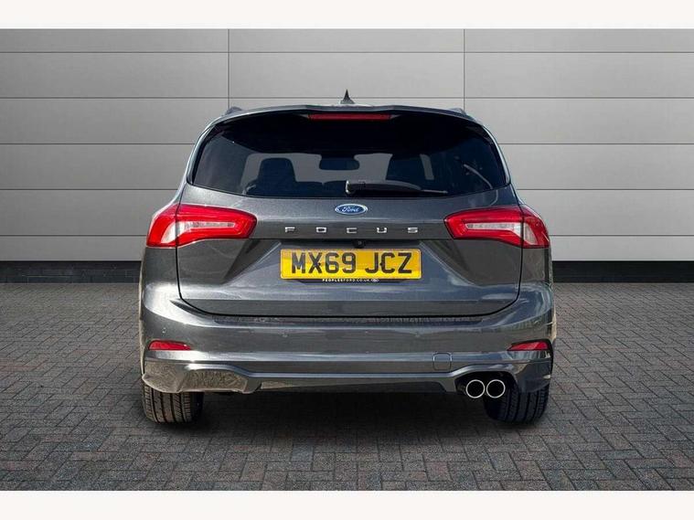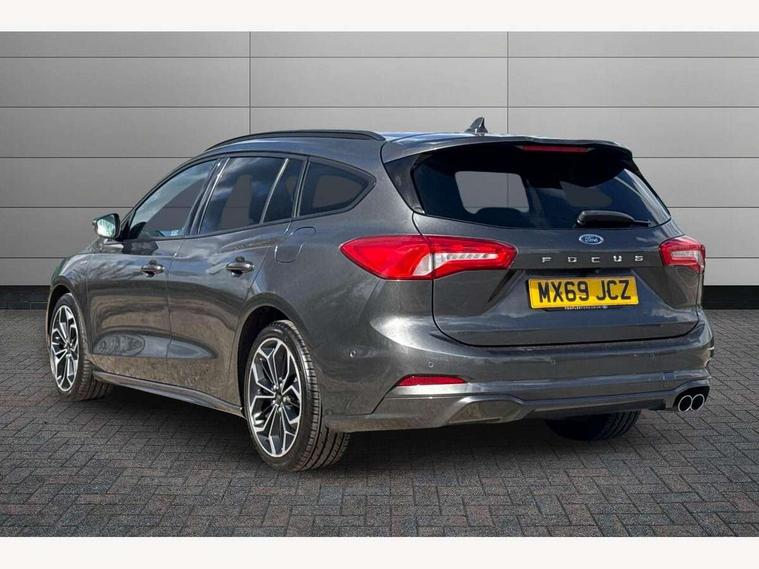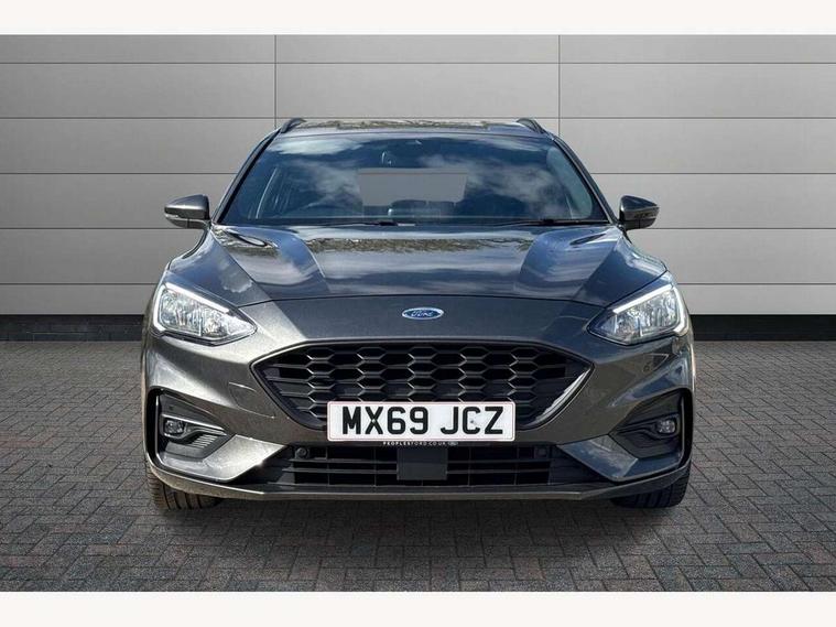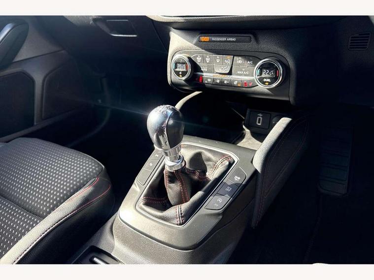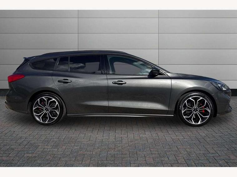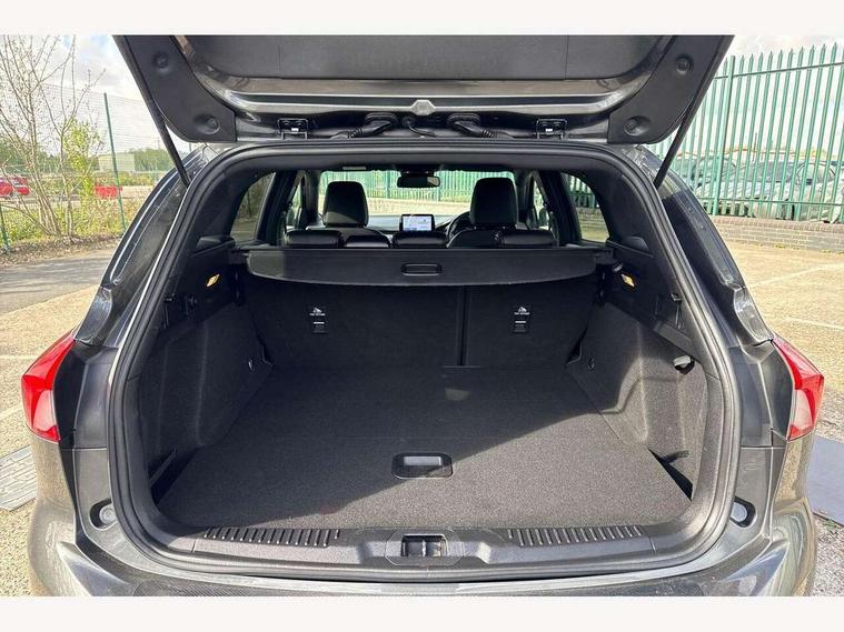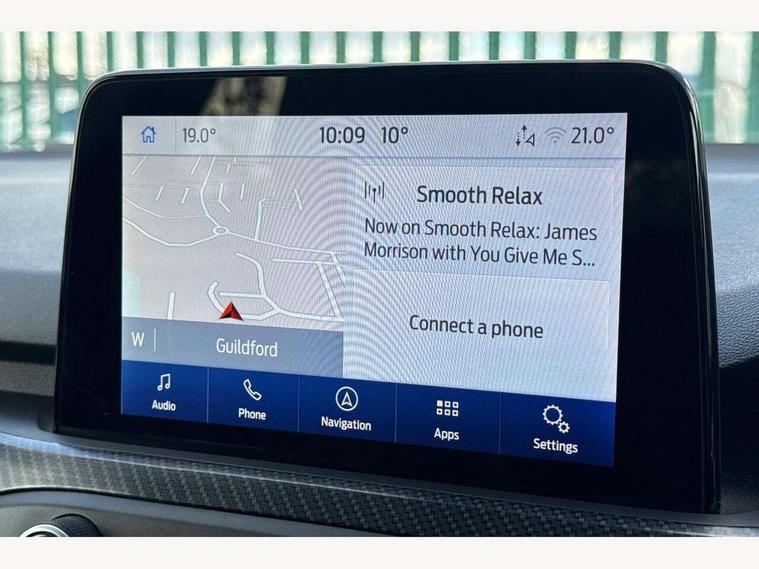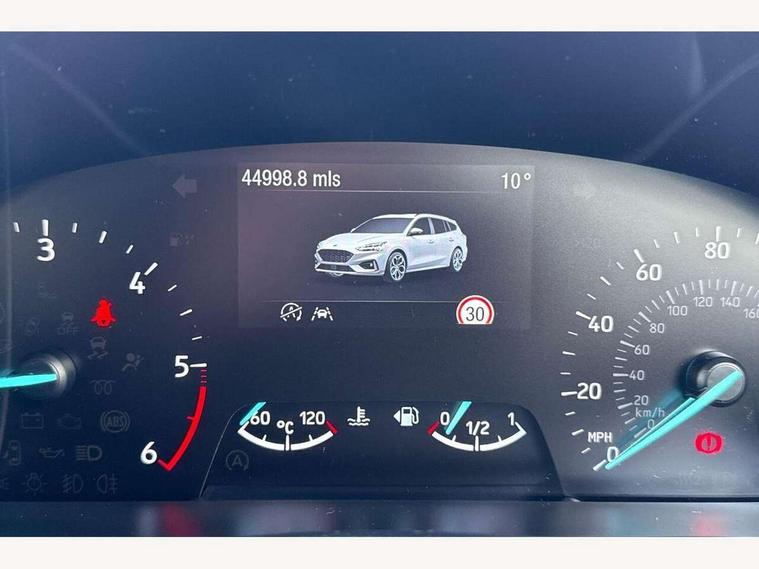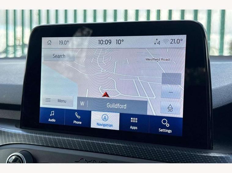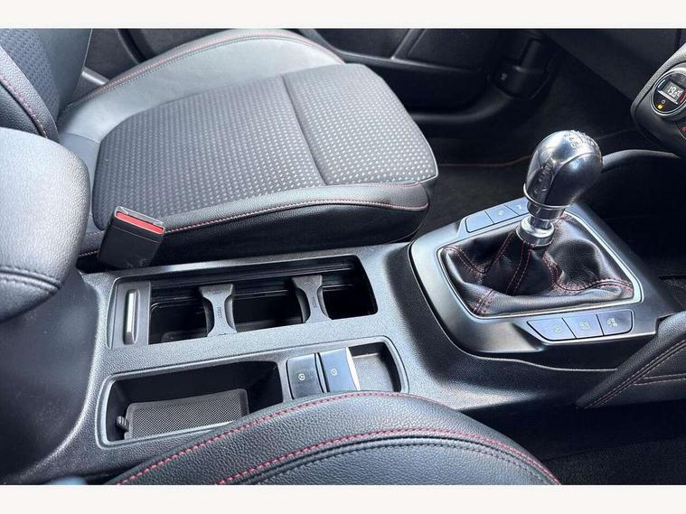 4" TFT coloured cluster screen, Bluetooth system, Digital clock, Easy fuel capless refuelling system, Eco mode, Ford pass connect, Ford SYNC 3 nav system with DAB radio, 8" colour touch screen, voice control, app link, Apple car play/Android auto and 4.2" TFT coloured cluster, Lane keeping aid with lane departure warning, PAS, Selectable drive mode, Trip computer, Diesel particulate filter, Sports tuned suspension, 2 USB ports, Aux input, 'Quickclear' heated windscreen/heated washer jets, Auto dimming rear view mirror, Auto headlamps (on/off), Automatic rain sensing wipers, Body colour large rear spoiler, Body colour power folding door mirrors with puddle lights, Body colour side skirt, Body coloured bumpers, Body coloured door handles, Body coloured electrically operated and heated door mirrors with side indicators, Electrically operated front and rear windows with one touch opening and closing, Front variable intermittent wipers with electric wash, Heated rear window, LED daytime running lamp, LED front fog lamps with cornering function, Polished twin tailpipe, Rear privacy glass, Roof rails, ST-Line upper and lower grille with full body styling kit and wing badges, Tailgate wash/wipe, Unique door and instrument panel inserts, 3 spoke flat bottomed leather steering wheel with red stitching, 6 way power adjustable driver seat, 60/40 split back and cushion rear seats with 2 height adjustable headrests, Alloy finish pedals, Aluminium gear knob, Auto fold rear seats, Centre console with armrest, Dark headliner, Dual zone electronic air temperature control, Front and rear floor mats with red stitching, Front passenger seat manual height and lumbar adjust, Heated front seats, Height adjustable front headrests, Isofix child seat preparation, Part leather upholstery with red stitching, Reach + rake adjustable steering column, Rear centre headrest, Red stitching on steering wheel, Soft console knee pads with red stitching, ABS+Electronic Brake force Distribution, Auto hold function, Driver airbag, Electronic parking brake, Electronic stability control, Front and rear seatbelt reminder, Front inertia reel height adjustable seatbelts with pre-tensioners, Front passenger airbag, Front side airbags, Hill start assist, Passenger airbag deactivate switch, Post collision braking, Pre collision assist with autonomous emergency braking and pedestrian/cyclist detection, Red brake calipers, Side curtain airbags, Three rear inertia reel lap/diagonal seatbelts, Tyre pressure monitoring system, MyKey system, Remote central locking & engine immobiliser, Thatcham category 1 alarm, Contrast stitching - Red, 18" 5x2 spoke matt black machined finish alloy wheels, Mini steel spare wheel,