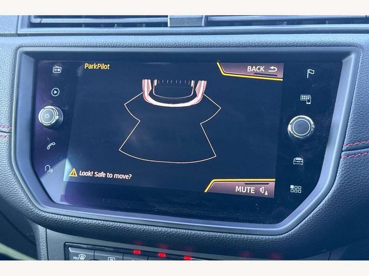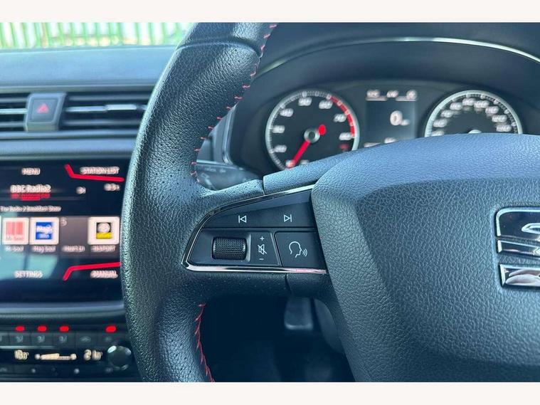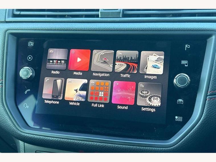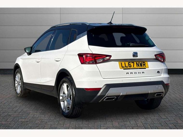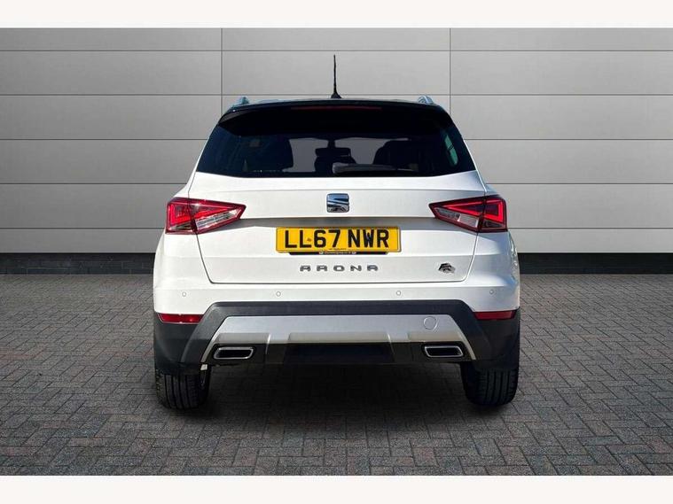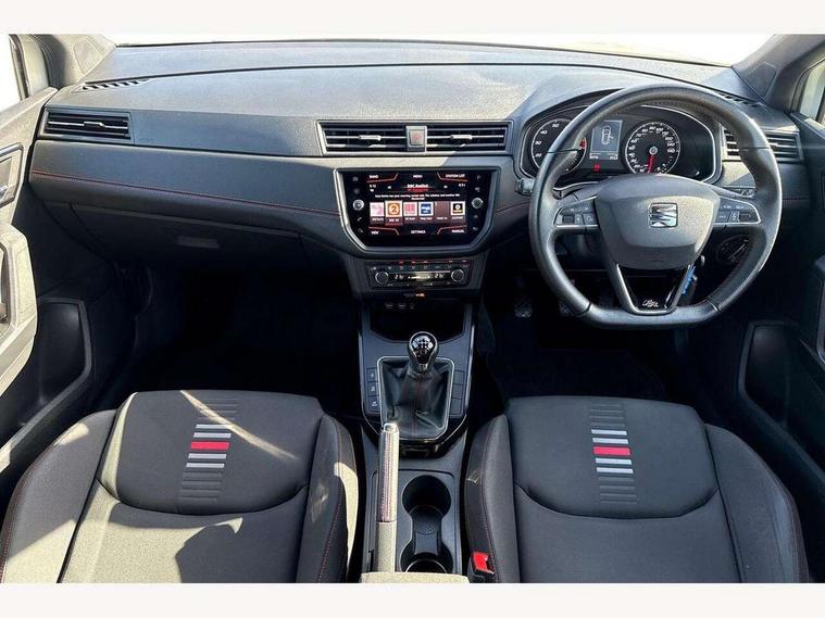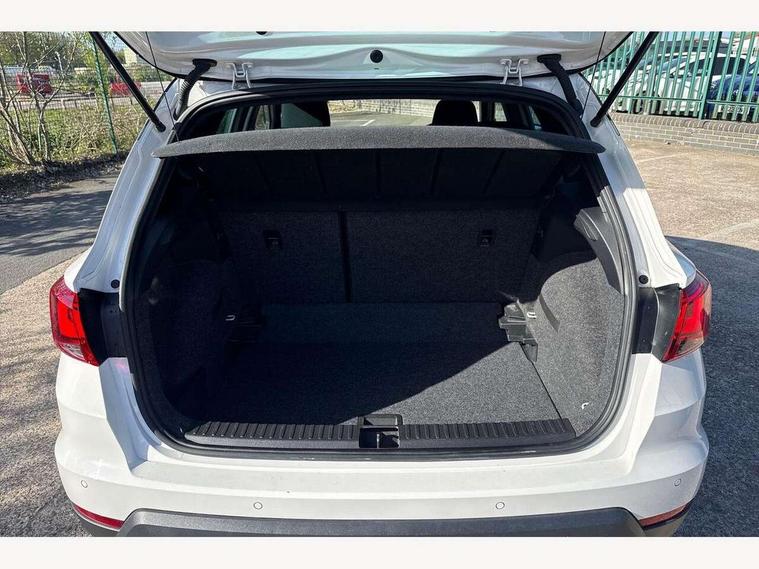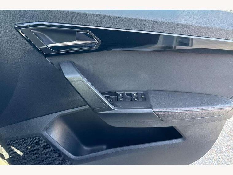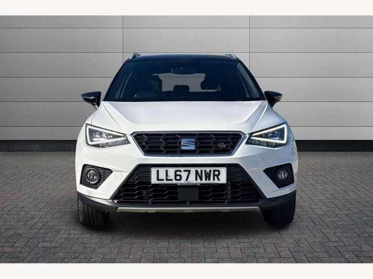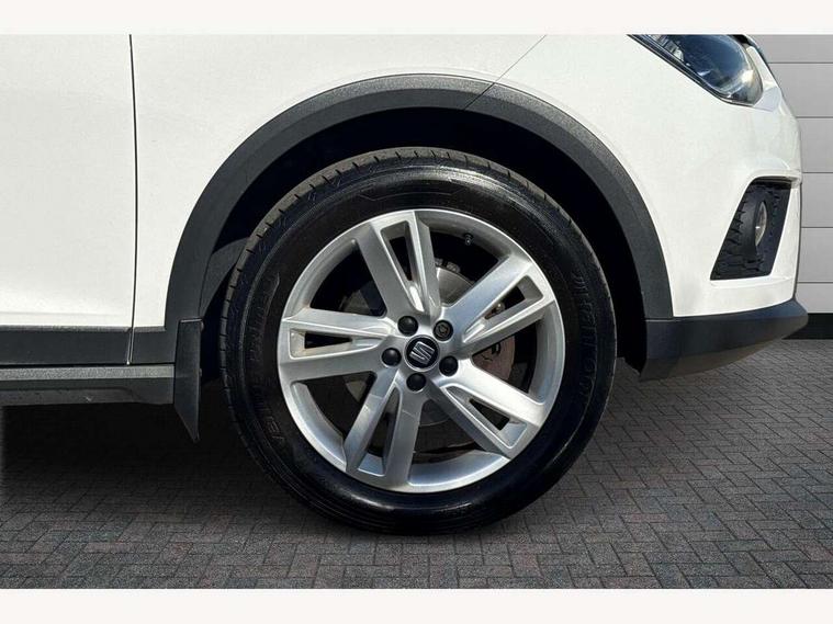 'Lights On' Reminder warning buzzer, Cruise control, Electric speed sensitive power steering, Front assistant collision mitigation, Outside temperature display, Rear parking sensor, SEAT Drive profile, Trip computer, Sports suspension, 6 speakers, Bluetooth interface for hands free and audio streaming, DAB Digital radio, Steering wheel mounted audio controls, Auto dimming interior mirror, Automatic activation of hazard warning lights, Automatic headlights, Body coloured bumpers, Body coloured door handle inserts, Chrome grille surround, Chrome roof rails, Chrome window surround, Coming/leaving home lighting function, Dark tinted rear windows, Electric front/rear windows with one touch/auto up/down, Electrically adjustable and heated door mirrors, Electrically folding wing mirrors, Front fog lights with static cornering function, Full LED headlights, LED daytime running lights, LED tail lights, Rain sensor windscreen wipers, Rear window wash/wipe, Roof colour door mirrors, Twin exhaust pipes, 2 cupholders, 3 rear height adjustable headrests, 60/40 split folding rear seat, Ambient interior lighting, Double boot floor, Driver and passenger sunvisors, Driver/front passenger seat height adjustment, Dual zone climate control, Dust/pollen filter, Flat bottomed steering wheel, Footwell ambient lighting, Front courtesy lights, Front reading light, Height/reach adjustable steering column, Illuminated boot, Isofix attachments on rear seats, Leather handbrake, Leather steering wheel and gear knob, Nora cloth upholstery, Sports seats, Connectivity pack plus - Arona, 3 point seatbelts on all rear seats, ABS+EBA, Child locks on rear doors, Driver/Front Passenger airbags, Electronic stability control, Front and rear seatbelt reminder, Front side/curtain airbags, Height adjustable active front headrests, Hill hold control + Tyre Pressure monitor, Multi-Collision braking, Passenger airbag deactivate switch, Tiredness recognition system, Traction control, 2 folding remote keys with window open/close function, Alarm with interior monitoring, Immobiliser, Locking wheel bolts, Remote central locking + deadlocks, Interior chrome line trim, 17" Dynamic alloy wheels,