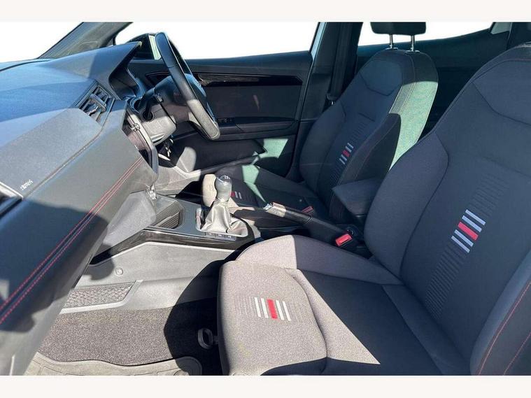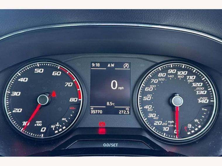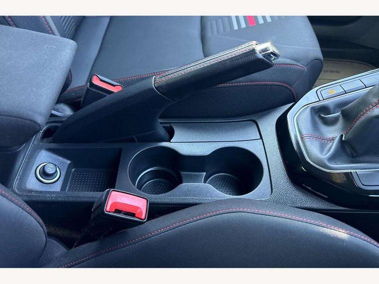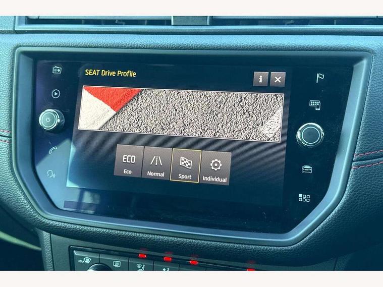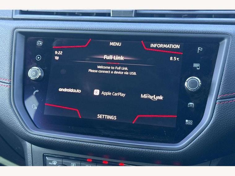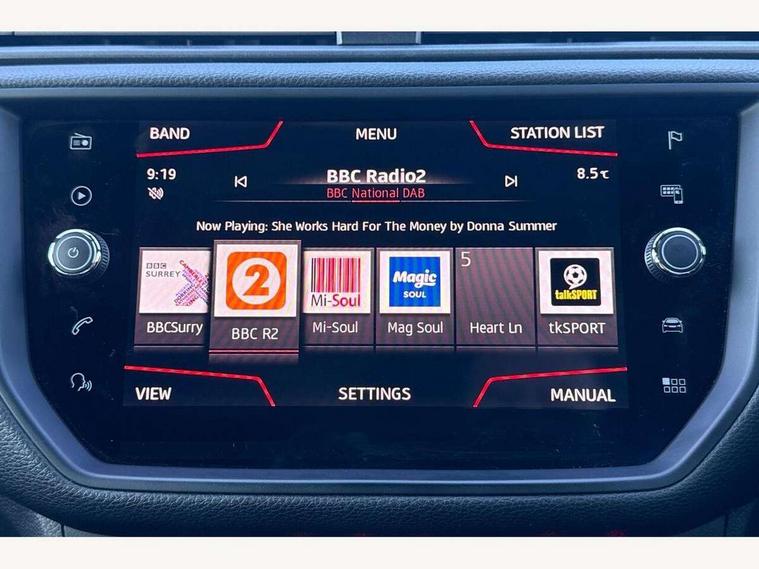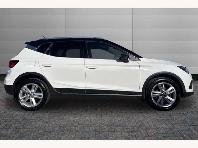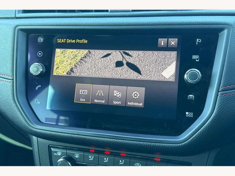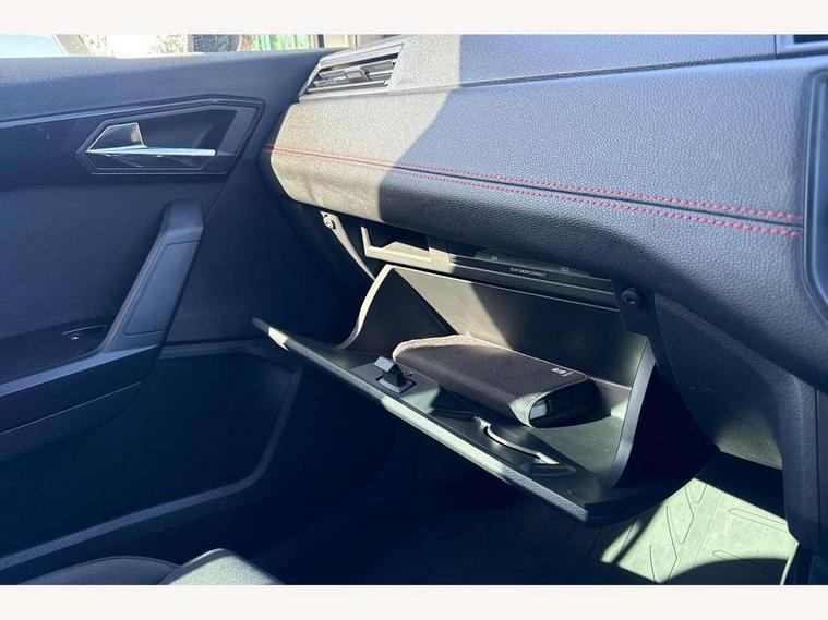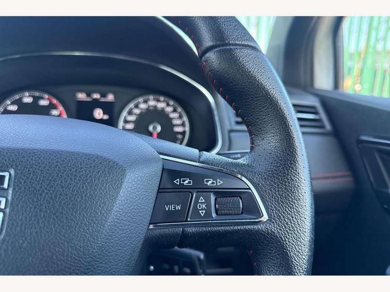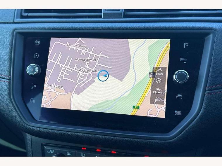 'Lights On' Reminder warning buzzer, Cruise control, Electric speed sensitive power steering, Front assistant collision mitigation, Outside temperature display, Rear parking sensor, SEAT Drive profile, Trip computer, Sports suspension, 6 speakers, Bluetooth interface for hands free and audio streaming, DAB Digital radio, Steering wheel mounted audio controls, Auto dimming interior mirror, Automatic activation of hazard warning lights, Automatic headlights, Body coloured bumpers, Body coloured door handle inserts, Chrome grille surround, Chrome roof rails, Chrome window surround, Coming/leaving home lighting function, Dark tinted rear windows, Electric front/rear windows with one touch/auto up/down, Electrically adjustable and heated door mirrors, Electrically folding wing mirrors, Front fog lights with static cornering function, Full LED headlights, LED daytime running lights, LED tail lights, Rain sensor windscreen wipers, Rear window wash/wipe, Roof colour door mirrors, Twin exhaust pipes, 2 cupholders, 3 rear height adjustable headrests, 60/40 split folding rear seat, Ambient interior lighting, Double boot floor, Driver and passenger sunvisors, Driver/front passenger seat height adjustment, Dual zone climate control, Dust/pollen filter, Flat bottomed steering wheel, Footwell ambient lighting, Front courtesy lights, Front reading light, Height/reach adjustable steering column, Illuminated boot, Isofix attachments on rear seats, Leather handbrake, Leather steering wheel and gear knob, Nora cloth upholstery, Sports seats, Connectivity pack plus - Arona, 3 point seatbelts on all rear seats, ABS+EBA, Child locks on rear doors, Driver/Front Passenger airbags, Electronic stability control, Front and rear seatbelt reminder, Front side/curtain airbags, Height adjustable active front headrests, Hill hold control + Tyre Pressure monitor, Multi-Collision braking, Passenger airbag deactivate switch, Tiredness recognition system, Traction control, 2 folding remote keys with window open/close function, Alarm with interior monitoring, Immobiliser, Locking wheel bolts, Remote central locking + deadlocks, Interior chrome line trim, 17" Dynamic alloy wheels,