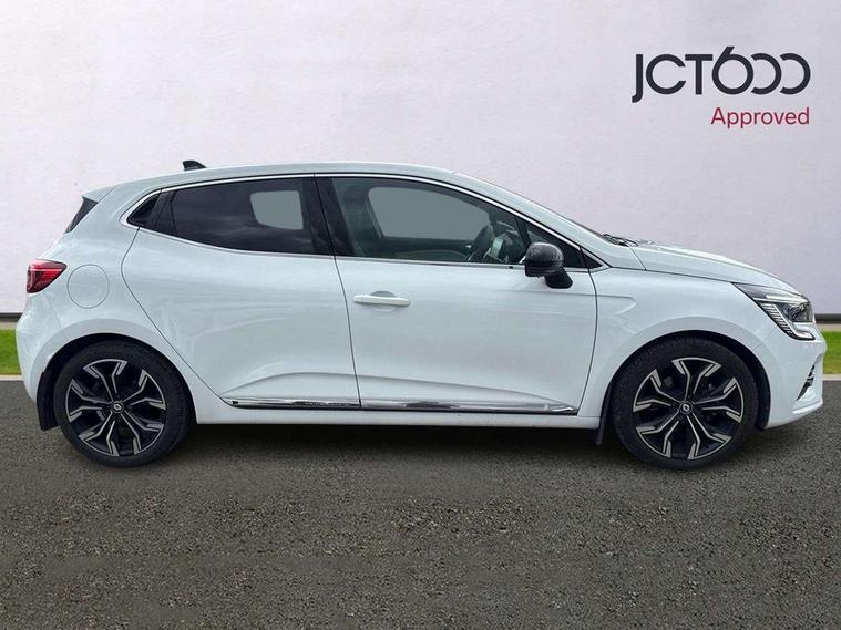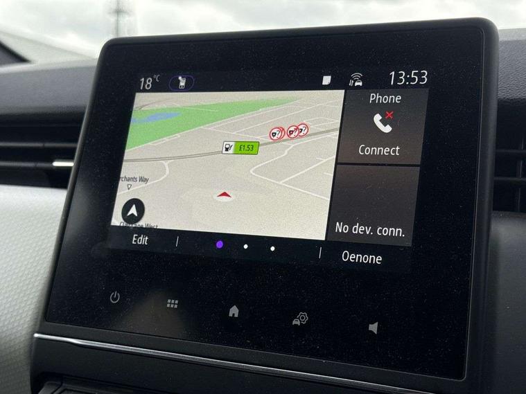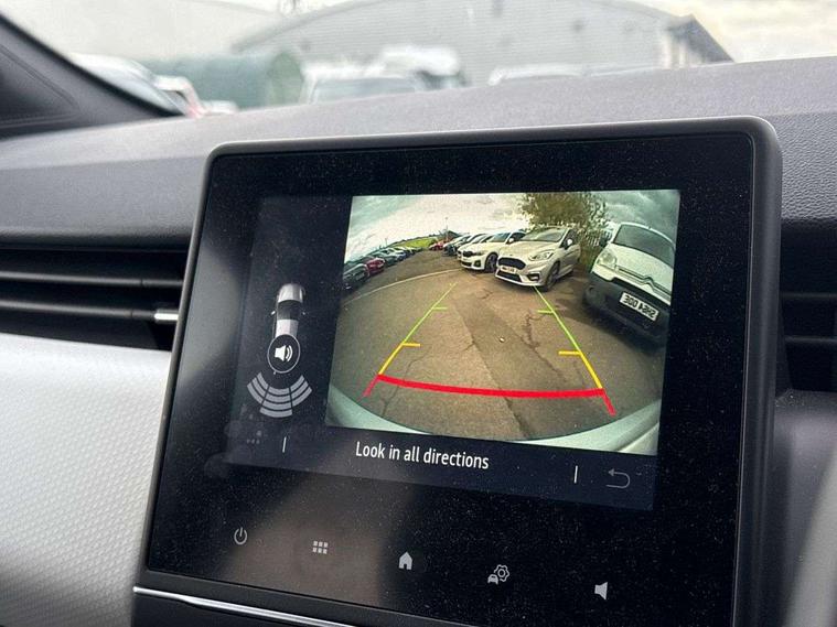 7" driver information display cluster, Apple car play/Android Auto, Cruise control + speed limiter, E-call, Easy link navigation with 7" touchscreen+4x20W amplifier+FM DAB double tuner, sound auditorium, 2xUSB/1xjack/bluetooth, smartphone integration plus, Eco mode driving function, Emergency call system, Front parking sensors, Gear change indicator, Lane departure warning system, Lane keep assist, Over speed prevention warning, Rear parking sensors, Rear view camera, Traffic sign recognition, Trip computer, Variable assistance electric PAS, Wireless phone charger, E-TECH battery, Auto dimming rear view mirror, Auto high beam assist, Auto light control and rain sensing wiper, Automatic headlights, Black wing mirrors, Body colour door handles, Body colour rear roof spoiler, Body coloured bumpers, Chrome front grille, Chrome insert on lower side doors with Clio embossing, Chrome side window surrounds, Drivers one touch window with anti-pinch feature, Electric front windows, Electric rear windows, Exterior rear hidden door handles, Extra tinted glass on rear windows + tailgate, Front and rear LED roof light x 2, Full LED front and rear headlamps integrating daytime running lights at the front and rear, Heated rear windscreen, LED front fog lights, LED reverse light, Manual folding wing mirror mechanism, Manually adjustable door mirrors, Rear fog lights, Rear side wing doors, Rear wiper, Shark fin antenna, Third brake light, Variable speed on front windscreen wipers, 12V Accessory socket, 3 rear height adjustable headrests, 3 seat bench in 2nd row, 3D Fabric velvet upholstery, 6.2L front glovebox, 60/40 split and fixed base rear seat bench, Air recirculation control, Auto climate control, Black headlining, Black hooks on boot floor x 4, Centre console with storage and armrest, Front cupholders, Front door storage bin, Grey dashboard and door panel, Height adjustable front headrests, Height/reach adjust steering wheel, Isofix system on outer rear seats, Luggage nets in boot, Matted grey interior roof lining and a pillar, Mechanical height adjustable front seats, Multi function steering wheel, Multisense including ambient lighting and selectable drive modes, Pollen filter, Single front passenger seat, Sun visor without light, Synthetic leather steering wheel, System for Restraint and Protection SRP-front seats, Vision grey interior detail includes light grey on doors, lower part of dash and gear stick, 3 point seatbelts on all rear seats, ABS, AEBS - active emergency braking system, BAS (Brake Assist System), Curtain airbags, Distance warning alert, Driver and passenger front and side airbag deactivation, Driver/Front Passenger airbags, Electronic parking brake with auto hold, ESC - Electronic Stability Control + traction control, Front side airbags(head+thorax), Height adjustable driver's seatbelt, Seatbelt warning, Tyre pressure warning, Deadlocking system, Hands free key card with push button, start and stop function, Locking fuel filler cap, RAID (Renault Anti-Intruder Device) with automatic door locking, Rear side wing door and window child locking function (front driver door control panel), Remote central locking with thatcham approved immobiliser, Grey dashboard trim, Upper dashboard soft covered with positive thermoforming type 2, 17" Viva stella diamond cut alloy with grey/black inserts,
