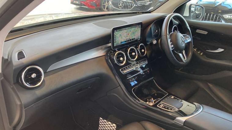 Active parking assist with parktronic system, Attention assist, Bluetooth interface for hands free telephone, Collision prevention assist plus, Cruise control with speedtronic variable speed limiter, Direct steer speed sensitive steering, DYNAMIC SELECT with a choice of driving modes (ECO, Comfort, Sport, Sport+ and Individual), Easy pack automatic powered tailgate, ECO start/stop function, Hard disk navigation, Hey Mercedes Voice activation, Instrument cluster with 5.5-inch TFT multi-function display, MBUX Interior assistant, Mercedes connect me with remote online services, Multi function trip computer, Outside temperature display, rear seatbelt status indicator, Remote boot release, Reversing camera, Service indicator (ASSYST), 4MATIC permanent four wheel drive, 50 litre fuel tank, 9G TRONIC plus automatic transmission with steering column gear selector, DIRECT SELECT steering wheel gearshift paddles, Agility control comfort suspension, Diesel particulate filter, 5 speakers, DAB Digital radio, Frontbass loudspeakers, MBUX multimedia system with DAB digital radio and touchpad including satellite navigation, Media display 10.25-inch touchscreen display, Pre installation for Mercedes Benz Link, USB ports x 2 in centre console, Adaptive brake lights, Aluminium roof rails, Body colour door mirrors, Body coloured bumpers, Electric windows one touch open/close, Electrically adjustable and heated door mirrors, Front and rear exterior chrome trim, Headlamp assist automatic headlamp activation, LED high performance headlamps with integrated LED daytime running lights, LED tail lamp, Privacy glass with dark glass from B pillar backwards, Radiator grille with integral Mercedes star and two louvres in matt iridium silver with chrome inserts, Rain sensor windscreen wipers, Range adjustable headlights, Rear wiper, Tinted glass all round with single layer safety glass, Two chrome plated tailpipe trim elements, 2 way rear head restraints, 3-spoke multifunction steering wheel in nappa leather with trim in silver chrome and perforated leather in grip area, 40:20:40 split folding rear seats, Artico leather upholstery, Automatic child seat recognition sensor, Dividing net - rear, Double cup holder in centre console, Front armrest with storage box, Front door sills with Mercedes Benz lettering, Front head restraints, Front seats with electric adjust (backrest, height and seat cushion inclination) with 4 way electric lumbar support and manual cushion depth adjust, Heated front seats, Height/reach adjustable steering column, Illuminated and lockable glove compartment, Rear top tether child seat ISOFIX attachment, Steering wheel with touch control buttons, THERMATIC automatic climate control, Velour floor mats in interior colour, Easy-pack load compartment cover, Interior lighting pack - GLC, Mirror pack - GLC, Storage pack - GLC, 3 rear 3 point seatbelts, Active bonnet, Adaptive brake system with HOLD function and brake drying in the wet, ASR, Black seat belts, Child proof door locks, Dual-stage airbags - driver and front passenger, driver knee bag and window bags for driver, front passenger and rear passengers, Electronic parking brake, Electronic stability programme (ESP) with curve dynamic assist and cross wind assist, Front and rear seatbelt reminder, Front passenger seat occupancy sensor, Hill hold function, Tyre pressure monitoring system, Warning triangle and first aid kit, Alarm system/interior protection/immobiliser, Automatic door locking, KEYLESS-GO starting function, Remote central locking, High gloss black trim, 18" 5 triple spoke alloy wheels painted in high gloss black with high sheen finish and tirefit,
