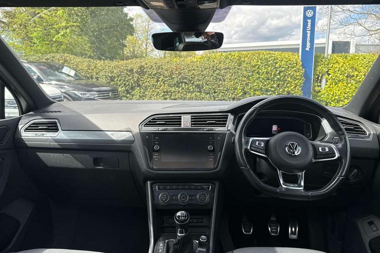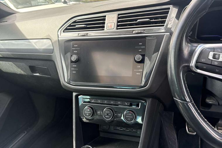 2D/3D map view, Active information display, Adaptive cruise control, App-Connect, Bluetooth phone integration system, Car information display, Distance control assist, Driver profile selection, Front assist, radar sensor controlled distance monitor, city emergency braking + predictive pedestrian protection, Instrument cluster, Lane assist, Lights on warning, Multifunction computer with visual gear change recommendation for fuel consumption, Outside temperature display, Service interval indicator, Speed limiter, Start/Stop function, Warning sound and light for doors and tailgate open, Battery regeneration during braking, XDS electronic differential lock for improved traction and handling, 2 x USB connection + USB charging socket, 4 X 20 watt output, DAB Digital radio, SD card slot, Simultaneous pairing of 2 compatible mobile devices, SMS functionality - read, compose and send SMS messages using touch-screen display, Title and cover art display, 3D effect cherry red LED rear tail lights, Auto dimming interior mirror, Automatic activation of hazard warning lights, Black grained lower door protectors with chrome inserts, Body colour door handles, Body colour door mirrors, Body coloured bumpers, Chrome side window surrounds, Chrome trimmed radiator grille, Coming/leaving home lighting function, Dusk sensor + auto driving lights, Electric panoramic sunroof with sunblind, Electrically heated and foldable door mirrors, door mirror puddle lights and reverse activated kerb view adjustment on passenger's door mirror, Front and rear electric windows, Heated rear window, High level 3rd brake light, LED headlights with dynamic light assist daytime running lights and cornering front fog lights, LED rear number plate lights, Piano black front air intake and rear diffuser, Rain sensor windscreen wipers, Rear tinted glass from B-pillar backwards approx 65% tinted, Rear windscreen washer and wiper with interval delay, Side door sills with chrome inserts, Silver front underbody protection and rear diffuser, Silver roof rails, Windscreen wipers/ intermittent wipe + 4 position delay, 12V socket in centre console storage area, 2 cup holders in front, 3 rear headrests, 3 zone climate control, 4 load lashing points, 40:20:40 split folding rear seats, Bag hook in luggage compartment, Driver and front passenger under seat drawer, Foldable front passenger seat backrest, Front + rear carpet mats, Front centre armrest with 12v socket, Front centre armrest with storage + rear 2 air vents, Front seat back storage pockets, Front seatback folding tables, Height/reach adjust steering wheel, Illuminated driver/passenger vanity mirrors, Illuminated scuff plates, Instrument lighting white adjustable panel illumination, Interior light with delay, Isofix Preparation 2 Rear child seats, Leather gear knob, Load through provision with 2 cupholders when folded, Lockable cooled glovebox, Luggage compartment lighting, Map pockets on front seats, Passenger seat height adjuster, Removable luggage cover, Sliding/reclining rear seats, Storage compartment in driver's door, Storage compartment in passenger's door, Storage compartment in rear doors, Storage compartments in luggage area left and right, Storage tray on dashboard, Sunglasses storage, Variable boot floor, height adjustable and removable, Ambient lighting pack - Tiguan, 3 rear 3 point seatbelts, ABS+EBD+Brake assist, Active bonnet, Active pedestrian safety system, Curtain airbags, Driver/Front Passenger airbags, Driver/Passenger whiplash optimised head restraints, Drivers knee airbag, DTC - Drag torque control, Electronic parking brake with auto hold, ESC with EDL, ASR, EDTC and trailer stabilisation function, First aid kit, Front seat side impact airbags, Front side airbags, Front ventilated disc brakes and rear disc brakes, Head airbag system, Height adjustable front 3 point seatbelts + pretensioners, Hill hold control, Passenger airbag deactivate switch, Passenger knee airbag, Pre crash preventive occupant protection, Rear side airbags, Rigid safety cell with front and rear crumple zones, Two tone horn, Warning sound and light for front seat belts if unfastened, Warning triangle, Alarm with interior protection, Electronic engine immobiliser, Remote central locking with 2 remote folding keys, Chrome door trim inserts, Dark grey decorative inserts in dash and door panel, Piano black decorative inserts in centre console,