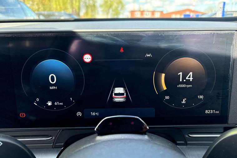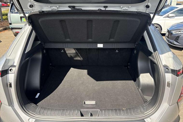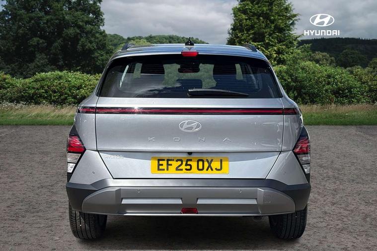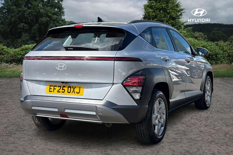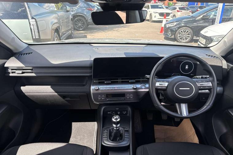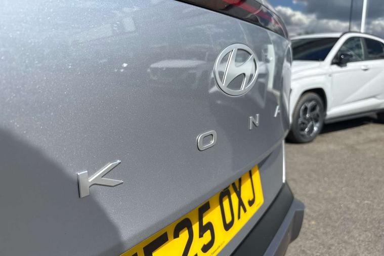 12.25" digital instrument cluster, 12.3" touchscreen centre console display satellite navigation with bluelink, live services and mapcare, Bluetooth connectivity with voice recognition, Cruise control, Driver status monitor (DSM), Driver supervision instrument cluster with 12.3" LCD display, eCall emergency call system, Feature on demand - Enabled, Forward collision avoidance assist (FCA 1.5) - Car, pededstrian, cycle and junction turning, Front parking sensor, Intelligent speed limit assist, Lane follow assist, Lane keep assist, Leading vehicle departure alert (LVDA), Parking system with rear camera and guidance system, PAS, Rear parking sensor, Rear view camera with dynamic guidelines, Roadside assistance, Wireless Smartphone Integration includes Apple CarPlay and Android auto, 2 front USB C and 2 rear USB C charging points, DAB Digital radio, Speakers - Front, rear and tweeters, Steering wheel audio, phone and cruise controls, Auto dimming rear view mirror, Automatic headlights with dusk sensor, Automatic windscreen wipers with rain sensor, Black painted wheel arch inserts, Body colour exterior door handles, Body coloured door mirrors, Door mirror LED indicator lights, Electric front windows with anti-trap mechanism and one touch control, Electric rear windows, Electrically adjustable and heated door mirrors, Full LED MFR headlights, LED daytime running lights, LED taillights, LED upper and lower rear lights, Power folding door mirrors, Rear roof spoiler with integrated LED brake light, Rear side wing doors, Rear skid plate - silver, Rear wiper, Roof rails, Tinted glass in front and rear doors, Windscreen auto defog function, 12V power outlet in front console, 2 zone climate control, 3 seat bench in 2nd row, Adjustable head restraints, Cloth upholstery, Driver and passenger front seat pockets, Driver's seat lumbar support, Driver/passenger manual seat height adjustment, Driver/passenger sunvisors and illuminated vanity mirrors, Floor mats, Height/reach adjustable steering column, Leather steering wheel, Leather wrapped steering wheel and gear knob, LED centre interior light, LED front interior light, Luggage compartment LED lighting, Luggage shelf, Metal paint effect interior door handles, Rear centre armrest with cupholders, Single front passenger seat, Vertical adjustment rear head restraints, Trailer wiring package - Kona, Airbag - front, front side, curtain and centre front airbag, Anti-lock brake system (ABS), Childproof rear door locks, Downhill brake control, Electric parking brake, Electronic stability control, Fixed 3 point for second row centre passenger seatbelt, Hill start assist control (HAC), Rear seat alert, Tyre pressure monitoring system, Alarm/immobiliser, Rear occupant alert, Remote central locking, Smart key with keyless entry and start/stop button, Five year annual vehicle health checks, 17" Alloy wheels, Temporary mobility kit (TMK),