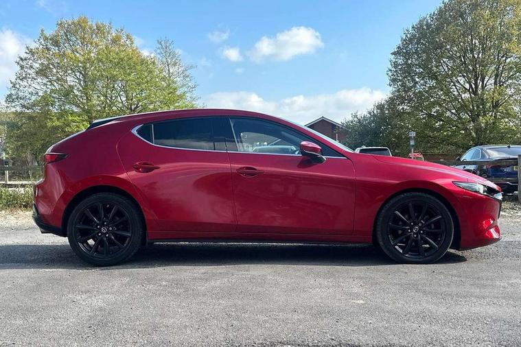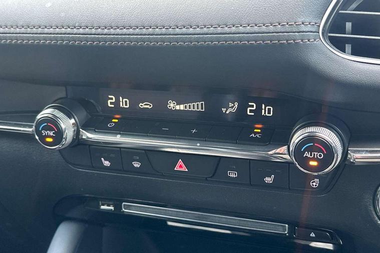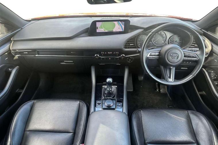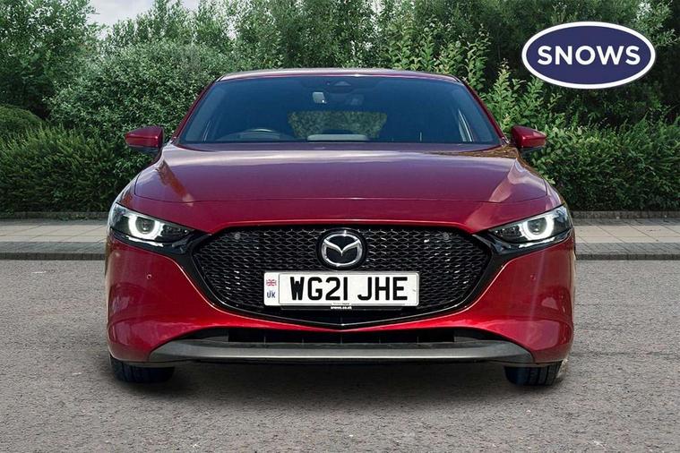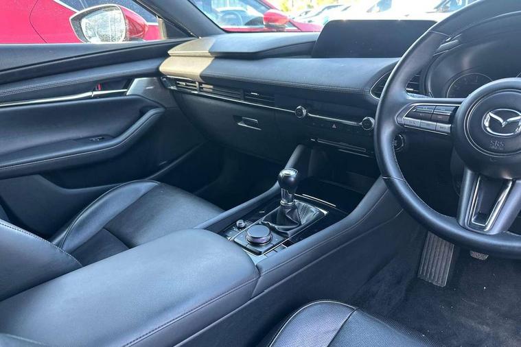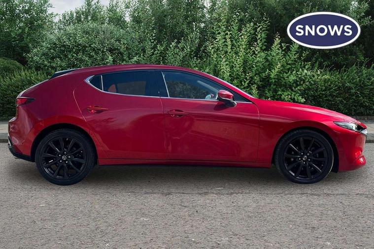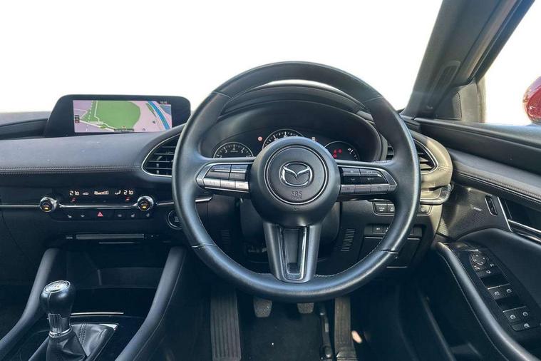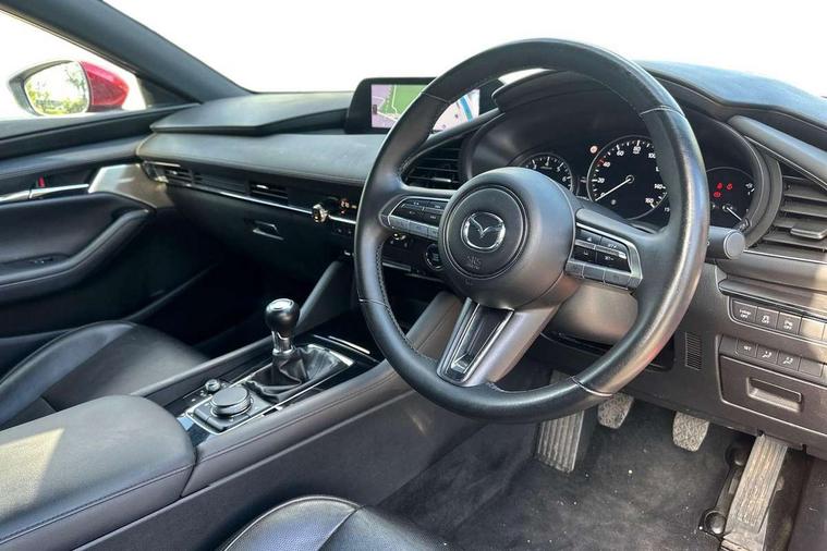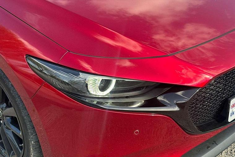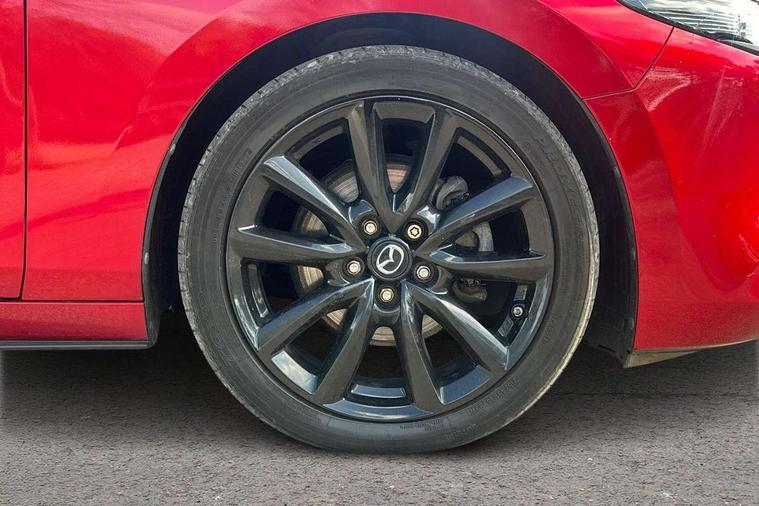 7" colour TFT display, 8.8" Colour centre touch screen display with Mazda Connect infotainment, Apple car play/Android Auto, Audio transfer from bluetooth devices, Blind spot monitoring with rear cross traffic alert, Colour active driving display inc Windscreen projected, Traffic Sign Recognition, turn-by- turn navigation and Mazda Radar Cruise Control information, Digital instrument cluster, Driver attention alert system, E-call with GPS, Emergency stop signalling system, Engine start/stop button, Front and rear parking sensors, Head up Display, Integrated bluetooth with steering wheel mounted controls, Intelligent speed assist, Lane keep assist system (LAS) with Lane departure warning system (LDWS), Mazda Navigation System with european mapping, Mazda Radar Cruise Control, Mobile App interface, Multimedia Commander, PAS, Reversing camera, Service indicator, Start/stop button chrome surround, Trip computer, Mazda Multimedia System with AM / FM / DAB radio, single CD / MP3 with 12 Speaker Bose sound system, bose centerpoint, bassmatch+audiopilot technology, Adaptive LED Headlights, Auto dimming door mirrors, Coming/leaving home lighting function, Dark metallic finish signature wing, Daytime running lights, Door mirrors with adjustable memory and tilt-down function when reversing, Dusk sensing headlights, Electric front/rear windows with one touch/auto up/down, Electrically adjustable/heated/auto power folding door mirrors with integrated indicators, Frameless auto dimming interior rear view mirror, Front body coloured bumper with black/bright lower bezel, Gloss black mesh grille, Gloss black rear roof spoiler, High beam assist, LED headlamps with auto levelling, LED indicator lights, LED third brake light, Piano black window garnish, Privacy glass with dark tinting on rear side windows and rear window, Rain sensing front wipers, Rear fog lights, Rear gloss black lower moulding, Signature LED lights, Signature LED rear combination lights with LED rear turn lights, Speed adjustable rear wash wiper with intermittent wipe, 60/40 split fold down rear seats, 8 way power adjustable driver with door mirror memory and active driving display, Chrome centre bezel steering wheel, Chrome-plated glovebox handle, Driver, Front passenger and two rear grab handles with coathooks, Driver/passenger sunvisors + vanity mirrors (drivers side with ticket holder), Dual zone climate control air conditioning, Electrical power outlet, Folding rear centre armrest with two cup holders, Front and rear courtesy lamps, Front armrest, Front centre console with storage box with tray, lid + 2 cupholders, Front head restraints, Front passengers seat manual slide, recline and height adjustment, Gear shift indicator, Heated steering wheel, Illuminated glovebox, ISOFIX child seat anchorage points attached on outer rear seats, Leather wrapped gear shift knob, Leather wrapped steering wheel, LED interior light, Luggage compartment light, Power driver lumbar adjustment, Reach adjustable steering wheel, Storage - glovebox, driver and front passenger door pockets and roof mounted sunglasses holder, Three height adjustable rear head restraints, Tilt/height adjustable steering wheel, USB charging point, 3 point ELR front seatbelts with pretensioners, 3 rear 3 point seatbelts with ELR, Anti-lock braking system (ABS), Drivers knee airbag, DSC - Dynamic Stability Control, Dual front airbags, EBD - Electronic brakeforce distribution, Electronic parking brake with auto disengage function and auto hold function, Front and rear curtain airbags, Front passenger airbag cut-off switch, Front side airbags, Front smart city brake support, G-Vectoring control plus, Hill launch assist, Intelligent Traction Control system, Mild Hybrid system with regenerative braking, Seatbelt reminder for driver/front passenger and rear seats, Tyre pressure monitoring system (TPMS), Auto door lock when driving, Remote central locking + deadlocks, Smart Keyless entry and start, Thatcham accredited alarm and immobiliser, 18" Black metallic alloy wheels, Emergency tyre repair kit,