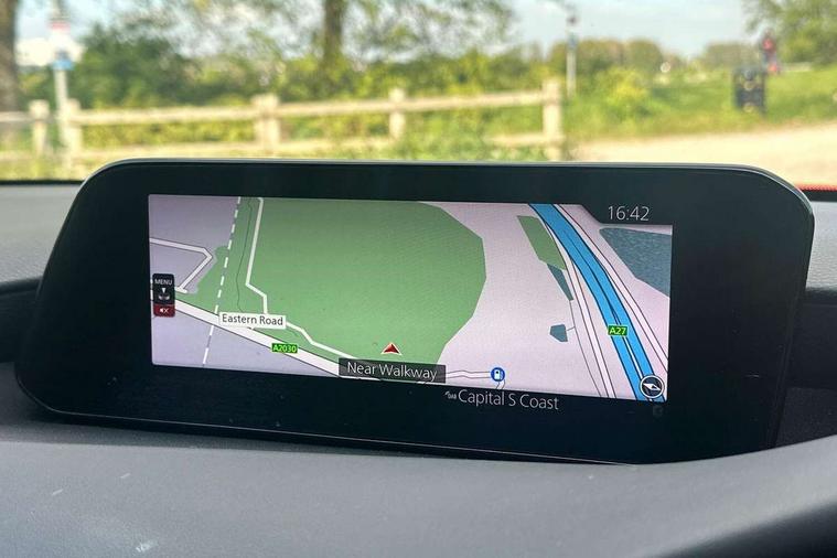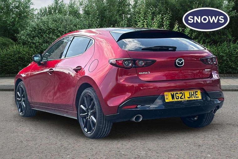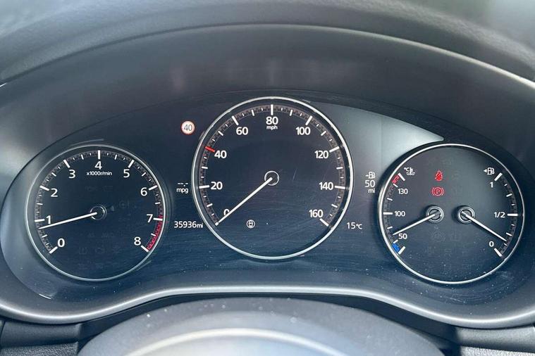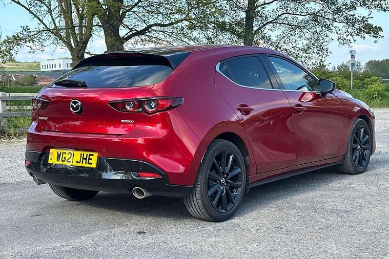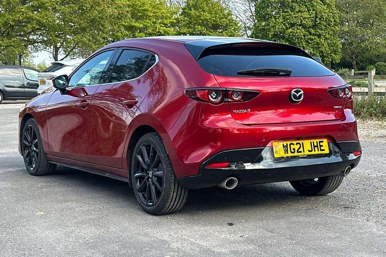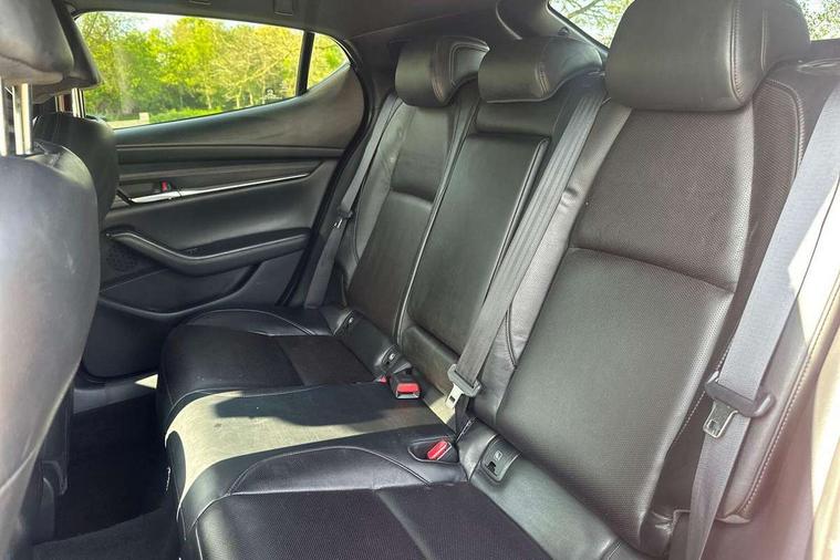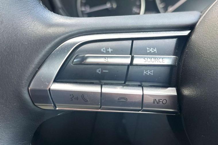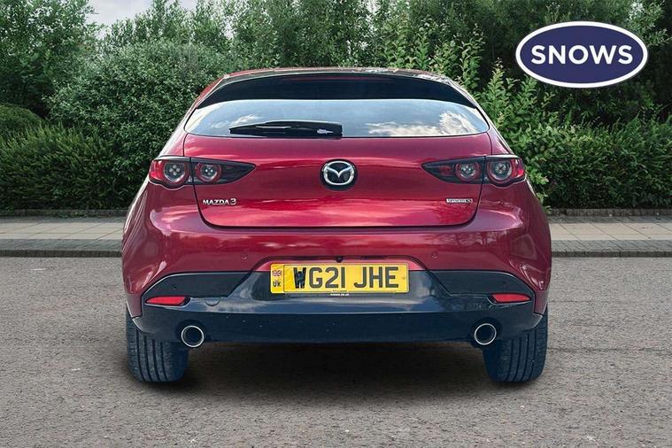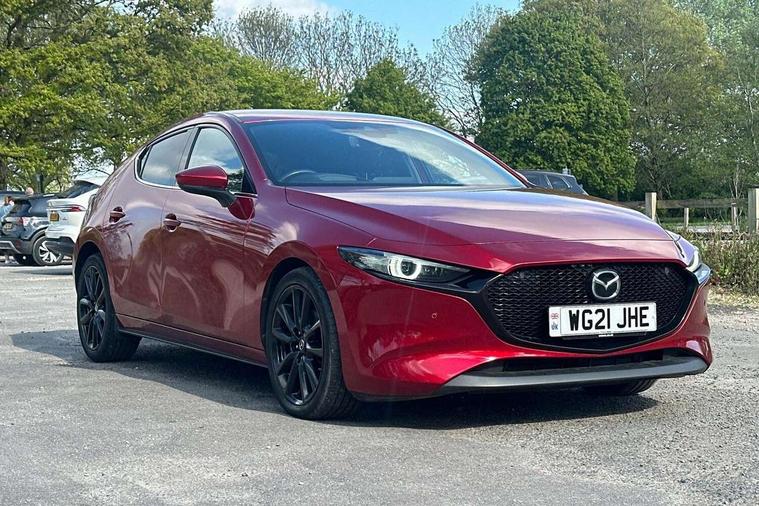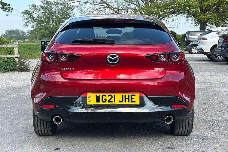 7" colour TFT display, 8.8" Colour centre touch screen display with Mazda Connect infotainment, Apple car play/Android Auto, Audio transfer from bluetooth devices, Blind spot monitoring with rear cross traffic alert, Colour active driving display inc Windscreen projected, Traffic Sign Recognition, turn-by- turn navigation and Mazda Radar Cruise Control information, Digital instrument cluster, Driver attention alert system, E-call with GPS, Emergency stop signalling system, Engine start/stop button, Front and rear parking sensors, Head up Display, Integrated bluetooth with steering wheel mounted controls, Intelligent speed assist, Lane keep assist system (LAS) with Lane departure warning system (LDWS), Mazda Navigation System with european mapping, Mazda Radar Cruise Control, Mobile App interface, Multimedia Commander, PAS, Reversing camera, Service indicator, Start/stop button chrome surround, Trip computer, Mazda Multimedia System with AM / FM / DAB radio, single CD / MP3 with 12 Speaker Bose sound system, bose centerpoint, bassmatch+audiopilot technology, Adaptive LED Headlights, Auto dimming door mirrors, Coming/leaving home lighting function, Dark metallic finish signature wing, Daytime running lights, Door mirrors with adjustable memory and tilt-down function when reversing, Dusk sensing headlights, Electric front/rear windows with one touch/auto up/down, Electrically adjustable/heated/auto power folding door mirrors with integrated indicators, Frameless auto dimming interior rear view mirror, Front body coloured bumper with black/bright lower bezel, Gloss black mesh grille, Gloss black rear roof spoiler, High beam assist, LED headlamps with auto levelling, LED indicator lights, LED third brake light, Piano black window garnish, Privacy glass with dark tinting on rear side windows and rear window, Rain sensing front wipers, Rear fog lights, Rear gloss black lower moulding, Signature LED lights, Signature LED rear combination lights with LED rear turn lights, Speed adjustable rear wash wiper with intermittent wipe, 60/40 split fold down rear seats, 8 way power adjustable driver with door mirror memory and active driving display, Chrome centre bezel steering wheel, Chrome-plated glovebox handle, Driver, Front passenger and two rear grab handles with coathooks, Driver/passenger sunvisors + vanity mirrors (drivers side with ticket holder), Dual zone climate control air conditioning, Electrical power outlet, Folding rear centre armrest with two cup holders, Front and rear courtesy lamps, Front armrest, Front centre console with storage box with tray, lid + 2 cupholders, Front head restraints, Front passengers seat manual slide, recline and height adjustment, Gear shift indicator, Heated steering wheel, Illuminated glovebox, ISOFIX child seat anchorage points attached on outer rear seats, Leather wrapped gear shift knob, Leather wrapped steering wheel, LED interior light, Luggage compartment light, Power driver lumbar adjustment, Reach adjustable steering wheel, Storage - glovebox, driver and front passenger door pockets and roof mounted sunglasses holder, Three height adjustable rear head restraints, Tilt/height adjustable steering wheel, USB charging point, 3 point ELR front seatbelts with pretensioners, 3 rear 3 point seatbelts with ELR, Anti-lock braking system (ABS), Drivers knee airbag, DSC - Dynamic Stability Control, Dual front airbags, EBD - Electronic brakeforce distribution, Electronic parking brake with auto disengage function and auto hold function, Front and rear curtain airbags, Front passenger airbag cut-off switch, Front side airbags, Front smart city brake support, G-Vectoring control plus, Hill launch assist, Intelligent Traction Control system, Mild Hybrid system with regenerative braking, Seatbelt reminder for driver/front passenger and rear seats, Tyre pressure monitoring system (TPMS), Auto door lock when driving, Remote central locking + deadlocks, Smart Keyless entry and start, Thatcham accredited alarm and immobiliser, 18" Black metallic alloy wheels, Emergency tyre repair kit,