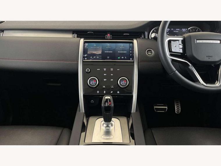 10" touch screen, Adaptive cruise control, Android Auto, Apple CarPlay, Driver condition monitor, eCall emergency call system, Front and rear parking aid, InControl remote premium, Lane keep assist, Locking fuel flap, PAS, Pivi Pro connected navigation system with upgraded Infotainment, Powered tailgate/boot lid, Push button start, Rear collision monitor, Service interval indicator, Traffic sign recognition with adaptive speed limiter, Trip computer, Wade Sensing, All terrain progress control, Coil suspension system, Diesel particulate filter, Dynamic stability control, Terrain Response 2, Bluetooth connectivity including audio streaming, Digital Audio Broadcast radio-DAB, Steering wheel mounted audio controls, 3rd brake light, Automatic headlights, ClearSight interior rear view mirror, Electric front/rear windows, Electric heated/power fold door mirrors with approach lights and auto dimming driver side, Fixed panoramic sunroof with powered sunblind, Front and rear recovery eyes, Heated rear window, Heated windscreen including heated washer jets, No badges, R Dynamic badge, Rain sensing windscreen wipers, Rear fog lights, Rear side wing doors, Rear wing door, Rear wiper, 2 seat bench in 3rd row, 3 seat bench in 2nd row, Bright metal pedals, Centre console with armrest, Footwell lights, Front and rear grab handles, Front passenger isofix child seat attachment, Front passenger seat, Loadspace cover, Loadspace light, Manual third row seats, Overhead lighting console, Overhead stowage for sunglasses, Rear headrests, Satin chrome gearshift paddles, Sunvisors with illuminated vanity mirrors, Tilt/reach adjustable steering wheel, Black exterior pack - Discovery sport, Online pack with data plan - Discovery, 3 point seatbelts on all seats, ABS, Brake hold function, Child locks on rear doors, Collision mitigation braking system, Cornering brake control (CBC), Driver/Front Passenger airbags, Drivers knee airbag, Electronic brake force distribution, Electronic parking brake, Emergency brake assist, ESP + traction control, Hill descent control, Hill launch assist, Pedestrian airbag system, Rear seat ISOFIX, Roll stability control, Side and curtain airbags for front and 2nd row seats, Trailer stability control, Tyre pressure monitoring system, Battery Back Up System (BBUS) with tilt sensor, Global lock and unlock switch on driver door, Intrusion sensor, Keyless entry, Locking wheel nuts, Centre stack rails in noble chrome,