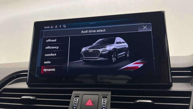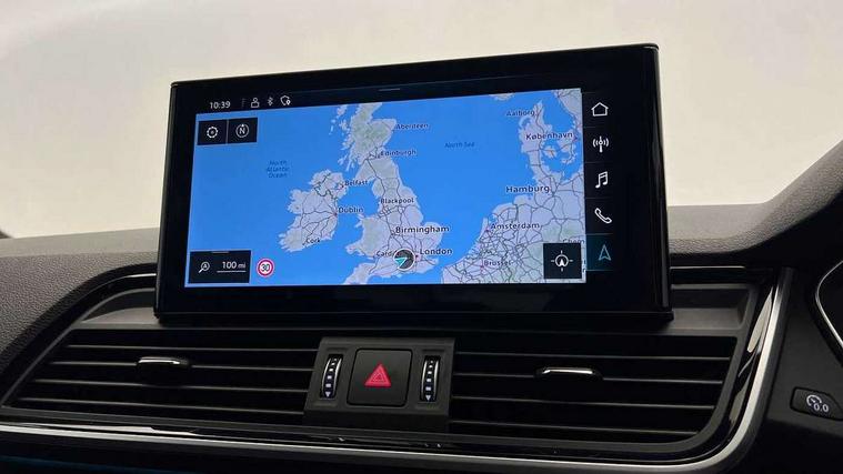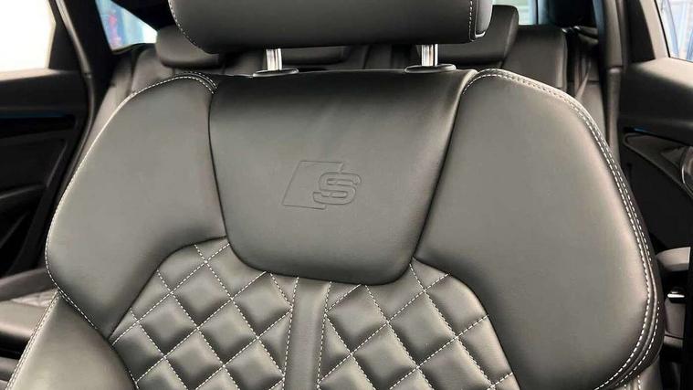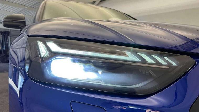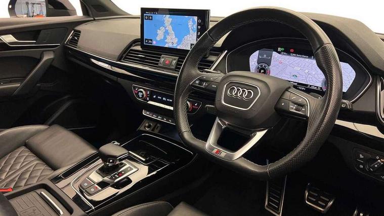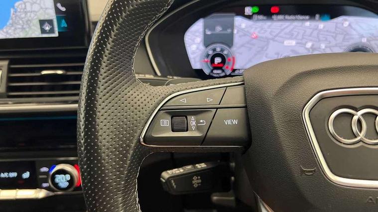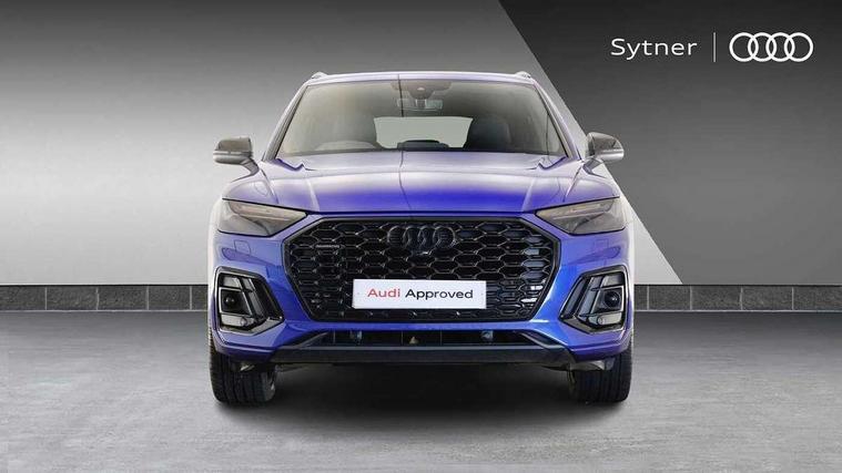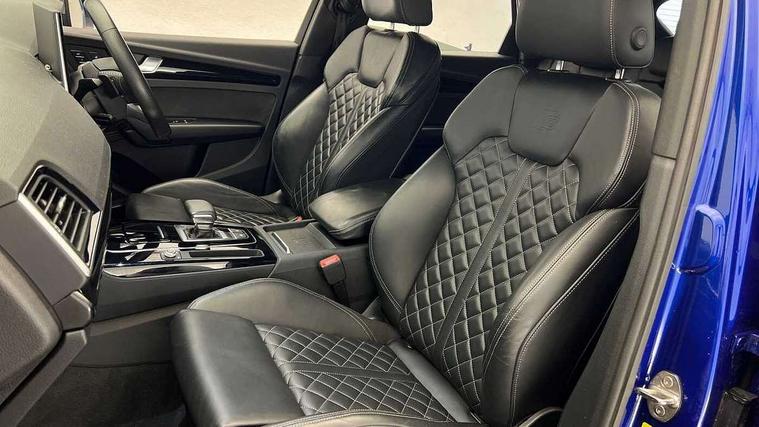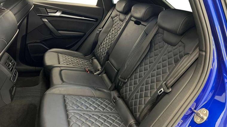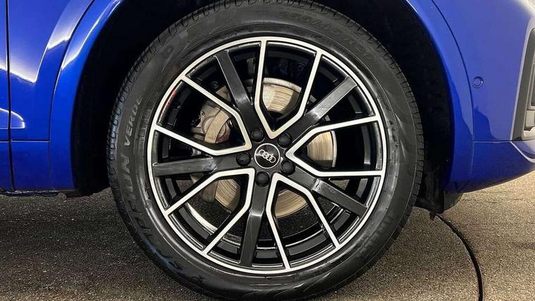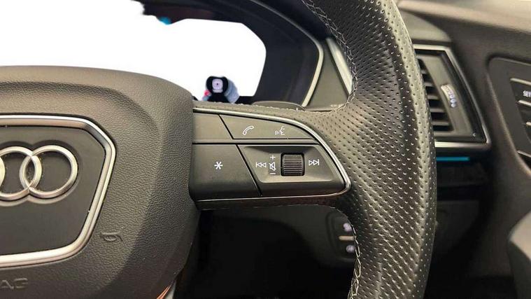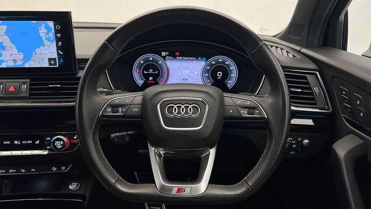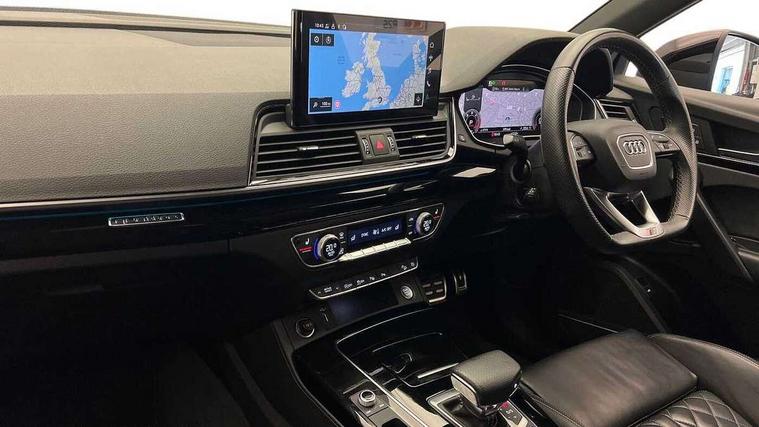 Acoustic front and rear parking sensor, Audi connect safety and service (e-call), Audi drive select, Audi virtual cockpit plus with 12.3" screen and three different layout designs, Audi wireless smartphone interface, Automatic start-stop system with coasting functionality and efficiency programme, Bluetooth interface, Camera based traffic sign recognition, Electro - mechanical power assisted steering, Lane departure warning, MMI navigation plus with 10.1" touch screen, Power tailgate, Reversing camera, Service interval indicator, Voice control system with Audi hotword activation "Hey Audi", Diesel particulate filter, Quattro on demand, S line sports suspension, 8 loudspeakers, DAB Digital radio, Acoustic windscreen, Auto dimming door mirrors, Auto dimming frameless rear view mirror, Automatic headlight adjustment, Automatic headlights and windscreen wipers, Black roof rails, Black styling with black rings, Body colour bumpers, Body colour rear diffuser with matt aluminium silver surrounds, Body colour underbody protection, Chrome plated exhaust trims, Daytime running lights, Door sills in Selenite silver, Electric adjustable/heated/folding door mirrors, Front air inlet surrounds in aluminium, Front and rear electric windows, Front radiator grille in honeycomb design, LED 3rd brake light, LED headlights and LED tail lights, Lower bumpers painted in contrast Manhattan grey, Rear chrome trim strip below lights, Rear privacy glass and rear side windows, Rear side wing doors, Rear wiper, Roof bars, S Line badges on the front wing panels, S Line front and rear bumpers, S Line rear spoiler, S Line side skirts, 2 x USB charging port with aux input socket, 3 rear headrests, Black cloth headlining, Comfort front centre armrest, Contrast stitching on seats, steering wheel and gear lever gaiter, Deluxe 3 zone electronic climate control, Front head restraints, Front sport seats with S embossed logo, Front/rear floor mats, Gear lever in black leather, Heated front seats, Height/reach adjustable steering column, Illuminated door sill trims with S logo, Loading edge protection in stainless steel, Luggage compartment cover, Manual seat adjustment with 4-way electric lumbar support, Single front passenger seat, Stainless steel pedals, Sunvisors with vanity mirrors, Tool kit, Top surface of the rear centre armrest in artificial leather, High gloss pack - Q5, LED interior light pack - Q5, 3 point seatbelts on all seats, 6 airbags - Driver, front passenger, curtain and side airbags, Attention and drowsiness assist, Electrically operated child locks on rear doors, Electromechanical parking brake, Electronic stabilisation control including ABS, ASR and EDL, First aid kit with warning triangle and vests, Front passenger airbag deactivation, Hill descent control, Hill hold assist, ISOFIX child seat mounting for front passenger seat and ISOFIX child seat mounting with Top Tether for outer rear seats, Multi collision brake assist, Pop-up bonnet for pedestrian protection, Pre sense city, Seatbelt monitoring, Tyre pressure warning, Anti theft alarm, Anti-theft wheel bolts, Remote central locking, Remote control key with SAFELOCK and keyless go, Air vents inserts and centre console in gloss black, Tyre repair kit,
