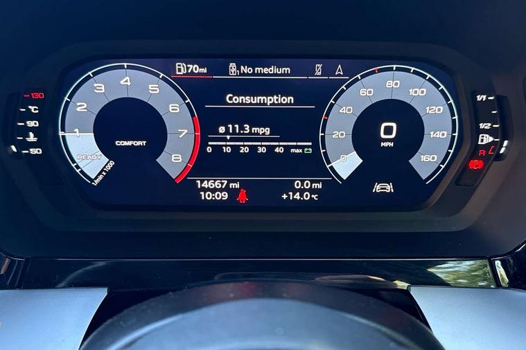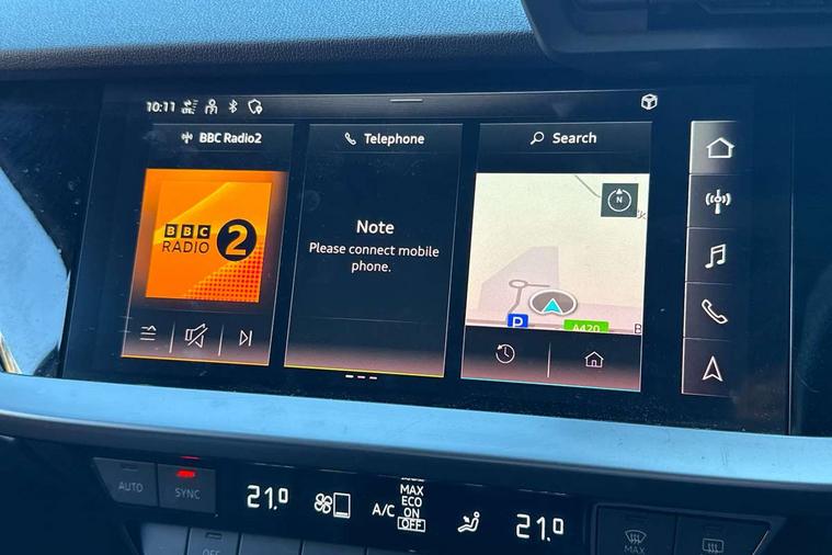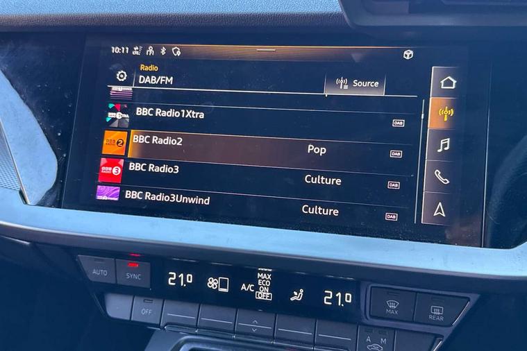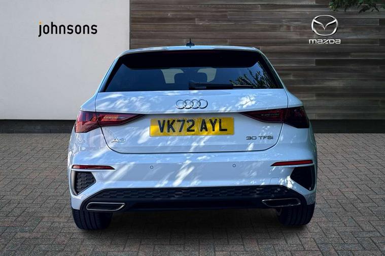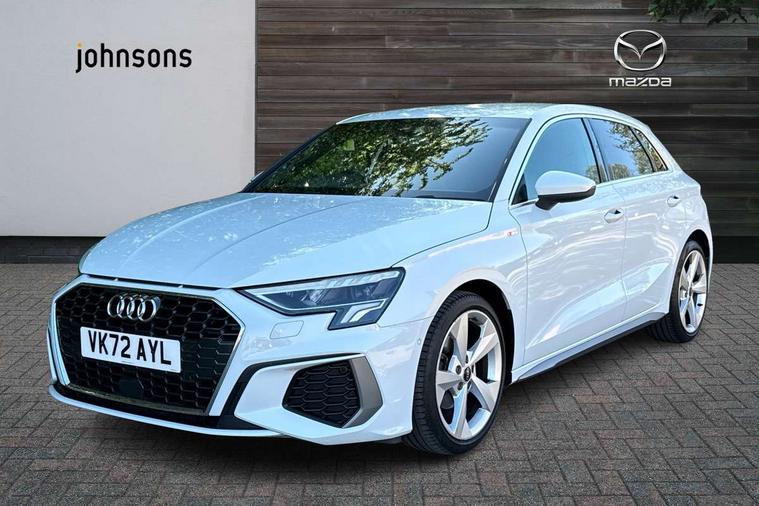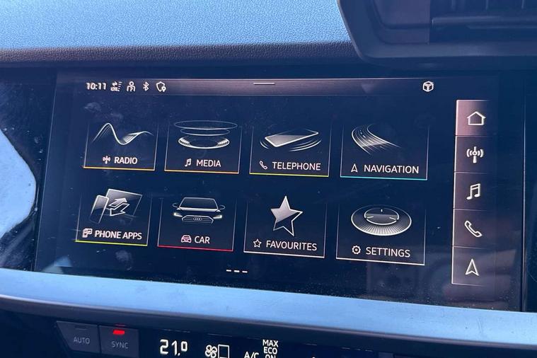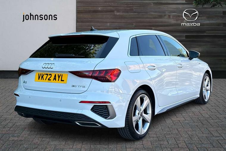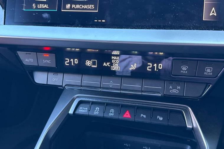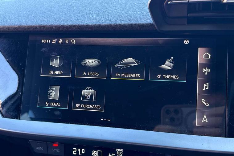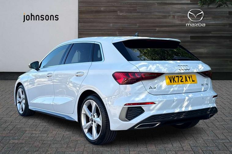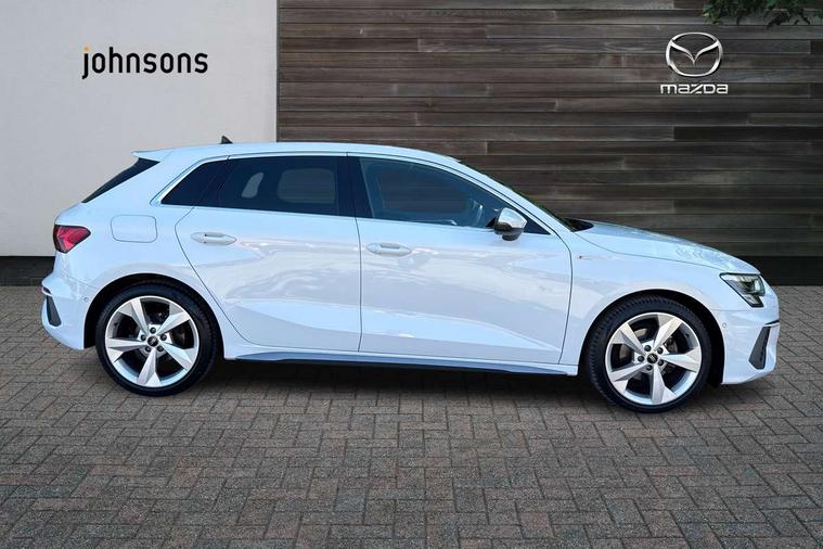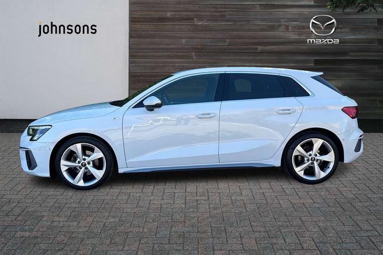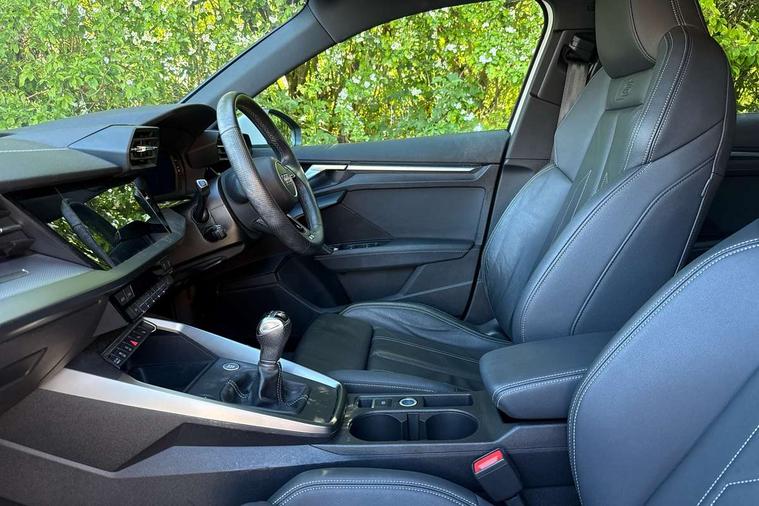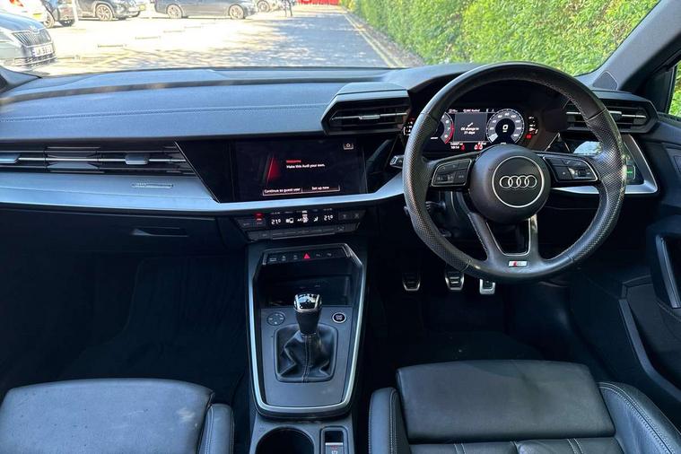 Audi drive select (Auto, Comfort, Dynamic and Individual), Audi smartphone interface, Audi Virtual Cockpit - 10.25" digital and colour instrument cluster, Automatic start/stop system with recuperation, Bluetooth interface, Collision avoidance assistant, Cruise control, e-Call (emergency call), Electromechanical power speed sensitive steering, Lane departure warning system, MMI Navigation Plus with high resolution 10.1" colour touch screen display, Rear parking sensors, Service indicator, Trip computer, Voice control system with natural language interaction, 2xUSB-C connection with data and charging functions, 6 passive loudspeakers, DAB Digital radio, 3rd brake light, Acoustic glass windscreen, Aluminium window trim, Auto dimming frameless rear view mirror, Electrically adjustable/heated/folding/dimming door mirrors with kerb view includes integrated LED indications + kerb view function for passenger side, Front electric windows, Illuminated aluminium inserts front door sills with S logo, LED daytime running lights, LED headlights with LED rear lights and dynamic rear indicators, Light and rain sensors, Privacy glass - dark tinted rear window, rear door and side windows, Rear electric windows, Rear side air outlets in grained matt black, Rear side wing doors, Rear wiper, S line bumpers, S roof spoiler, 12V socket and storage compartment in front centre console, 3 seat bench in 2nd row, 40/20/40 split folding rear seat bench with cupholder, Black cloth headlining, Dual zone electronic climate control, Front and rear centre armrest in leather, Front and rear headrests, Front/rear floor mats, Height and reach adjustable steering wheel, Illuminated vanity mirror, Interior lighting - glove compartment light and right hand side, Luggage compartment floor covering, Manual boot compartment lid, Manually adjustable front seats, Seat side bolsters, Single front passenger seat, Stainless steel pedals and front footrest in black, Twin leather upholstery with front sports seats S embossed logo, Aluminium interior elements pack - A3 Sportback, LED interior lighting pack - A3 Sportback, S line styling pack - A3 Sportback, 3x3 point rear seat belts, Audi pre sense front, Driver and front passenger airbag with passenger airbag deactivation, Electronic Stabilisation Control (ESC) including ABS, ASR and EDL, First aid kit with warning triangle and 2 safety vests, Front side airbags with head airbags and interaction airbag, Pre-sense front with pedestrian and cyclist detection, Seatbelt monitoring, Tyre pressure loss indicator, Anti theft alarm, Anti-theft wheel bolts, Electronically operated child lock, Immobiliser, Remote control central locking, Accent surfaces in the dashboard and centre console in platinum grey silk effect paint finish, Dark spectrum aluminium inlays,