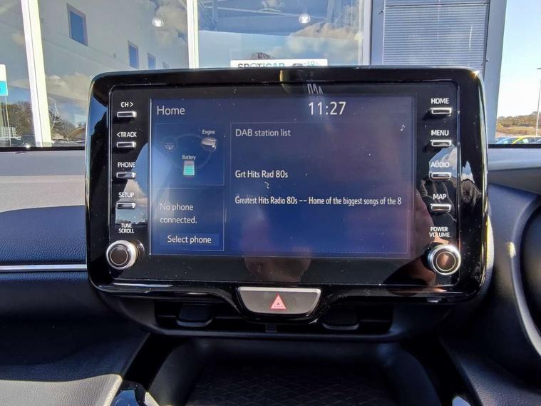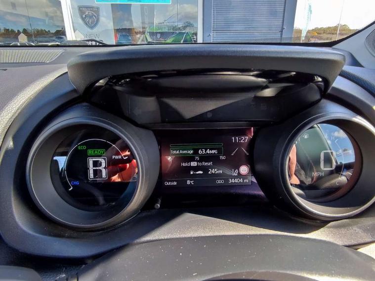 4.2" multi information display, 8" Toyota touch 2 multimedia system with Smartphone integration with Apple CarPlay and Android auto, Adjustable speed limiter, Bluetooth connectivity, Digital speedometer, Driver attention alert system, eCall emergency system, Electric power steering, Full range intelligent adaptive cruise control, Hybrid system indicator, Key reminder warning, Lane trace assist, Multimedia, audio, telephone and voice recognition switches on steering wheel, My T Connected services, Pre-collision system enhanced with emergency steering assist, Reversing camera, Road sign assist - RSA, Steering assisted vehicle stability control, 6 speakers, DAB Digital radio, USB connection, 3rd brake light, Acoustic windscreen glass, Anti-jam protection on power windows, Auto high beam [AHB] with on/off switch, Automatic headlights, Black lower front grille, Black Shark-fin antenna, Black upper front grille, Black wheel arch mouldings, Body colour door handles, Body colour front bumper, Body colour rear bumper, Electric adjustable heated door mirrors, Follow me home headlights, Front and rear electric windows with auto up/down function, Front intermittent wipers, Halogen projector headlights, Headlight cut off reminder, Indicators integrated on door mirrors, Intermittent rear wiper, LED daytime running lights, LED Indicators, Manual headlight levelling, Manually retractable door mirrors, Noise reduction layer on windscreen, Rain sensor, Rear side wing doors, Rear spoiler, Rear window defogger, 12v power outlet - front, 2x Rear coat hooks, 3 seat bench in 2nd row, 3 spoke leather steering wheel, 60/40 split folding rear seat, Adjustable speed limiter switch on steering wheel, Auto air conditioning, Boot light, Central armrest, Driver and front passenger personal lights, Fabric door trim, Fabric upholstery, Front console box, Front cup holders, Front head restraints, Glovebox, Grey roof lining, Height adjustable driver's seat, Height adjustable front passenger seat, ISOFIX child restraint system, Lane departure alert switch on steering control, Leather gearshift, Manual telescopic and tilting steering wheel, Mirror on driver and passenger sun visor, Pollen air filter, Rear head restraints, Single front passenger seat, Soft tonneau cover, 3x3 point rear seat belts, ABS+EBD+Brake assist, Driver and passenger central airbags, Driver and passenger front airbags, Driver and passenger side airbags, Electronic parking brake, Emergency brake light system (EBS), Front seat belt reminder, Hill start assist control (HAC), Passenger airbag on/off switch, Pre-collision system with pedestrian and cyclist detection, Rear door child safety locks, Rear passenger side airbags, Rear seat belt reminder, Traction control, Tyre pressure warning system, Immobiliser, Intrusion alarm, Keyless smart entry with push button start, Power door locks, Power passenger window lock, Remote door lock, 16" 10 spoke alloy wheels, Tyre repair kit,
