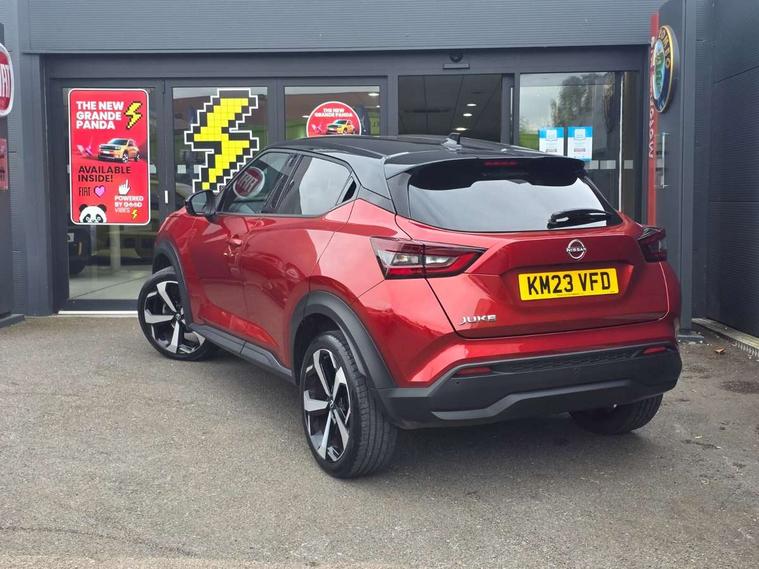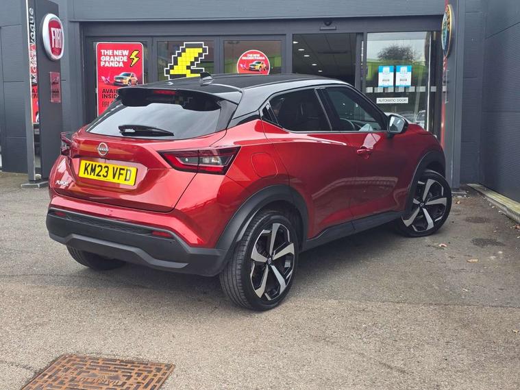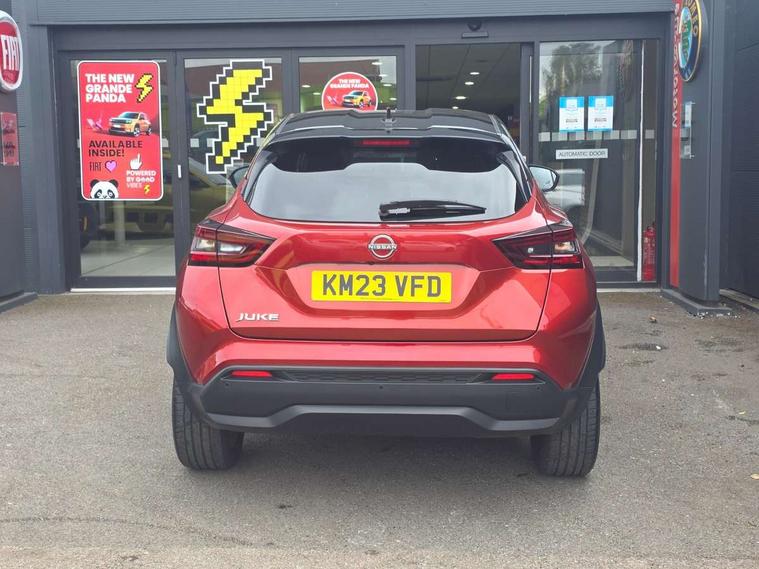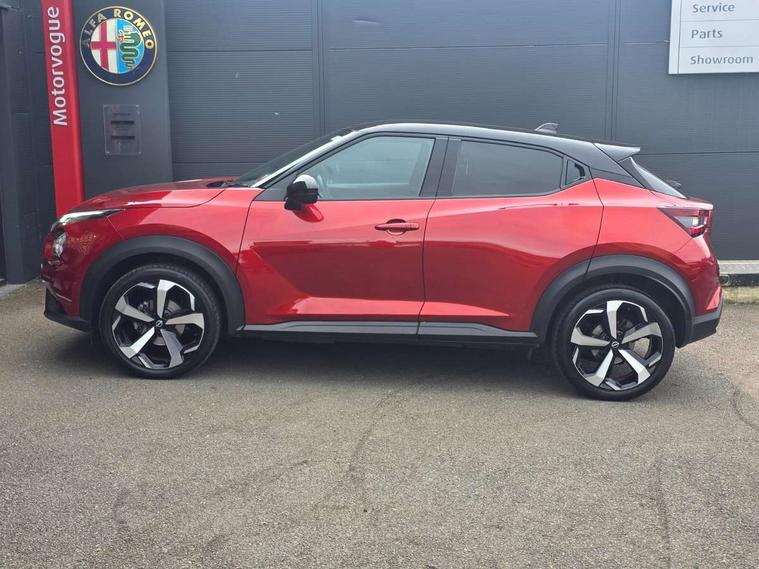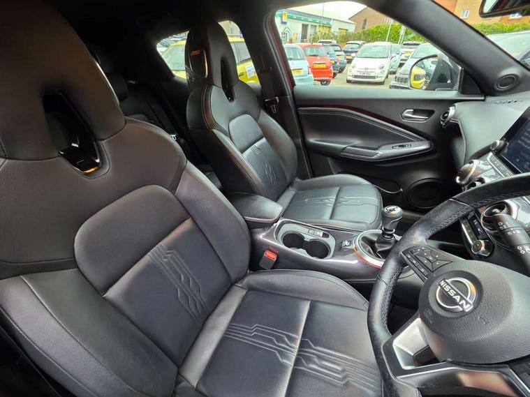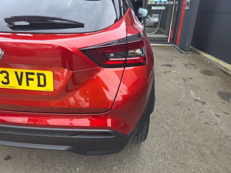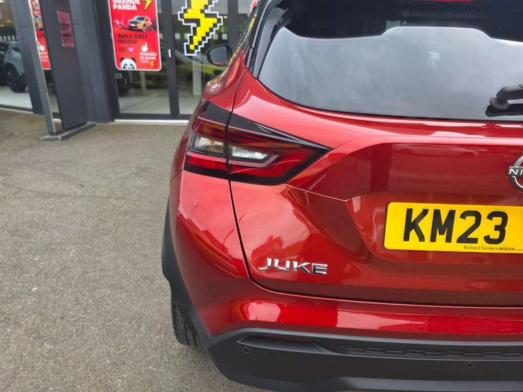7" full colour TFT screen combimeter, Apple CarPlay and Google Android auto, Drive modes select (Eco, normal and sport), Emergency and breakdown call, Front parking sensor, Idle start/stop system, Intelligent lane intervention, Lane departure warning system, Nissan connect 8" touch screen entertainment system, Nissan connect nav with TomTom traffic, Nissan connect services and Wifi connection, Outside temperature sensor, Power Steering, Rear parking sensor, Traffic sign recognition, Trip computer, Voice recognition, Gasoline particulate filter, 10 Bose speakers 6 speakers and 2 headrest speakers for driver/passenger seats, Bluetooth system, USB, Aux-in and 12V socket, Bose personal sound stage control, DAB Digital radio, Rear console USB port, Auto dimming interior rear view mirror, Auto headlights, Automatic hazard signal with emergency stop signal, Body colour bumpers, Body colour door handles, Electrically adjustable door mirrors with integrated indicators, Follow me home headlights, Front and rear electric window with one touch driver window, Heated and auto folding door mirrors, High beam assist, LED daytime running lights, LED front fog lights, LED headlamps, LED rear fog lamp, LED rear lamps, Rain sensor windscreen wipers, Rear privacy glass, Rear side wing doors, Rear wiper, Thermaclear heated windscreen, Three blink turn signal, 3 height adjustable rear headrests, 3 seat bench in 2nd row, 60/40 split folding rear seat, Automatic climate control, Card holder on driver sunvisor, Door ambient lighting, Driver and passenger sliding and reclining seats, Driver seat back pocket, Driver side rear coat hanger, Driver/passenger sunvisors and vanity mirrors, Front and rear cabin lights, Front armrest, Front door pockets with bottle holders, Front head restraints, Front passenger isofix child seat anchorage point, Front/rear passenger grab handles, Gear console ambient circle lighting, Grey synthetic leather kneepad, Heated front seats, Height adjustable driver's seat, Height adjustable passenger seat, Internal chrome door handles, Leather gearshift knob, Leather steering wheel, Luggage board, Luggage space lighting, Monoform sporty seats, Multifunction steering wheel, Passenger seat back pocket, Rear door bottle holders, Single front passenger seat, Synthetic leather upholstery, Telescopic steering wheel adjustment, Two cupholders in front centre console, Two rear isofix child seat anchorage points with top tether, Welcome light and console tray ambient lighting, Advanced safety shield pack - Juke, ABS with EBD and brake assist, Active ride control, Active Trace Control, Driver and passenger airbags, Driver and passenger side airbags, Electric handbrake with auto hold function, Electronic Stability Programme (ESP), Front and rear curtain airbags, Height adjustable seatbelts, Hill start assist, Intelligent emergency braking with pedestrian and cyclist recognition, Rear door child safety locks, Seatbelt reminder for driver/front passenger and rear seats, Single tone horn, Three 3 point rear seatbelts, Traction control, Tyre pressure monitoring system, VDC Dynamic Vehicle Control, Ventilated rear brake discs, Alarm, Immobiliser, Intelligent key and start push button with walk away lock and approach unlock functions, Remote central locking,
