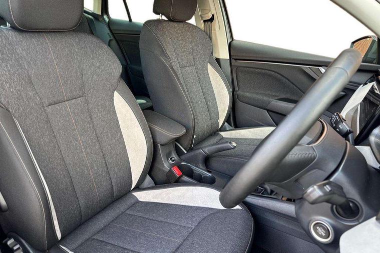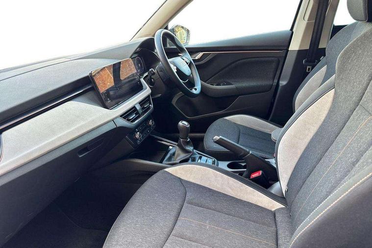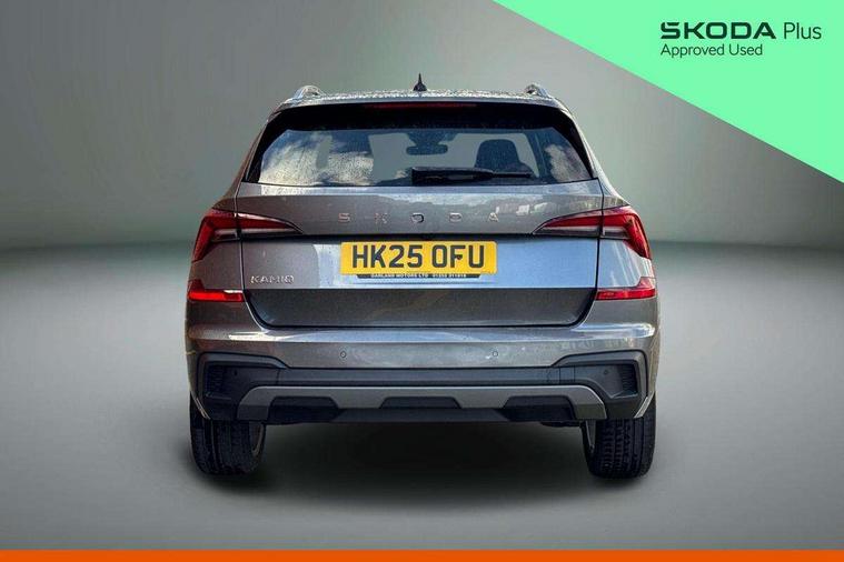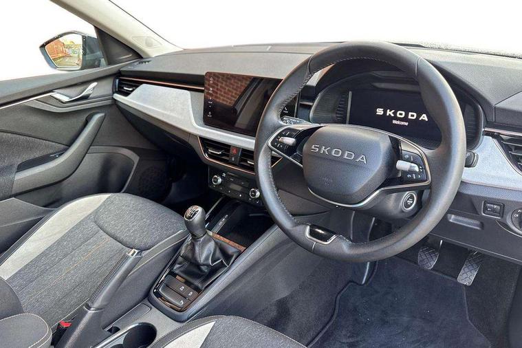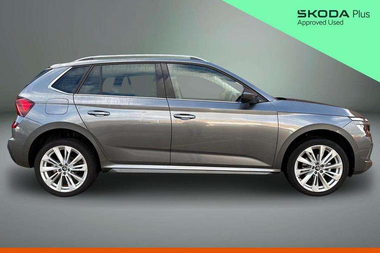 Advanced driver attention and drowsiness monitor, Bluetooth system, E-call, Front assist system, PAS, Rear parking sensors, Rear view camera, Service indicator, Speed limiter, Traffic sign recognition, Virtual cockpit with 10.25" display, Voice control system, Wireless smartlink, 4 USB C ports, 8 Speakers, 9.2" Skoda navigation display, DAB Digital radio, Auto dimming rear view mirror, Automatic headlight control with coming home and leaving home feature, Body colour bumpers, Body colour door mirrors and handles, Chrome grille surround, Chrome roof rails with chrome window surround, Front and rear electric windows, Heated rear window, LED daytime running lights, LED high beam, LED low beam, LED third brake light, Light sensors, Privacy glass, Rear side wing doors, Rear wiper, Ticket holder inside windscreen, 12V socket in luggage compartment, 3 seat bench in 2nd row, Accent black door inserts, Ambient lighting in white/red, Cargo elements, Chrome inner door handles, Copper hotstamping, Driver and passenger sun visors with vanity mirror, Dual zone climate control, Front and rear roof lights, Front centre armrest, Front head restraints, Glove compartment with illumination, Height adjustable driver seat, Height adjustable front passenger seat, Ice scraper, Inner circulation control with pollen filter, ISOFIX on front passenger seat, Isofix preparation for back seats, Leather gearknob and handbrake lever, Lodge cloth upholstery, Manual lumbar support for front seats, Net package and top tether hooks in boot space, Net under rear shelf, Overhead glasses storage compartment, Pocket on the back of both front seats include mobile phone pockets, Rake/reach adjustable steering wheel, Reading lights, Rear centre armrests, Single front passenger seat, Suedia grey decor inserts, Textile floor mats, Third rear headrest, Top tether for front passenger seat, Umbrella in driver's door, Convenience pack - Kamiq, 3x3 point rear seatbelts, Airbags - driver and front passenger, Disc brakes, ESP, Extended and predictive pedestrian/cyclist protection, Front passenger airbag deactivation switch, Front side airbags with curtain airbags, Hill hold control, Manual leather parking brake, Manual rear child locks, One tone horn, Seatbelt reminder for driver an co-driver, Traction control, Tyre pressure monitor, Anti-theft alarm system with interior monitoring, backup horn, towing protection and remote central locking with SAFE system, Anti-theft wheel bolts, Electronic engine immobilizer,