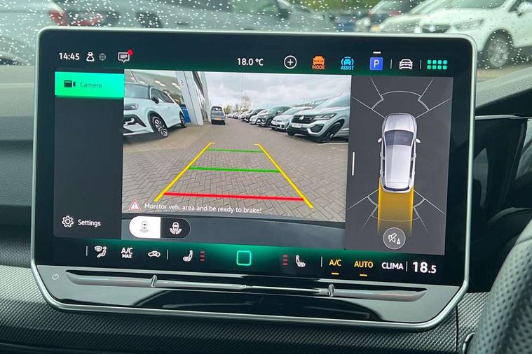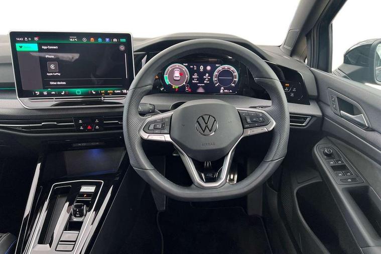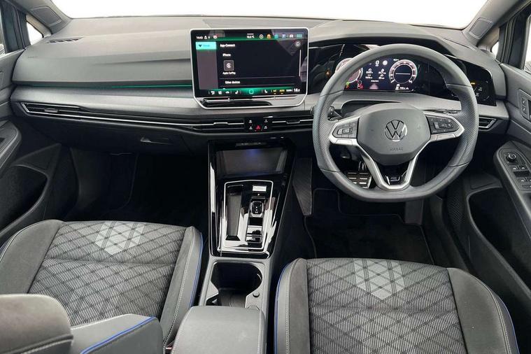 Activated carbon canister, Adaptive cruise control (ACC), Advanced driver attention and drowsiness monitor, Dynamic road sign display, Dynamic steering, E-Sim card for online connectivity, eCall emergency call system, Multi-color Digital cockpit pro, selection of different info profile possible, Multifunction front facing camera for distance control, Navigation system, Oncoming vehicle braking when turning including swerve support, Speed limiter, Speedo, rev counter, electronic odometer, trip, service interval display, exterior temperature and fuel gauge, Traffic jam assist, Voice enhancer and voice control, Warning signal and warning light for front and rear seatbelts not fastened, We connect plus preparation, We connect preparation, Wireless app connect, Diesel particulate filter, Start-stop system with battery regeneration (recuperation - energy recovery during braking), XDS electronic differential lock for improved traction and handling, 2 USB C ports in front, 2 USB charging sockets on the centre console in the rear charging capacity upto 45W, Digital radio reception (DAB), Diversity antenna for FM reception, Gaming platform via car app, Infotainment system with 12.9" display, Mobile phone interface with inductive charging feature, 3rd brake light, Auto dimming rear view mirror, Automatic headlamp activation with Coming home and Leaving home feature, Body colored bumpers in R-Line style, Body colour door handles, Exterior ambient lighting, Exterior mirrors convex on the left and aspherical on the right, Front and rear electric windows, Heat insulating windshield made of laminated glass, LED separate daytime running light, Rain sensor, Rear exhaust tailpipe, Rear fog light on one side and reversing lights on both sides, Rear side wing doors, Rear windscreen washer and wiper with interval delay, Remote electrically foldable door mirrors, puddle lights and reverse activated passenger's door mirror, Volkswagen logo in front, illuminated lighting animation with wake up/goodbye scenario and illuminated door handles, Welcome light with surround lighting, 12V socket in front centre console, 12V socket in luggage compartment, 3 rear head restraints, 3 seat bench in 2nd row, Ambient lighting with 30 colour including LED light unit in front footwell with selectable light colour, Black roof lining, Brushed stainless steel pedals, Chrome plated radiator grille inserts, air vent surrounds and light switch surrounds, Front + rear black carpet mats, Front centre armrest, Integrated front head restraints, ISOFIX anchors for child seats on outer rear bench seats and on front passanger seat compatible for i-Size, Luggage compartment lighting, Plastic gear knob, Premium sports seats in front, Rear cupholder and loadthough, Single front passenger seat, Split folding backrest with centre armrest and unsplit rear seat bench, Sun visors with illuminated vanity mirrors, Titanium black instrument panel, Black exterior Styling package with Matrix LED headlights - Golf, 3 point height adj front seatbelts + pretensioners, 3 rear three point seatbelts, ABS, Autonomous emergency braking front assist with pedestrian and cyclist monitoring, Child locks on rear doors, Driver and front passenger airbag with front passenger airbag deactivation, Electronic parking brake with auto hold, ESC (Electronic Stability Control), Extended pedestrian protection measures, Hill start assist, Rear disc brakes, Two tone horn, Tyre pressure loss indicator, Volkswagen roadside assistance, Anti theft wheel bolts, Preparation for alcohol interlock, Decorative inserts carbon grey for dashboard and front door trim panels, 18" Leeds alloy wheels,