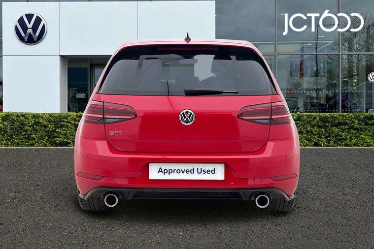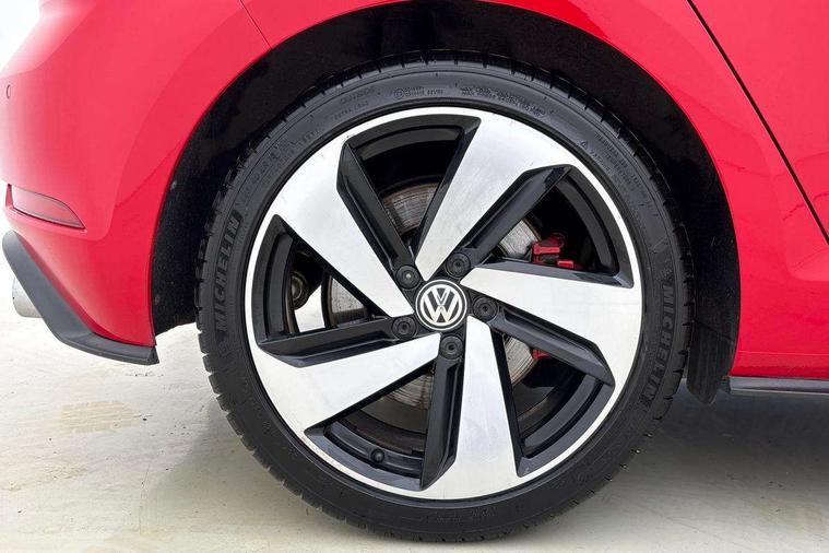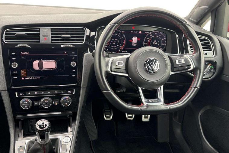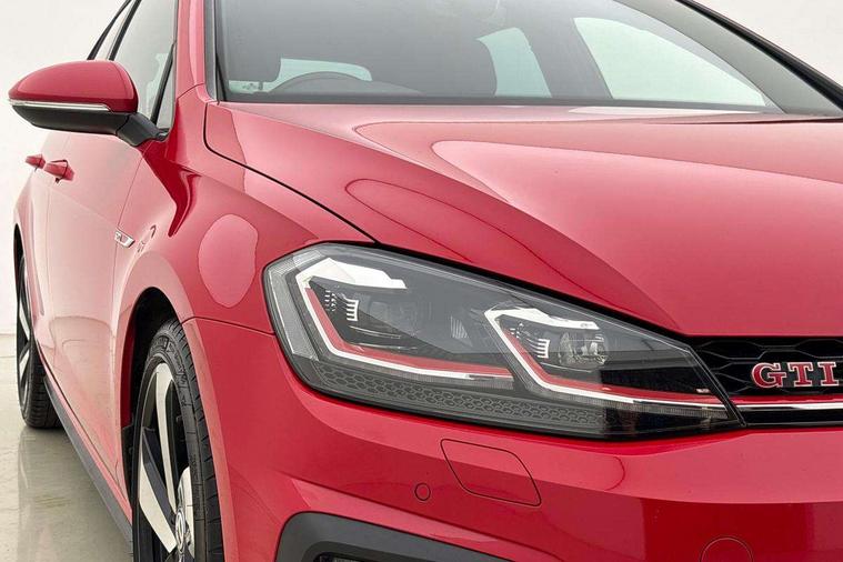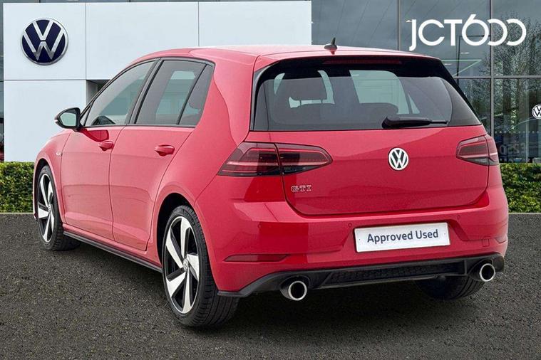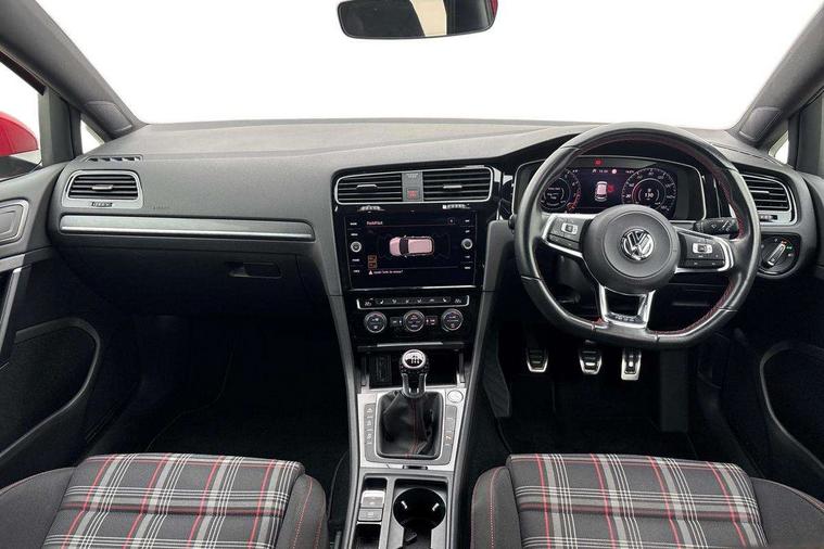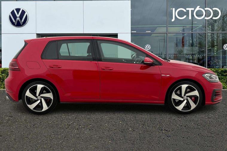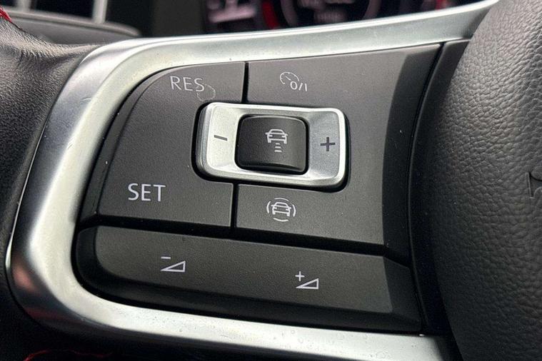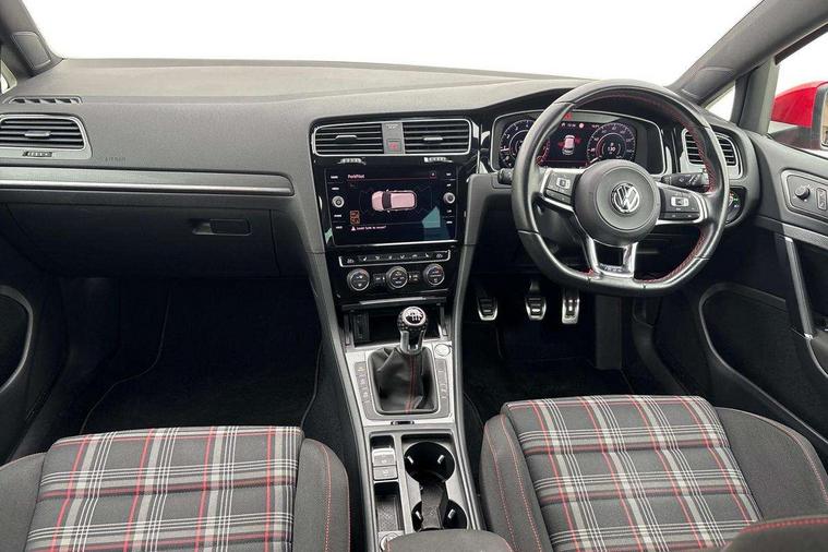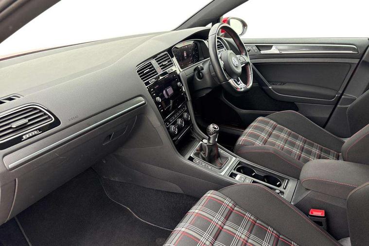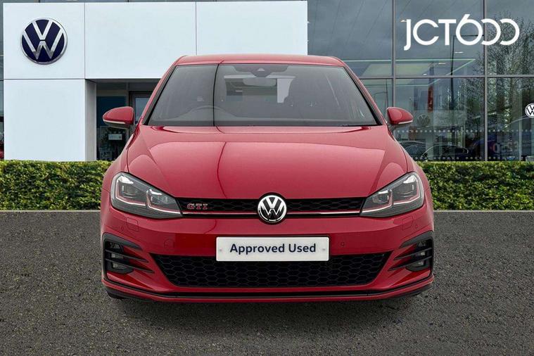 'Lights On' Reminder warning buzzer, ACC - Adaptive cruise control with front assist, forward collision warning, distance monitoring, city emergency brake and speed limiter, Bluetooth telephone and audio connection for compatible devices, Brake pad wear indicator warning light, Driver alert system, Driver profile selection, Driving Mode Selection with four preset modes - Eco, normal, sport or individual modes, Instrument cluster in white, Lane assist with dynamic light assist and traffic sign recognition, Multifunction computer with visual gear change recommendation for fuel consumption, Power assisted speed sensitive electro-mechanical steering, Push tank flap, Rear view camera, Speedo, rev counter, electronic odometer, trip, service interval display, exterior temperature and fuel gauge, Stop/start system, Warning buzzer and light for front seatbelts unfastened, Battery regeneration during braking, Limited slip differential, Lowered sports suspension, XDS electronic differential lock, Composition media system, DAB Digital radio receiver, MP3/WMA compatability, Multi device interface (MDI) with USB connection, Premium USB cable in choice of either Apple or Android smartphone compatibility, SD card slot, SMS Functionality, USB and SD card connectivity, Volkswagen media control, 3D-LED tinted rear light clusters with indicator sweep function, Black rear diffuser, Body colour door handles, Body colour door mirrors with integrated indicators, Body colour rear roof spoiler, Body colour sports bumpers, Dusk sensor + automatic driving lights, Electric front windows, Electric rear windows, Electrically adjustable and heated door mirrors, Fully galvanised body, GTI logo in red on front and back, GTI logo lettering on front wings on right and left, Heated rear windscreen, High level 3rd brake light incorporating LED Technology, Honeycomb radiator grille - black, LED daytime running lights, LED front fog lights with static cornering light function, LED headlights with dynamic light assist, Rear fog lamp, Rear window aerial, Rear window wash/wipe with intermittent wipe, Reflectors in all doors, Shiny black aerofoil downside, Sill extensions, Twin exhaust tailpipe, Windscreen wipers/ intermittent wipe + 4 position delay, 12V socket in luggage compartment, 3 rear headrests, 4 load lashing points in luggage compartment, 60/40 split folding rear seat backrest, Bag hook in luggage compartment x 2, Black headlining, Climate control - 2 zone electronic air conditioning with automatic air recirculation and allergy filter, Cooled glovebox, Dust/pollen filter, Front + rear carpet mats, Front centre armrest with storage compartment and two rear air vents, Front seat back storage pockets, Grab handles front x 2, rear x 2 with integrated coat hooks, Height and reach adjustable steering wheel, Illuminated door sills, Illuminated vanity mirrors, Instrument lighting white adjustable panel illumination, Interior light delay, Isofix preparation for 2 rear child seats, Leather gear knob and handbrake grip, Load through provision with rear centre armrest and cupholders x2, Luggage compartment lighting, Multifunction leather steering wheel with GTI logo and selector lever boot grip with red stitching, Overhead storage box, Stainless steel pedals, Storage box in luggage compartment, Storage compartment in roof console with cover, Storage compartments in front doors, Storage compartments in rear doors, Stowable luggage compartment cover, Sun visors, Variable boot floor, height adjustable and removable, Ambient lighting pack - Golf, Convenience Pack - Golf, Light and Sight pack - Golf, Mirror pack - Golf, 3 rear three point seatbelts, Airbags - Driver's and front passenger's, curtain airbag, Driver's knee, front side impact and passenger's airbag deactivation switch, Anti-lock Braking System (ABS) with Hydraulic Brake Assist (HBA), Automatic post collision braking system, Child locks on rear doors, Driver/Passenger optimised head restraints, Electronic parking brake with auto hold, Electronic stability control (ESC) including Electronic differential lock (EDL) and ASR (Traction control) with deactivation via infotainment system, Front ventilated disc brakes and rear disc brakes, Pre crash preventive occupant protection, Red brake calipers, Three point height adjustable front seatbelts with tensioners, Tyre pressure loss indicator, Alarm with interior protection and deactivation via infotainment system, Electronic engine immobiliser, Keyless entry with start/stop button on centre console, Remote central locking with 2 remote folding keys, Chrome plated air vent surround, Chrome plated electric mirror adjustment light switch surround, Honeycomb black decorative inserts, Piano black centre console, Steel space saver spare wheel,