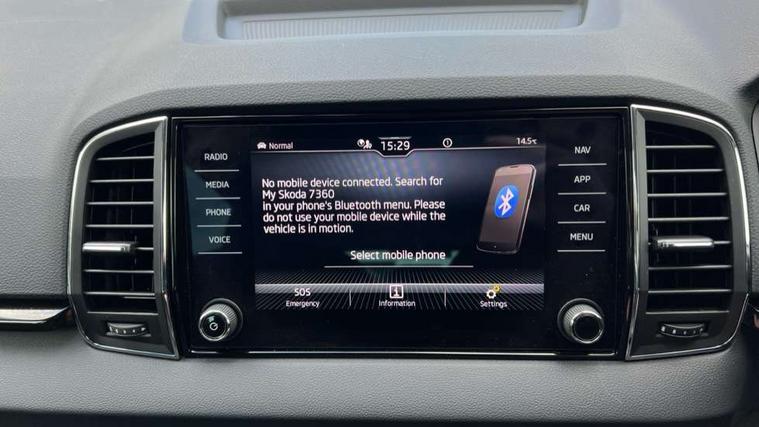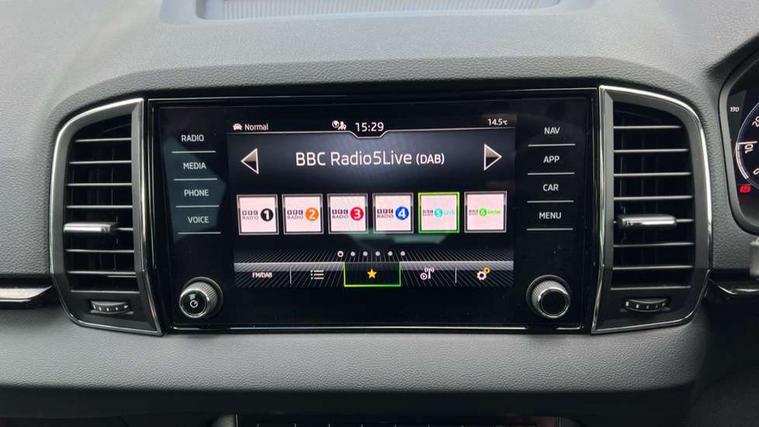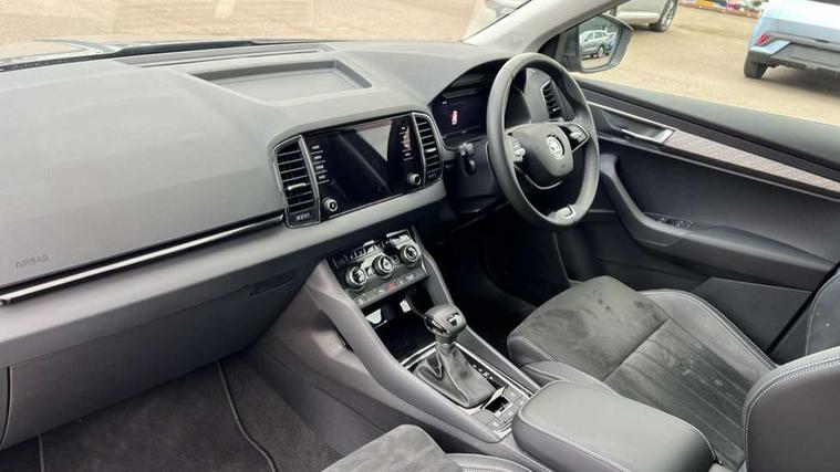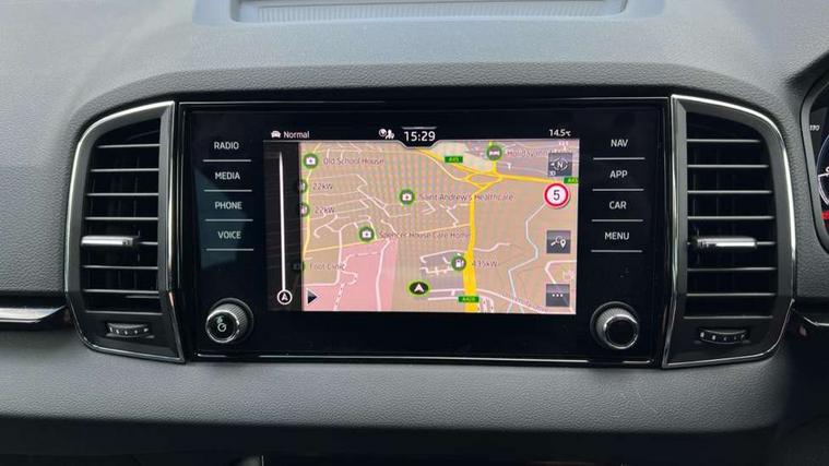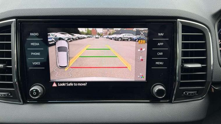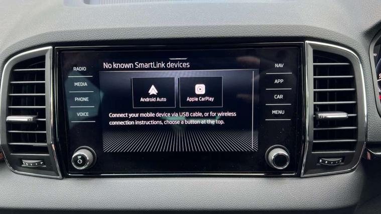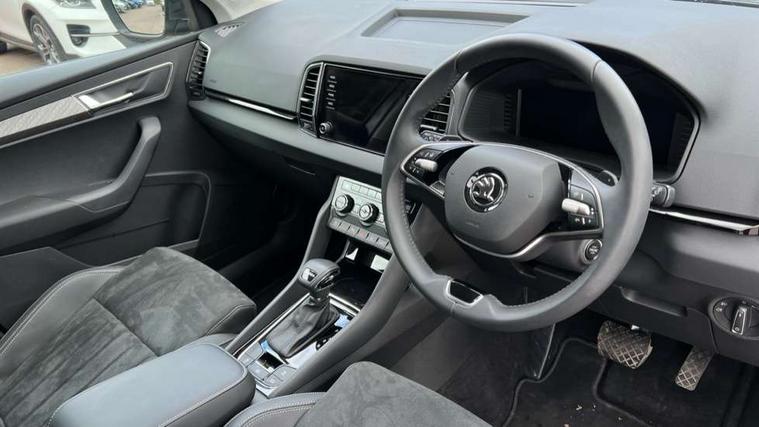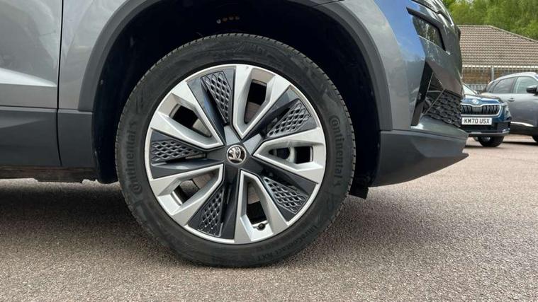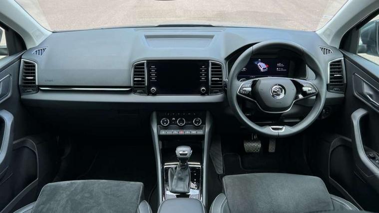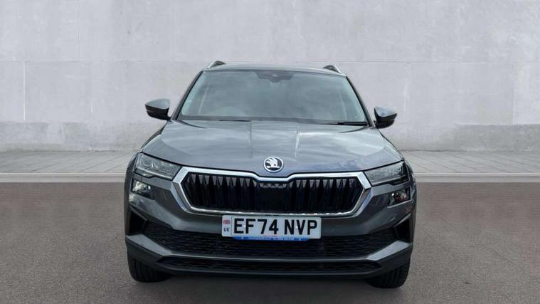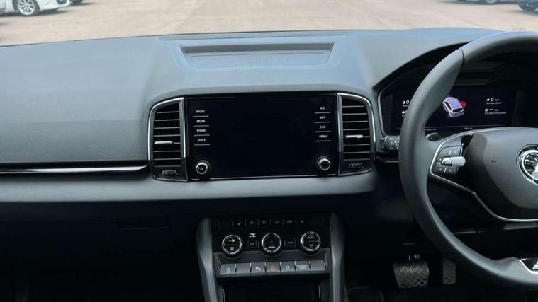 8" Digital display, Advanced driver attention and drowsiness monitor, Emergency services call system, Outside temperature gauge, Sensor for driver assistance systems, Service interval indicator, SmartLink wireless for Apple and wired for Android, Start/stop system with regenerative braking, USB C Port x 2 in front centre console, Virtual Cockpit - 10.25" digital display, Wireless smartphone charging, DAB radio with Bluetooth, USB connection, Acoustic glass, Aero front windscreen wipers with intermittent function, Auto dimming rear view mirror with light and rain sensors, Black electric window control buttons, Body colour door mirrors and handles, Electric front and rear windows with child proof lock, Heated rear windscreen, LED daytime running lights, LED rear lights with high functionality welcome effect and dynamic indicators, Light assistant (coming/leaving home/tunnel light), Plastic scuff plates in door apertures, Privacy glass, Rear side wing doors, Rear spoiler, Rear window wiper with washer system and intermittent control, Safety reflectors on front doors, Third brake light, 1.5 litre bottle holders in driver and front passenger door panels, 12V socket in boot, 12v socket in front centre armrest with storage compartment and rear air vents, 2 spoke leather heated multifunction steering wheel with DSG paddles, 2 x Tablet holder, 3 rear height adjustable headrests, 3 seat bench in 2nd row, 4 foldable roof handles with rear coat hooks, Black floor carpet, Chrome inner door handles, Foldable hooks in the boot, Front head restraints, Height adjustable front three point seats belts with tensioners, Height/reach adjust steering wheel, Ice scraper, Illuminated glovebox, Illuminated luggage compartment, Interior noise suppression, Isofix child seat preparation for front passenger seat, Isofix child seat preparation outer rear, Manual lumbar support for front seats, Pearl grey interior ceiling, Pen holder, Pollen filter, Rear boot cover, Rear reading lights, Rubbish bin door, Safety vest holder, Single front passenger seat, Storage box in upper central dashboard closed, Sunvisors with illuminated vanity mirrors, Textile floor mats, Ticket holder, Design Pack - Karoq, Non Smokers pack, Parking pack - Karoq, Automatic door unlocking in case of crash, Automatic fuel cut off in case of crash, Driver airbag, Electronic parking brake with auto hold function, Emergency rear braking signal, ESC (incl. ABS+MSR+ASR+EDS+HBA+DSR+RBS+MKB), Front side airbags, Head airbags, Hill hold control, Knee airbags, Passenger airbag with switch-off function, Pedestrian monitor, Seatbelt reminder signalisation and pretensioner for all seats, Three point seatbelts rear, Two tone horn, Tyre pressure monitor, Alarm with interior monitoring, back up horn and tilt sensor with safe function, Electronic engine immobiliser, Keyless entry and start/stop, Remote central locking with 2 remote folding keys, Black centre console, Chrome framed air vents, Satin black dashboard, Anti-theft wheel bolts protection, Breakdown and tool kit,