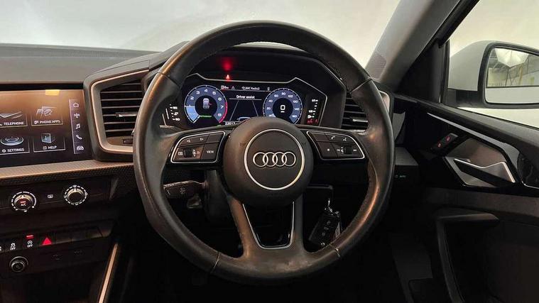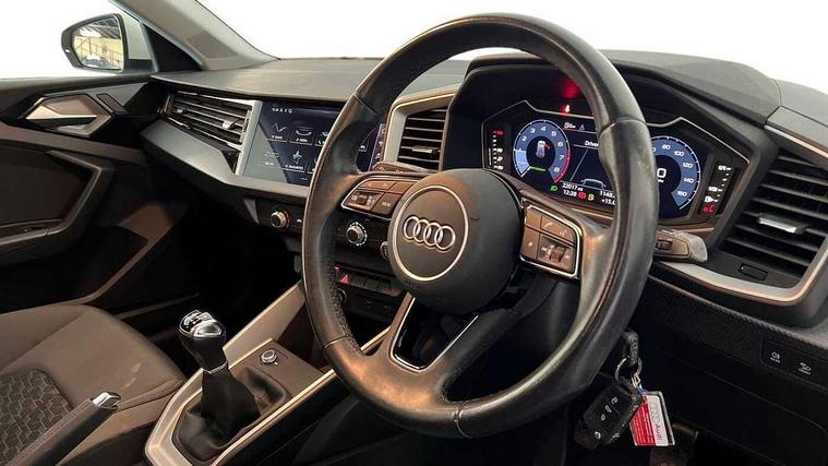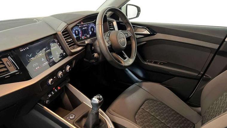 10.25" Digital instrument cluster display classis style instrument dials + speed, odometer, time, outside temperature, telephone menu + fuel level warning, Audi drive select - power steering assistance + engine, Audi smartphone interface with connect compatible smartphone via USB directly MMI display + Nav, music, third party apps controlled via MMI controller, Automatic start/stop system, Bluetooth interface, Cruise control, Driver's information system, Electromechanical power steering, Emergency e-call, Lane departure warning system, Rear parking sensor, Service interval indicator, Speed limiter, Voice control system, Washer fluid level indicator, Dynamic suspension, 2 x USB type C connection points, 6 passive loudspeakers, DAB Digital radio, MMI radio plus with 10.1" colour MMI display screen and MMI touch, Auto dimming rear view mirror, Body coloured bumpers, Body coloured door mirrors, Electric front and rear windows, Electrically adjustable, heated, folding door mirrors with integrated LED side indicator, Front side air inlets in grained matt black and C frame in anthracite black, Heat insulating glass windscreen and side windows, Heated rear windscreen, High level LED brake light, LED headlights with LED rear lights + dynamic rear indicators + headlight adjustment and high beam, turning light + LED daytime running lights, Radiator grille and rear diffuser in matt anthracite black, Radiator protective grille frame in matt aluminium silver, Rain and light sensors, Rear fog lights, Rear side wing doors, Rear wiper, Side front spoiler lips in grained matt black, 12V socket in centre console with two cup holders, 3 rear seats with headrests, 3 seat bench in 2nd row, 3 spoke leather multifunction plus steering wheel, 40:60 Split folding rear seat or folded fully, Black front and rear floor mats, Door sill trims with aluminium inlay, Driver and passenger seat with manual height adjust with forward and backwards adjustment, Front head restraints, Front passenger seat, Grey cloth headlining, Height and reach adjustable steering wheel, ISOFIX child seat mounting for front passenger and outer rear seats including top tether attachment point of outer rear seats, Leather gear knob with aluminium trim, Leather handbrake grip, Luggage compartment light with front and rear reading lights, Manual air conditioning, Manually adjustable lumbar support in front seats, Novum cloth upholstery with front sport seats, Luggage compartment pack - A1, 3x3 point rear seatbelts, Audi pre-sense front with pedestrain and cyclist recognition, Brake assist function, Driver and front passenger airbag with front side and head airbags, Electronic Stability Control including ABS, EBD, ASR and EDL, Front passenger airbag deactivation switch, Hill hold assist, Manual rear child locks, Seatbelt height adjustment for front seats, Seatbelt monitoring, Tyre pressure warning light, Warning triangle and first aid kit, Anti theft alarm, Anti theft wheel bolts and loose wheel warning, Immobiliser, Remote central locking with 2 foldaway keys, Aluminium trim for control switches, air vents and digital instrument cluster, Black dashboard, Silver grey accent areas including air vents, door handle recesses and centre console in diamond paint finish, Slate grey inlays polygon structure in fine paint finish,