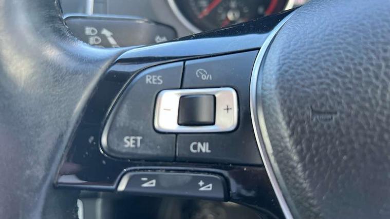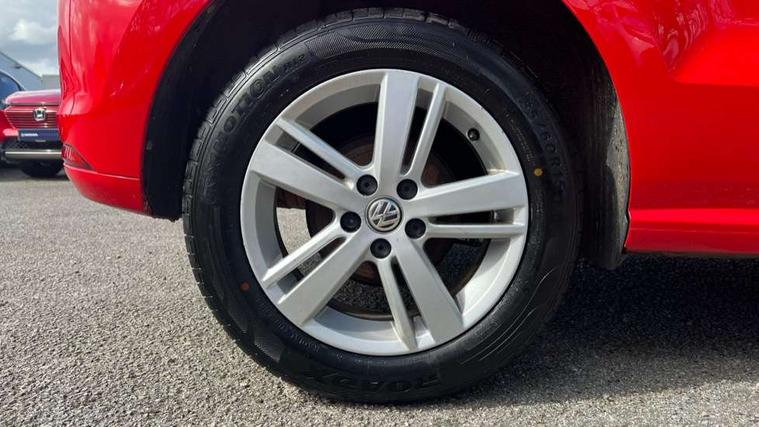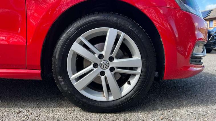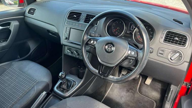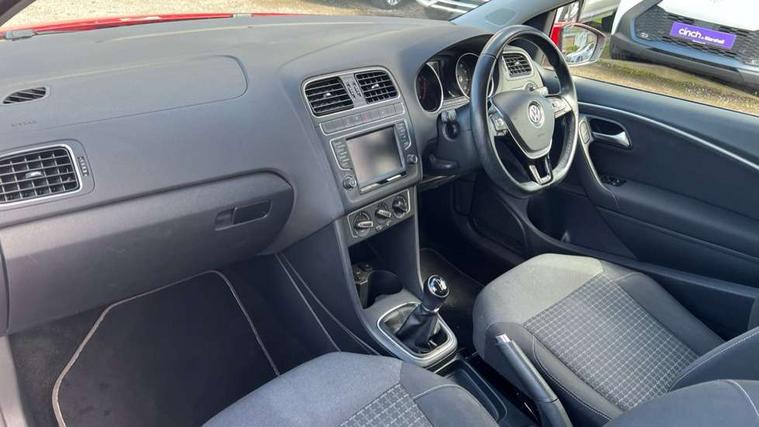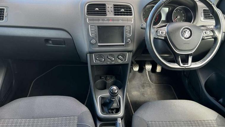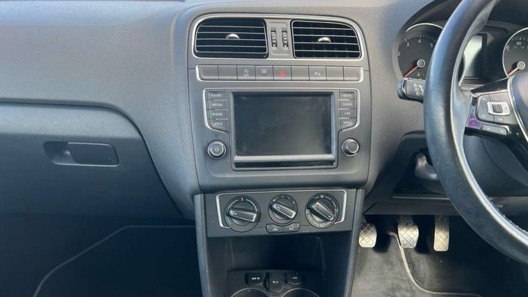 App-Connect, Bluetooth Telephone preparation, Cruise control + speed limiter, Driver alert system, Multi function display, Multifunction computer, PAS - speed related, Service interval indicator, Ultrasonic front and rear optical and audible parking sensors, Warning buzzer and light for front seatbelts unfastened, 6 speakers, Composition media system with radio, glovebox mounted CD, colour touch screen, SD card, aux-in, USB, multimedia interface, DAB Digital radio, Black grille with chrome surround, Body colour bumpers, Body colour door handles, Body colour door mirrors, Body coloured side sills, Chrome trimmed front air intake surrounds, Electric folding door mirrors, Electric front windows, Electric operated/heated door mirrors, Front fog lights with static cornering function, Front wash/wipe with interval delay, Heat insulated tinted glass 65% light absorbing from B pillar back, Heated rear window with auto timer, Rear windscreen washer and wiper with interval delay, 12V power socket in centre console, 2 bag hooks in luggage compartment, 2 cupholders, 3 rear head restraints, 3 spoke steering wheel, 4 grab handles, 60/40 split folding rear seat, Centre console storage, Chrome interior door handles, Driver and passenger sunvisors, Driver seat height adjust, Dust/pollen filter, Easy entry slide seats (access to rear seats), Front door pockets, Front passenger seat height adjust, Front seat backrest storage nets, Front/rear reading lights, Glovebox, Height/reach adjustable steering column, Illuminated vanity mirror, Interior light with delay, Isofix Preparation 2 Rear child seats, Luggage compartment cover, removable, Luggage compartment lighting, Matt chrome gear lever gaiter surround, Multifunction leather steering wheel with leather gear knob/handbrake grip, Storage compartment in front doors, Sunglasses holder, Variable boot floor, Light and sight pack - Polo, 3 point height adj front seatbelts + pretensioners, 3x3 point rear seatbelts, ABS, Automatic post collision braking, Driver/front passenger airbag, Driver/Passenger whiplash optimised head restraints, ESC - Electronic Stability Control + traction control, ESP with EDL + ASR, Hill hold control, Hydraulic Brake Assist (HBA), Tyre pressure monitoring system, Alarm with remote central locking and interior protection, Electronic engine immobiliser, Air vents in Matt chrome, Matt chrome interior trim, 15" steel spare wheel,