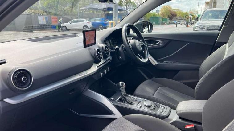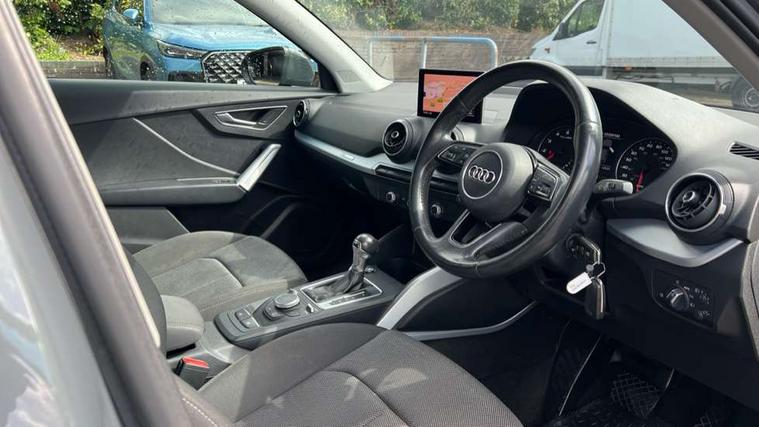 Audi drive select, Audi smartphone interface, Bluetooth hands free telephone connection, MMI - Multi Media Interface control system, MMI SD card Navigation, PAS, Service interval indicator, Voice control system, Audi music interface, Aux input, CD player, DAB digital radio module, MMI radio plus with 7" colour MMI screen and MMI controller, USB port, Body colour door mirrors, Chrome exhaust tailpipe, Door mirror integrated indicators, Electrically adjustable and heated door mirrors, Front and rear electric windows, Rear wiper, Sunband for windscreen, Aluminium door sill trims, Centre console with storage/cupholders, Front and rear door pockets, Front and rear headrests, Front and rear velour floor mats, Front centre armrest, Front sports seats, Glovebox, Height adjustable front seats, Height/reach adjust steering wheel, ISOFIX on front passenger and rear outer seats, Storage compartment in rear centre console, Non smoking pack - Q2, 3x3 point rear seatbelts, ABS+Electronic Brake force Distribution, Curtain airbags, Driver and passenger airbags, Driver and passenger side airbags, EDL + ASR, Electrically operated child locks on rear doors, Electromechanical parking brake, ESP, Multi-Collision braking, Pre-sense front with pedestrian recognition, Seatbelt warning light, Tyre pressure monitoring system, Warning triangle and first aid kit, Locking wheel bolts, Remote central locking, Thatcham category 1 alarm + immobiliser, Aluminium interior trim,