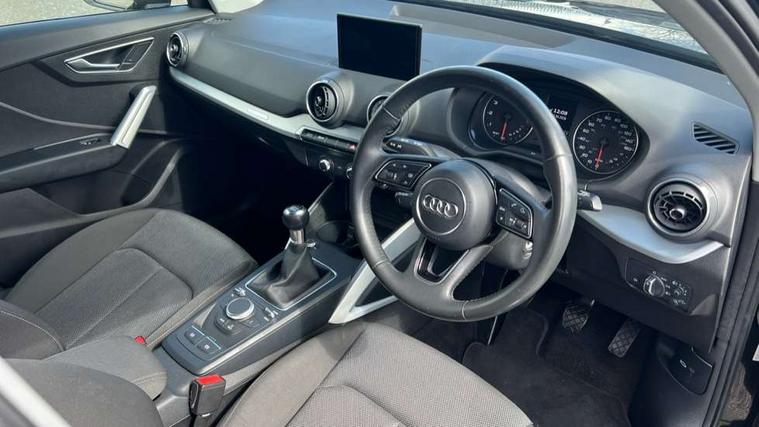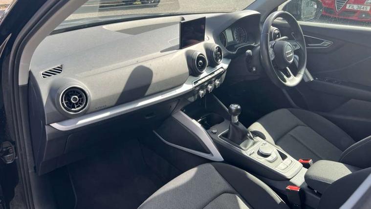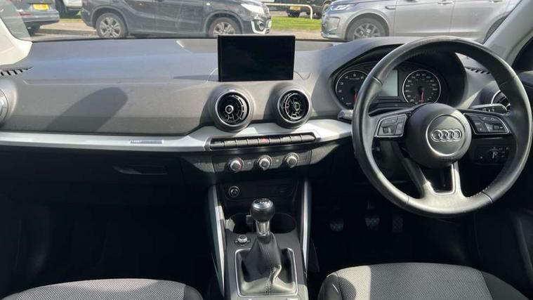 Audi drive select, Audi smartphone interface, Automatic start/stop system with recuperation, Bluetooth interface includes bluetooth audio streaming, Cruise control, MMI - Multi Media Interface control system, MMI SD card integrated nav with 3D map display, dynamic route guidance with TMC, MMI search, natural voice recognition and myAudi special destinations, Power operated tailgate, Progressive steering, Service interval indicator, Dynamic suspension, 2 x SDXC card reader, Audi music interface - apple iPod, apple iPhone, USB storage media, compatible MP3 players, 2 x USB charging points and 1 x Aux-in, CD Drive, DAB digital radio and AM/FM radio, MMI radio plus with 7" colour MMI screen and MMI controller, Air inlet in manhattan grey metallic, Black window trims, Body colour door mirrors, Chrome exhaust tailpipe, Electrically adjustable and heated door mirrors with integrated LED side indicators, Front and rear electric windows, Front underbody guard and rear diffuser trim in selenite silver, Front windscreen with grey tinted sunband, Halogen headlights including headlight range adjustment, High gloss black radiator grille, Interior mirror, LED indicator lights, Manual folding door mirrors, Rain and light sensors, Rear wiper, Side skirts in manhattan grey, Wheel arch trims in manhattan grey, 60/40 split folding rear seat bench, Door sill trims with aluminium inlay, Electronically operated child locks, Front centre armrest, Front headrests, Front sports seats, Front/rear floor mats, Height/reach adjust steering wheel, ISOFIX child seat mounting for front passenger with airbag deactivation and outer rear seat including top tether attachment point for outer rear seats, Manual seat adjustment including seat height adjustment for front seats, Storage compartments - Glovebox, cupholder compartment in centre console, storage compartment in rear centre console, front and rear door pockets, Three rear headrests, Titanium grey cloth headlining, Non smoking pack - Q2, 3x3 point rear seatbelts, 6 airbags - Front, curtain and front side airbags, Electromechanical parking brake, Electronic stabilisation control including ABS, ASR and EDL, Extended and proactive pedestrian protection, Hill hold assist, Multi collision brake assist, Pre-sense front with pedestrian recognition, Seatbelt monitoring, Tyre pressure warning light, Warning triangle and first aid kit, Anti theft alarm, Anti theft wheel bolts, Central locking system with remote control key, Aluminium interior element,