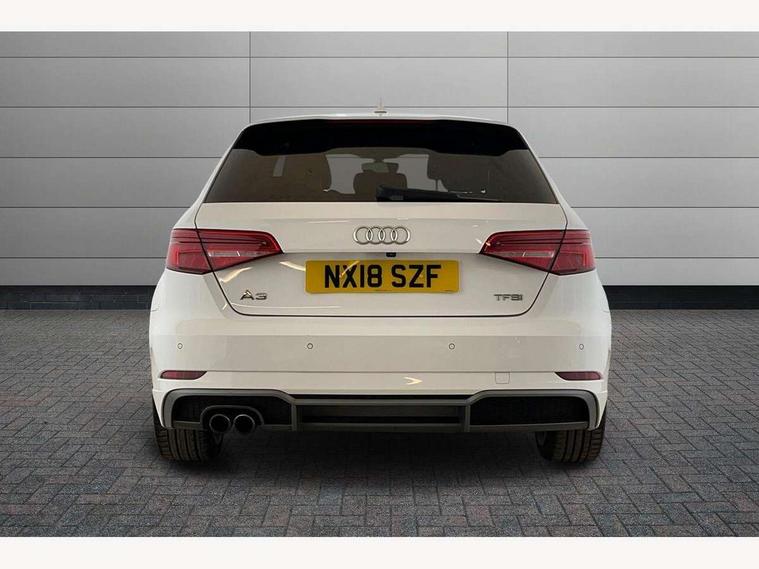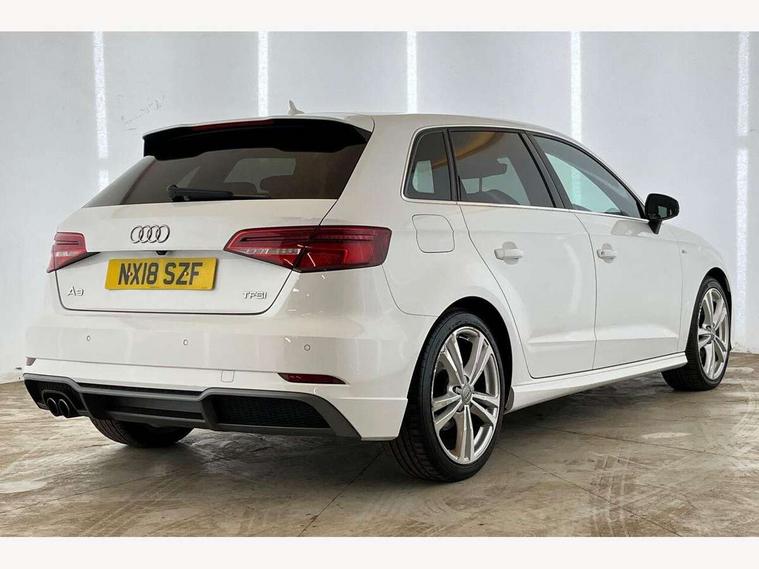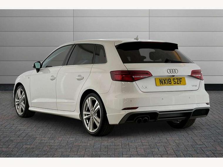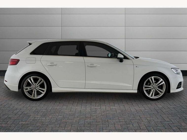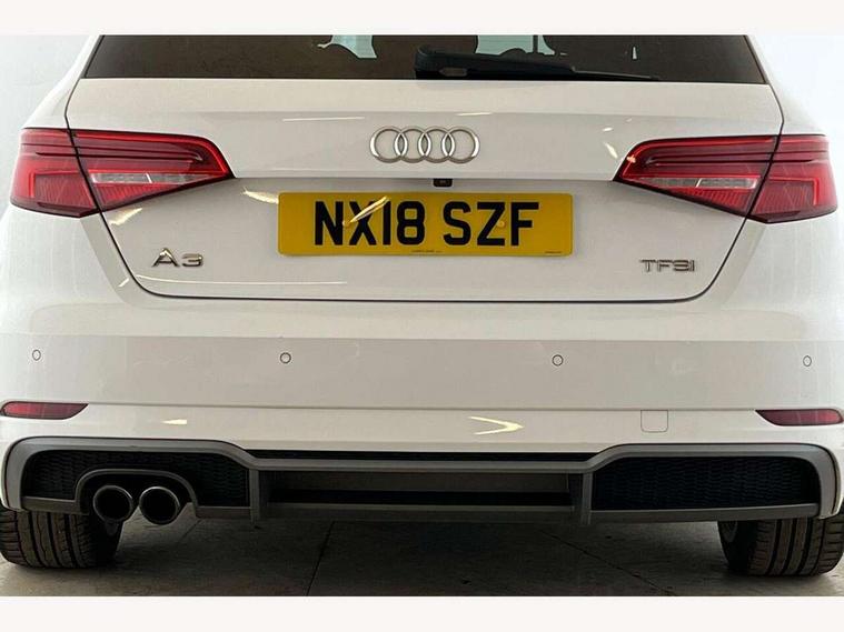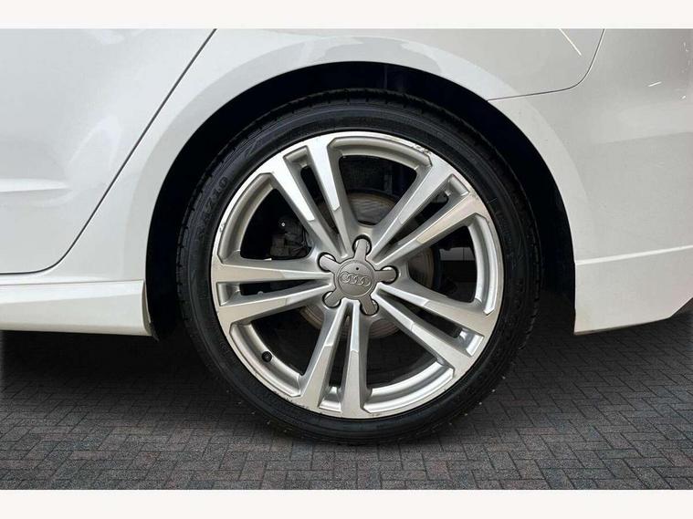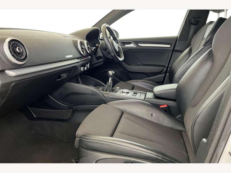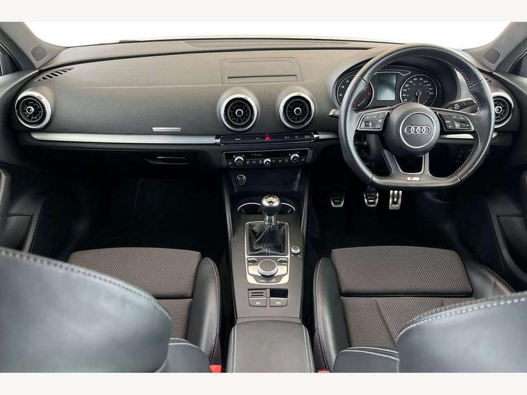 Audi connect, Audi drive select, Audi smartphone interface, Colour driver's information system display, Electro-mechanical PAS, HDD satellite navigation system radio single CD/DVD player MMI control system, Mobile telephone preparation - bluetooth interface, Service interval indicator, Speed limit display, Voice control system, 2 USB ports, Audi music interface, Auxiliary input socket, CD player, DAB Digital radio, MMI radio plus with 7" colour MMI screen and MMI controller, Aluminium window trim, Auto dimming rear view mirror with light and rain sensors, Body colour bumpers, Body colour door mirrors with integral indicators, Body colour roof spoiler, Chrome exhaust tailpipes, Electric front windows, Electric operated/heated door mirrors, Electric rear windows, Heated windscreen washer jets, LED daytime running lights, Matt black radiator grille, Rear wiper, S Line body styling, Sport specific side air inlet grille and diffuser insert, 3 adjustable rear headrests, 3 spoke flat bottomed multi-function leather steering wheel, 4 lashing points to secure luggage, Adjustable front armrest, Black cloth headlining, Dual zone electronic climate control, Front and rear interior lights with delay, Front passenger seat isofix location point, Front sports seats, Front/rear floor mats, Height/depth adjustable steering column, Illuminated glovebox, ISOFIX child seat preparation+airbag deactivation, Jack and tool kit, Stainless steel pedals, Storage compartment in centre console, Storage compartment under front seats, Storage compartments in doors, LED interior light pack - A3/RS3, Non smoking pack - A3, Storage and luggage pack - A3/RS3, 3 point seatbelts on all seats, ABS/EBD, Active bonnet, Active front headrests, ASR, Curtain airbags, Driver and passenger side airbags, Driver/Front Passenger airbags, Drivers knee airbag, EDL, Electromechanical parking brake, ESC - Electronic Stability Control + traction control, Front passenger airbag deactivation, Manual rear child locks, Multi-Collision braking, Seatbelt warning, Tyre pressure warning, Warning triangle and first aid kit, Anti theft alarm, Anti-theft wheel bolts, Remote control central locking, Thatcham category 1 alarm + immobiliser, Aluminium air vent surrounds, Aluminium trim elements, Matt brushed aluminium inlays, Space saver spare wheel,